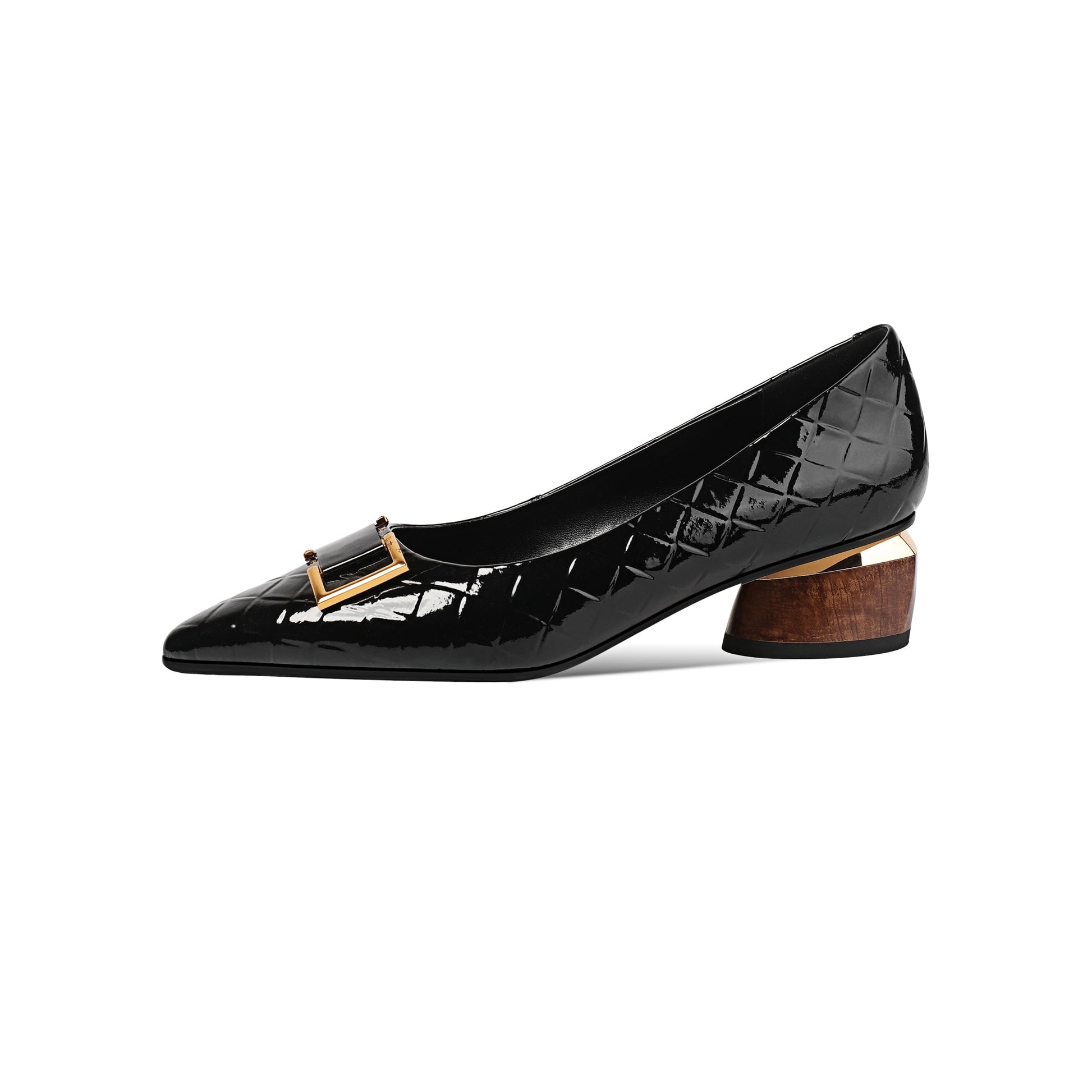 Stylish loafer shoes deisgned with patent leather, pointed toe, buckle and low chunky heels can make you feel comfortable with every steps.