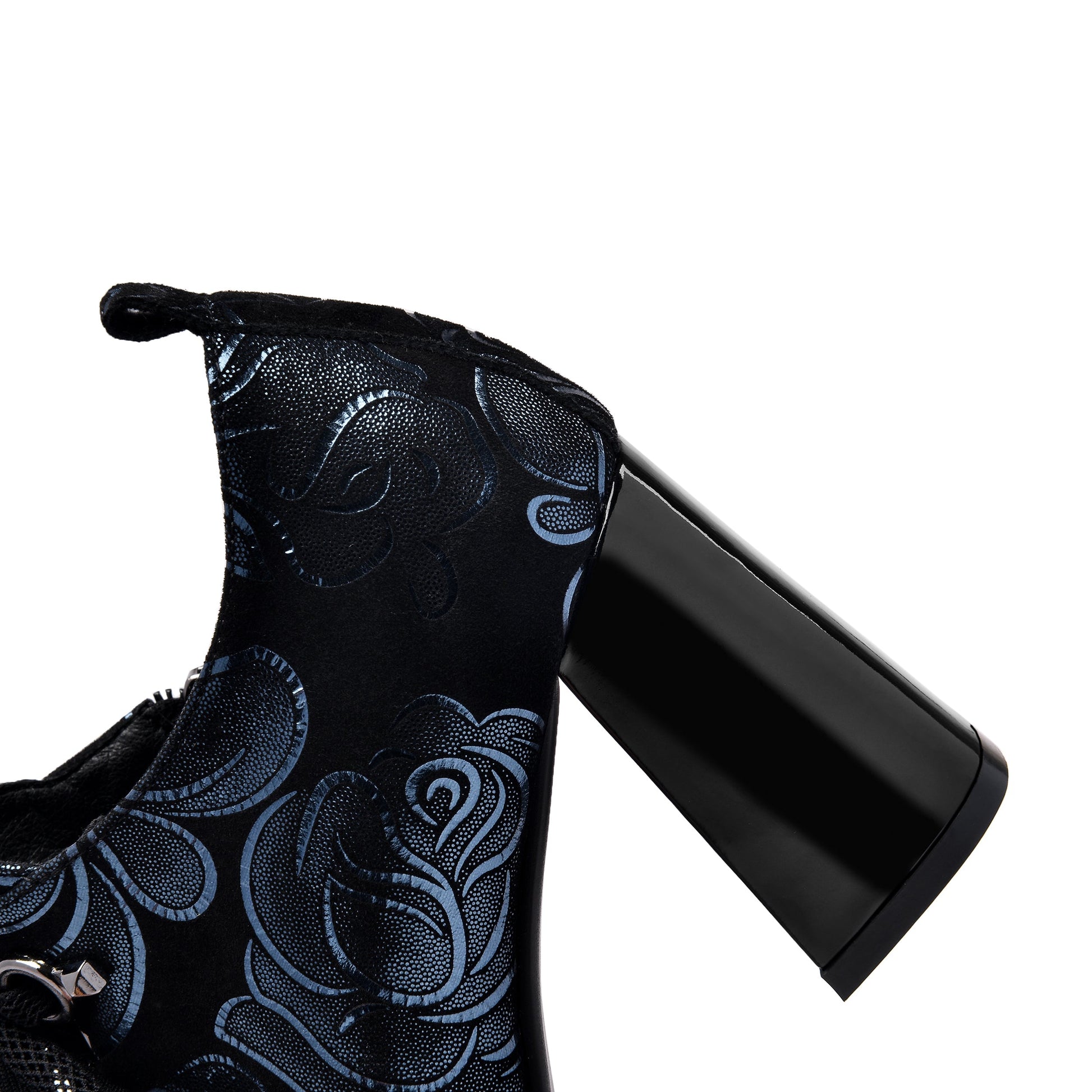 Nine Seven Women's Handmade Printed Suede Leather Platform Round Toe Lace Up Side Zip High Chunky Heel Pumps