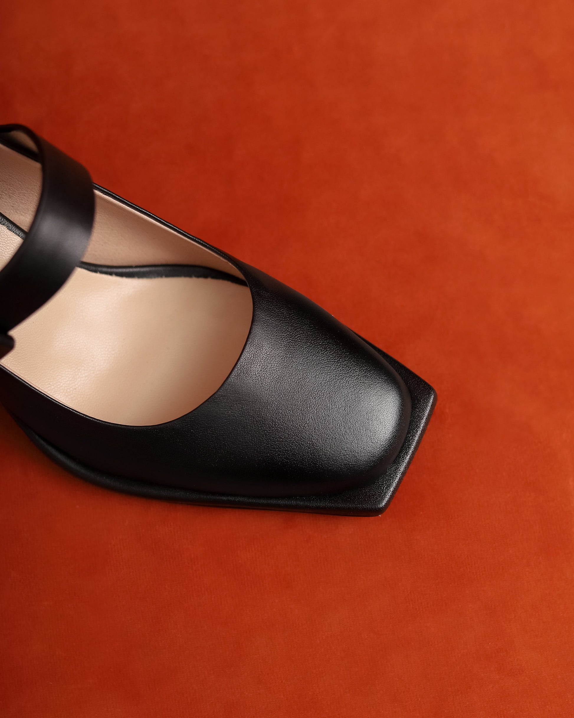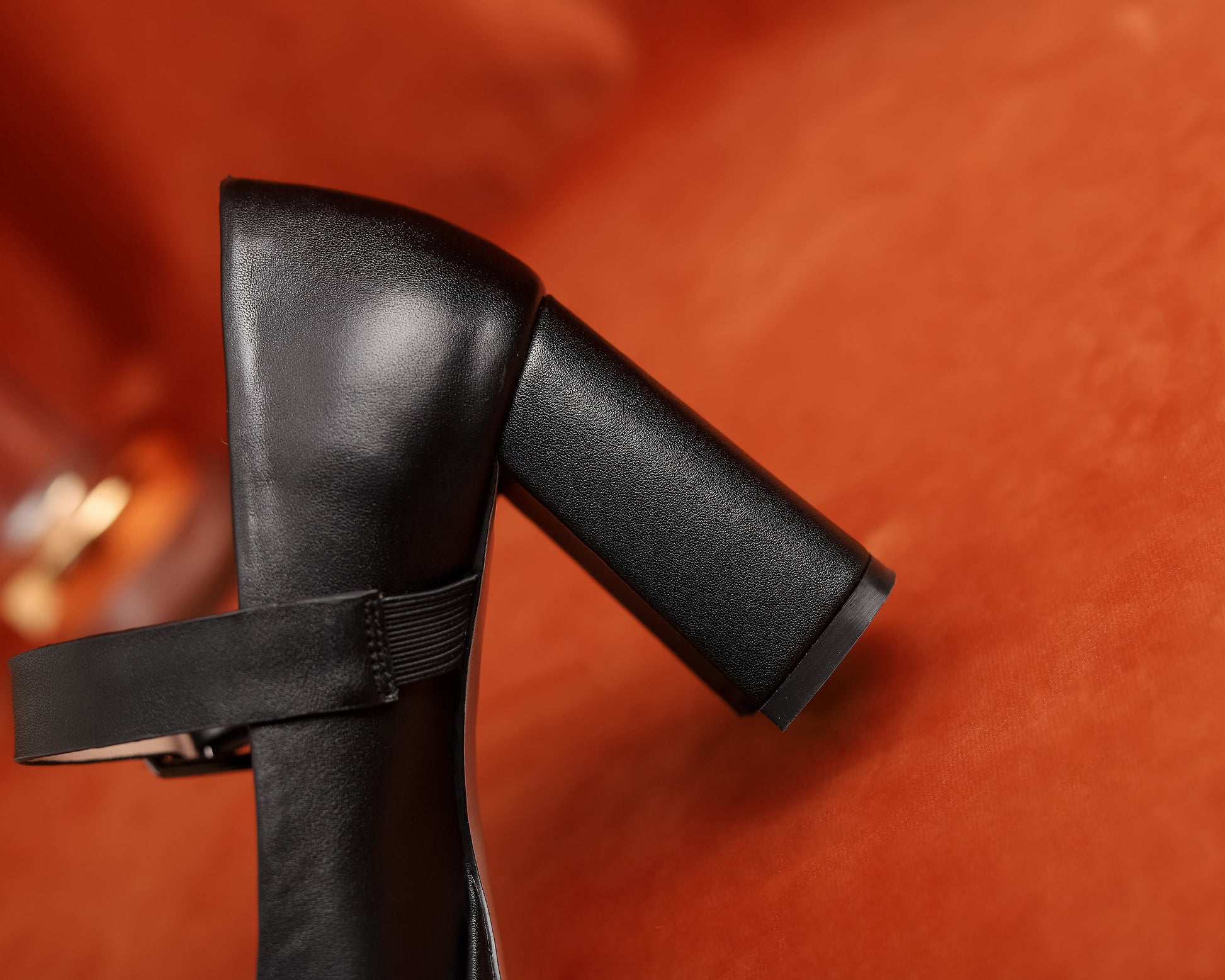 Genuine leather pumps shoes designed with square toe, buckle and high chunky heels can go with almost all your outfits.