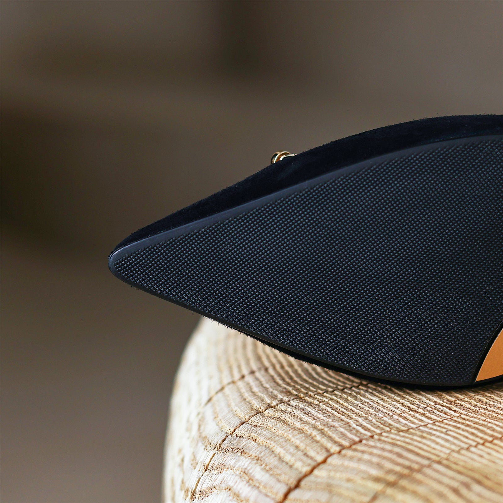 Casual loafers designed with suede leather, pointed toe, metal decoa and flats can make you feel comfortable with every steps.