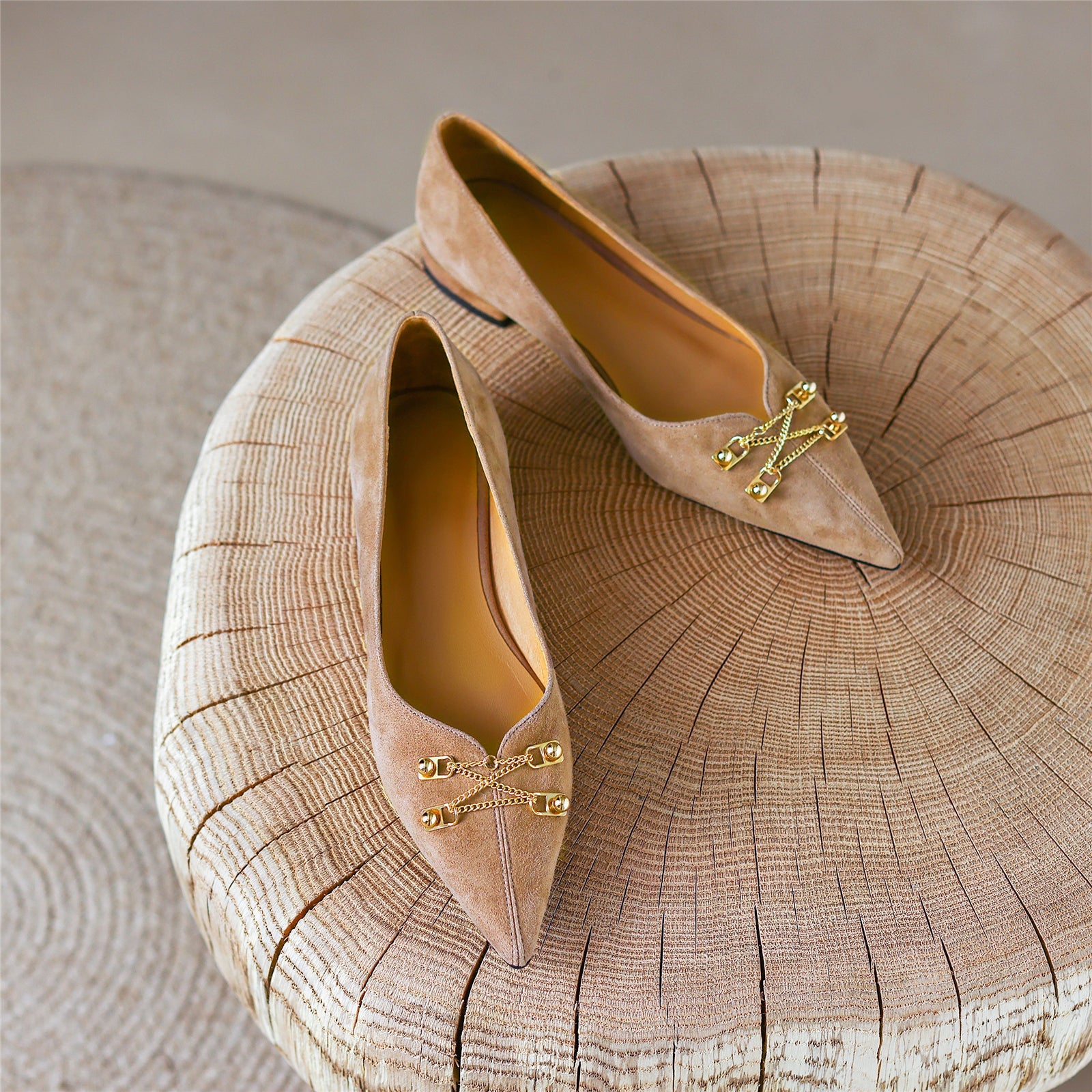 Nine Seven Women's Pointed Toe Suede Leather Handmade Metal Ornament Casual Flat Shoes