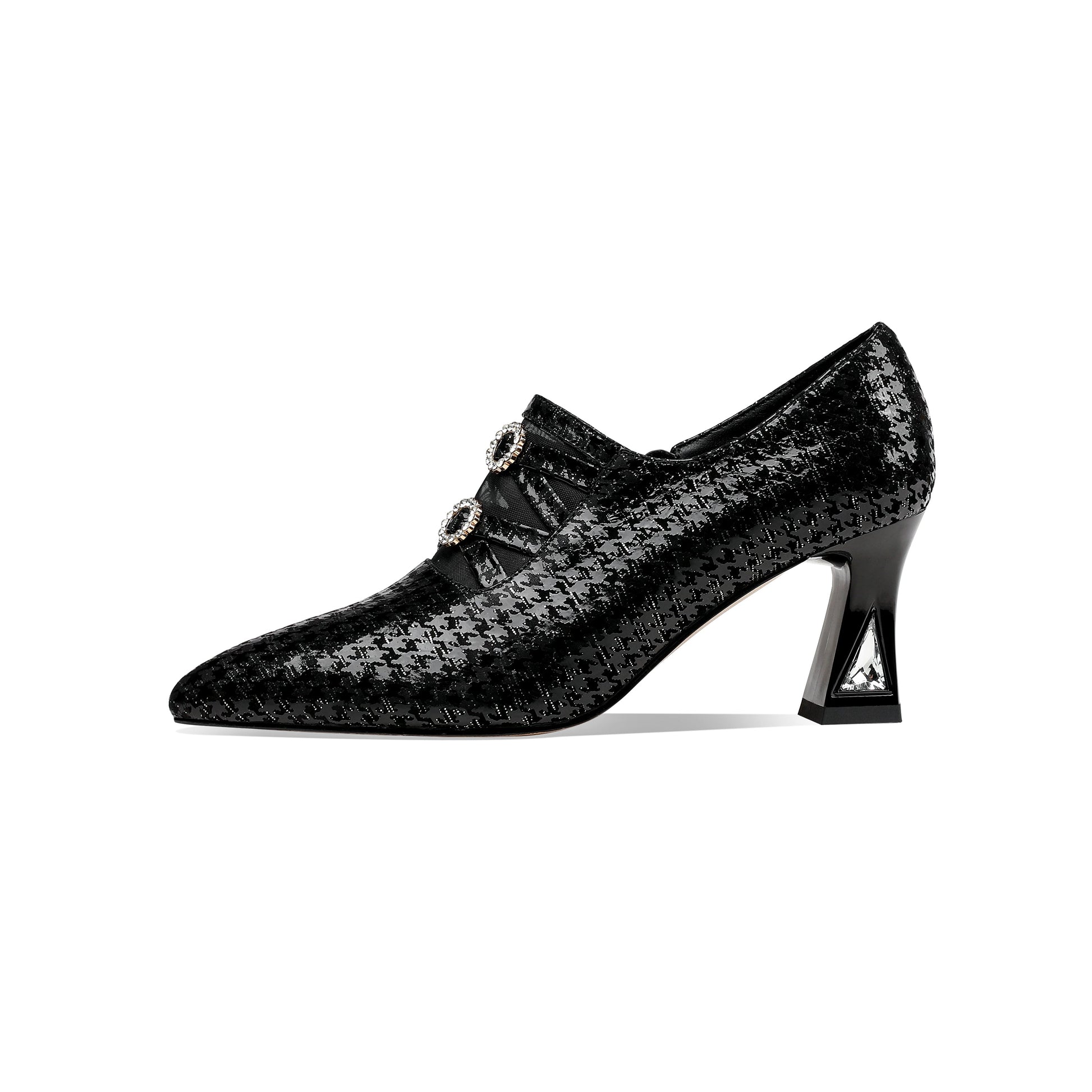 Genuine leather pumps shoes designed with pointed toe, side zipper, chunky heels can go with almost all your outfits.