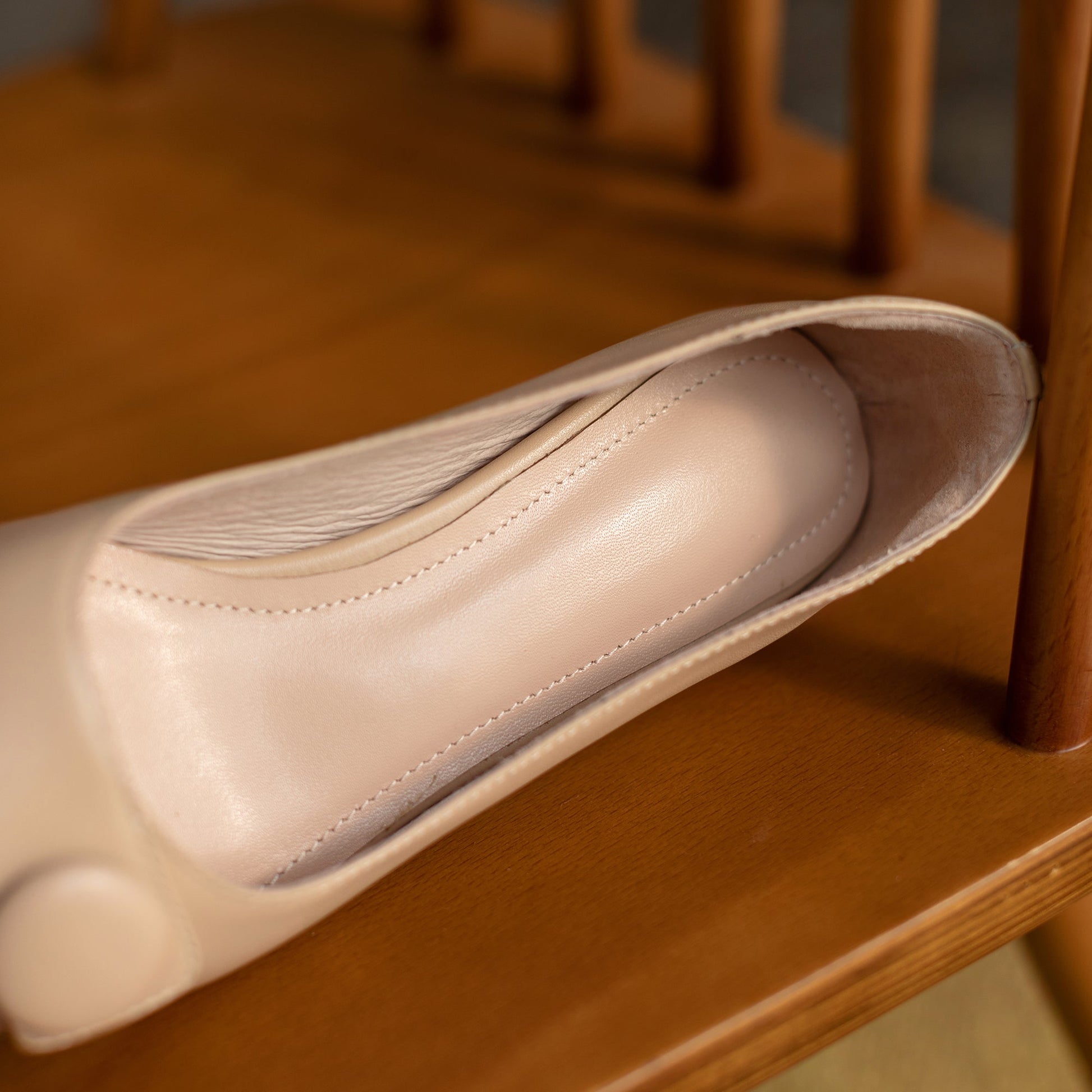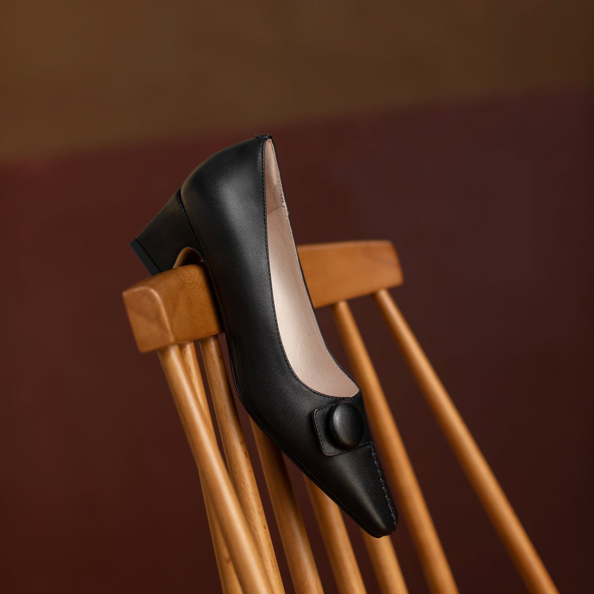 Nine Seven Genuine Leather Women's Handmade Square Toe Low Heel Button Graceful Pump Shoes
