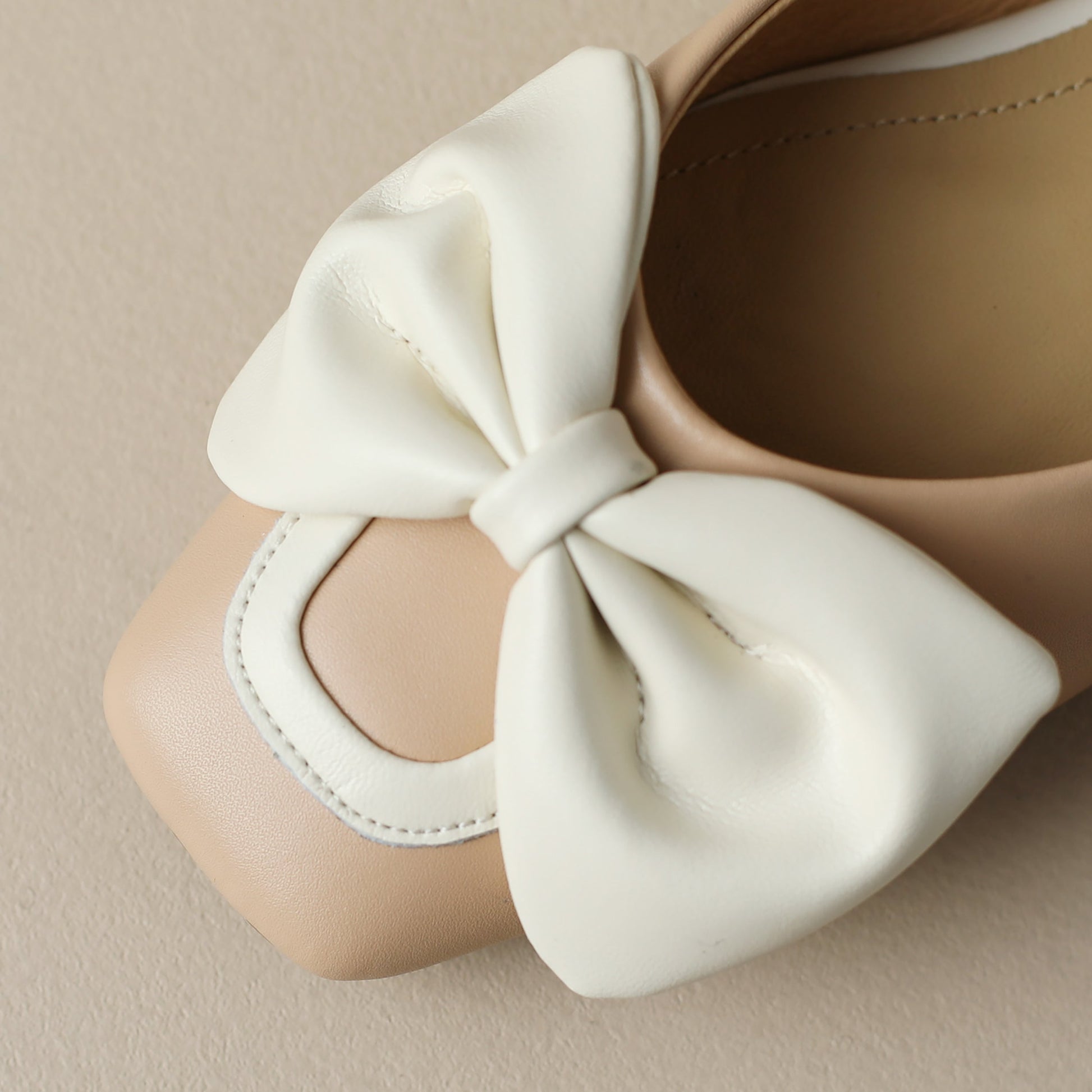 Nine Seven Women's Genuine Leather Square Toe Handmade Bowknot Chunky Heels Casual Flats