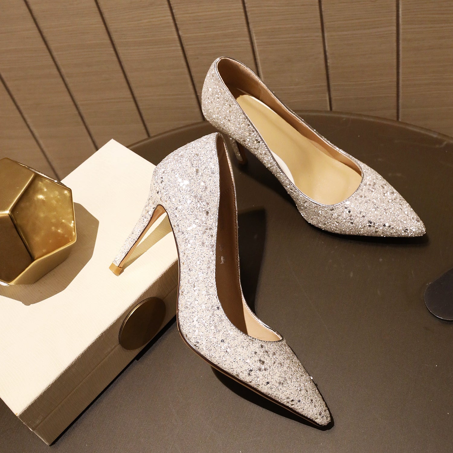 Nine Seven Women's Handmade Glitter Sequins High Stiletto Heel Slip On Wedding Party Loafer Pumps Shoes