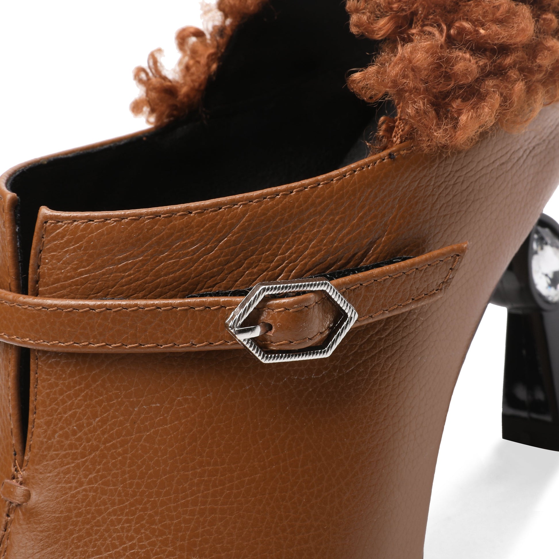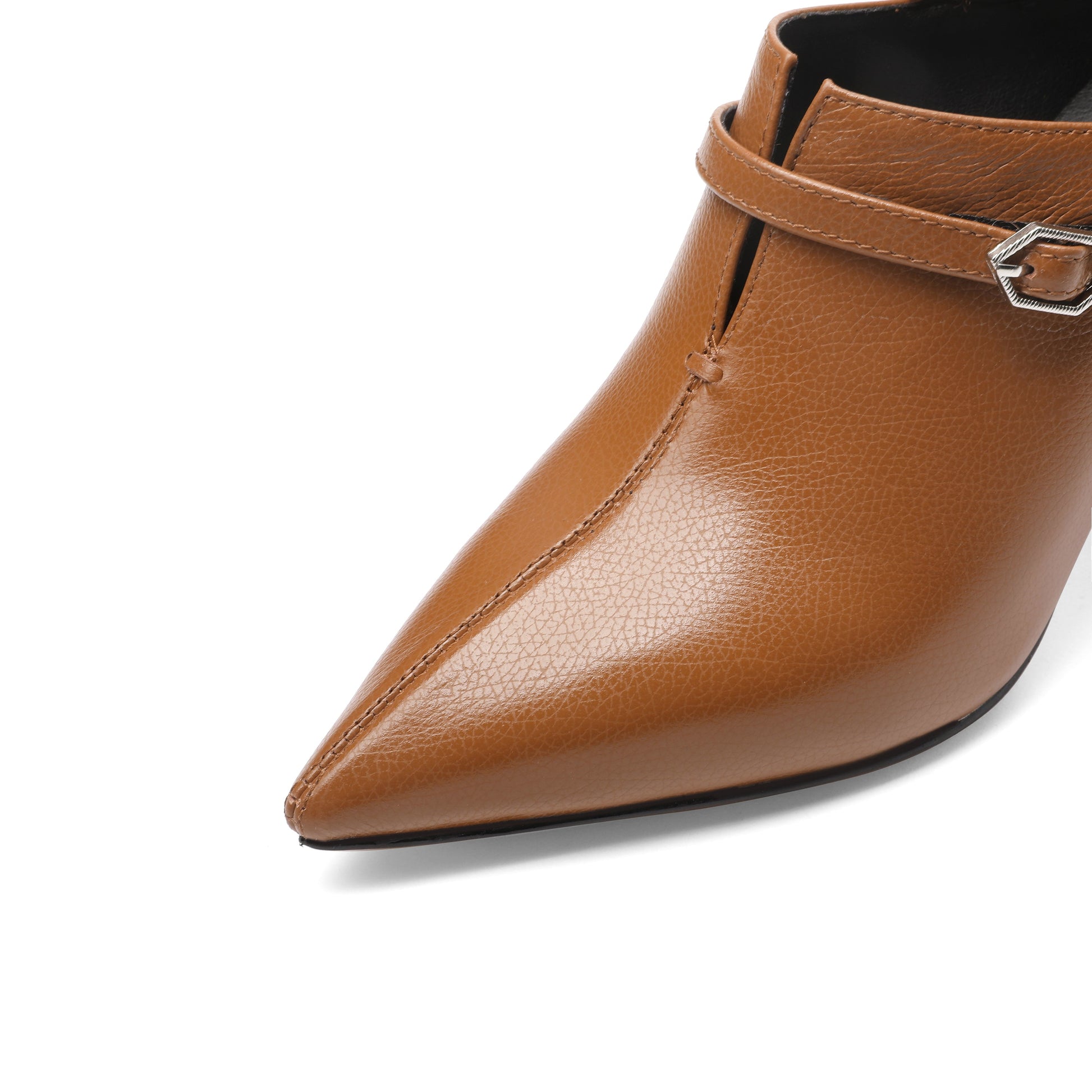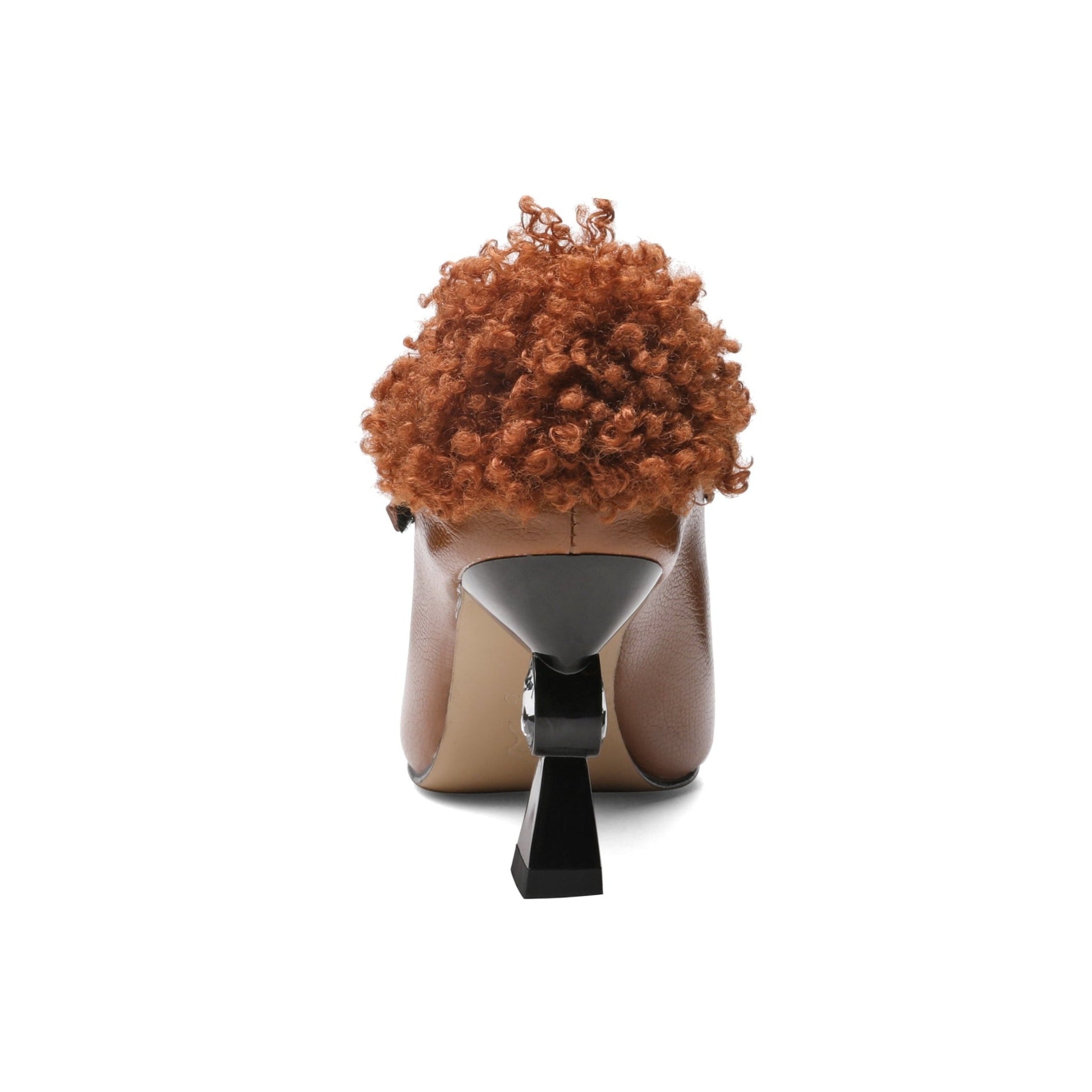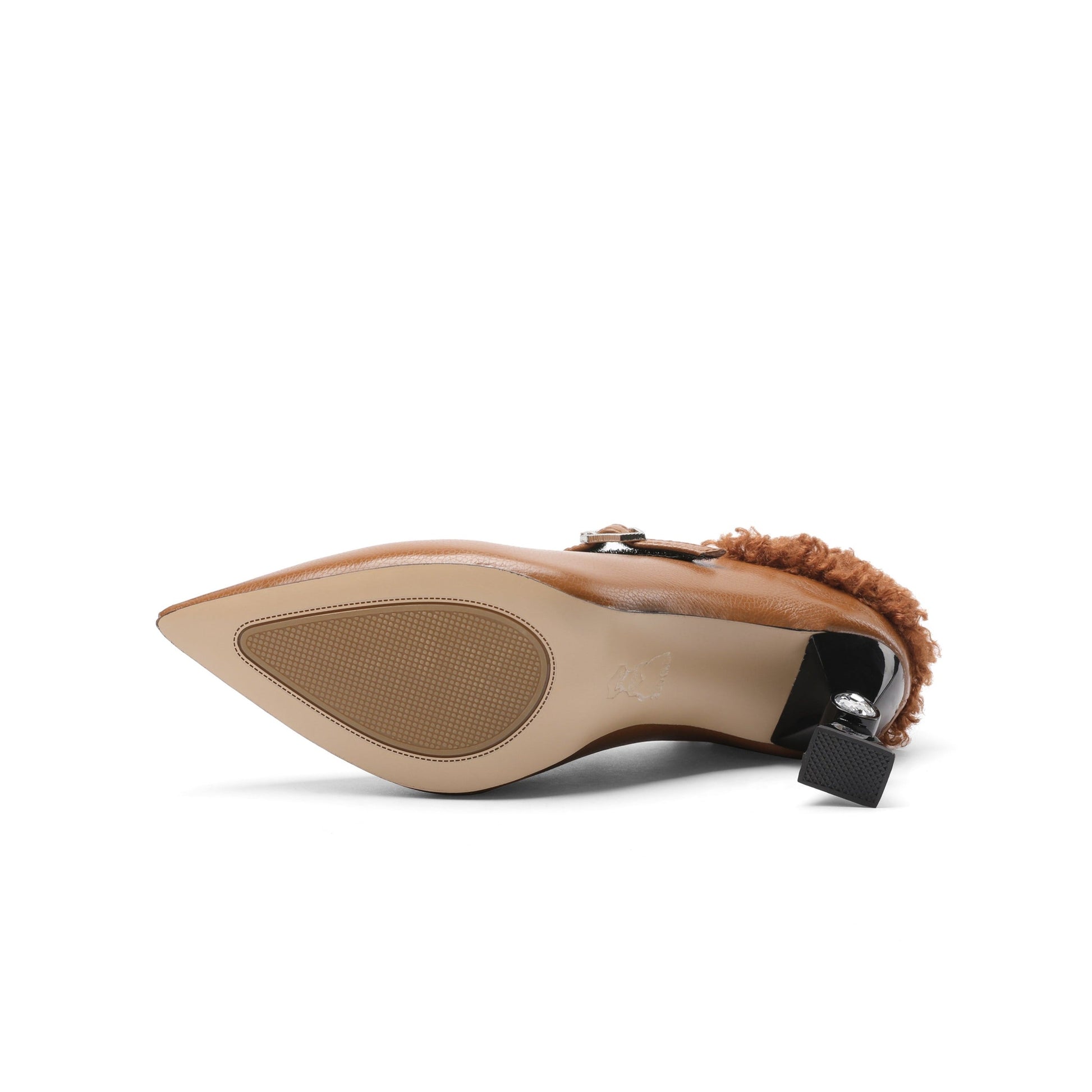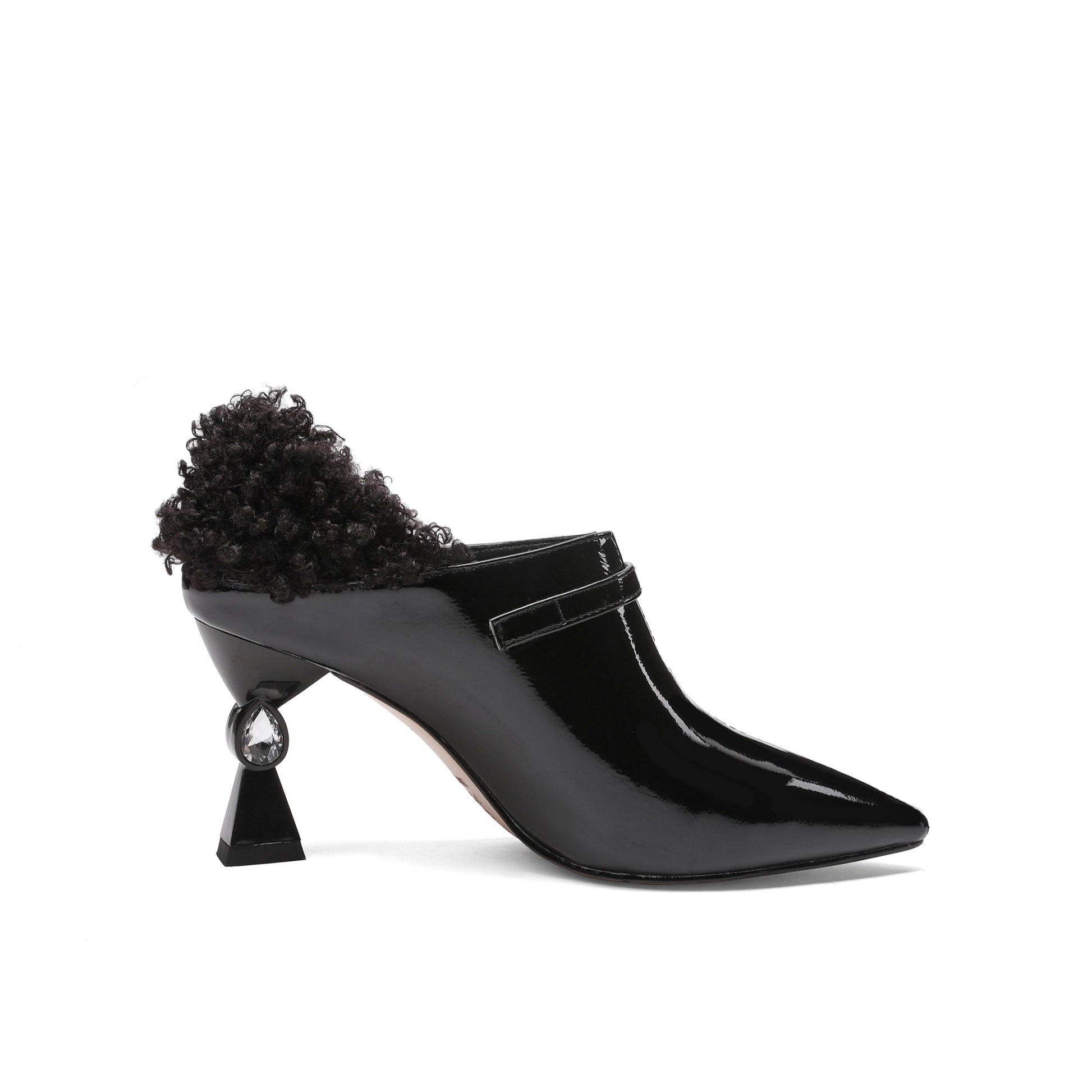 Nine Seven Women's Genuine/Patent Leather Handmade Exquisite High Heel Pointed Toe Graceful Slip On V-Shaped Pump Shoes with Buckle