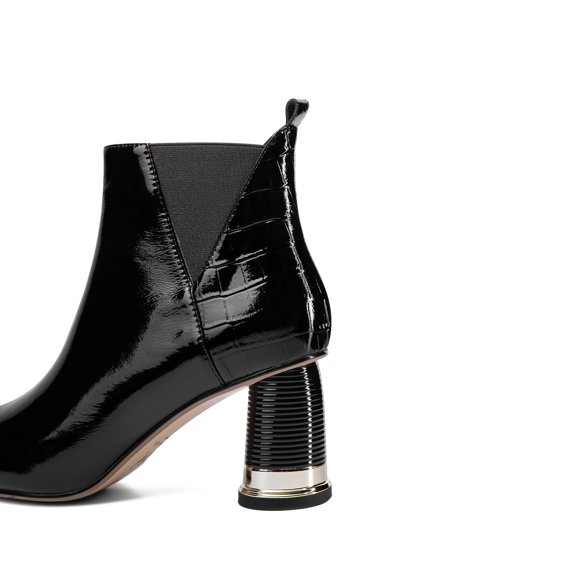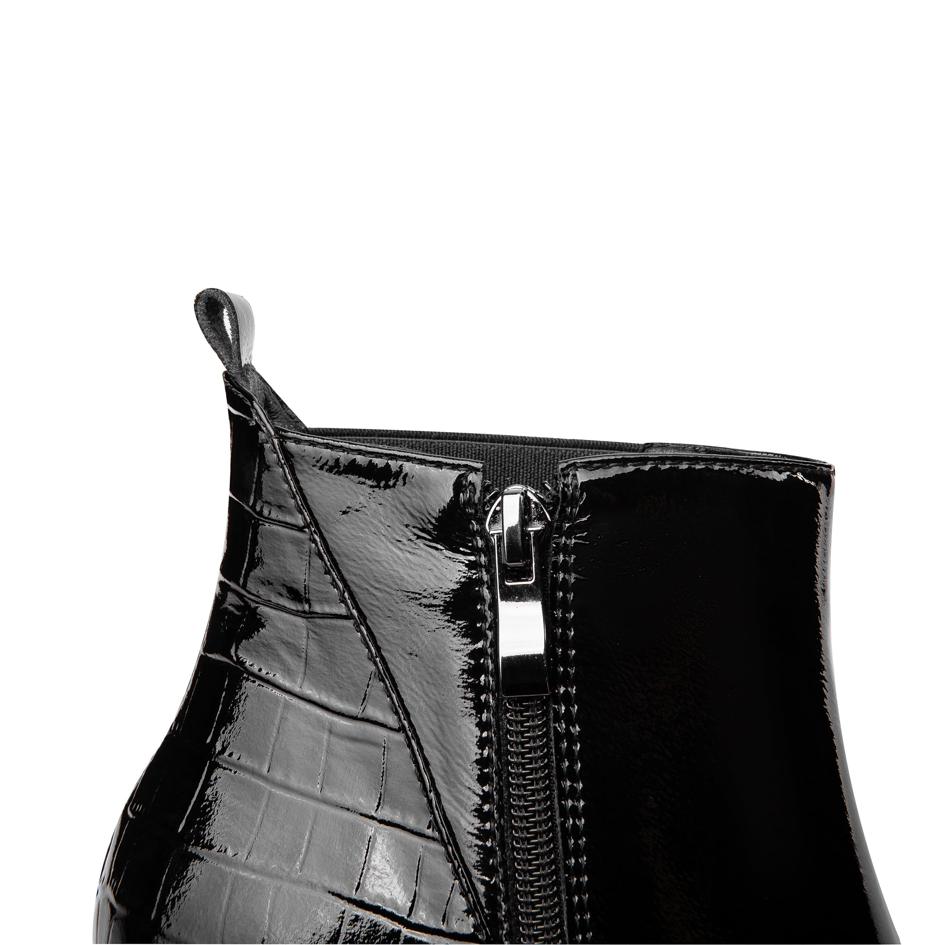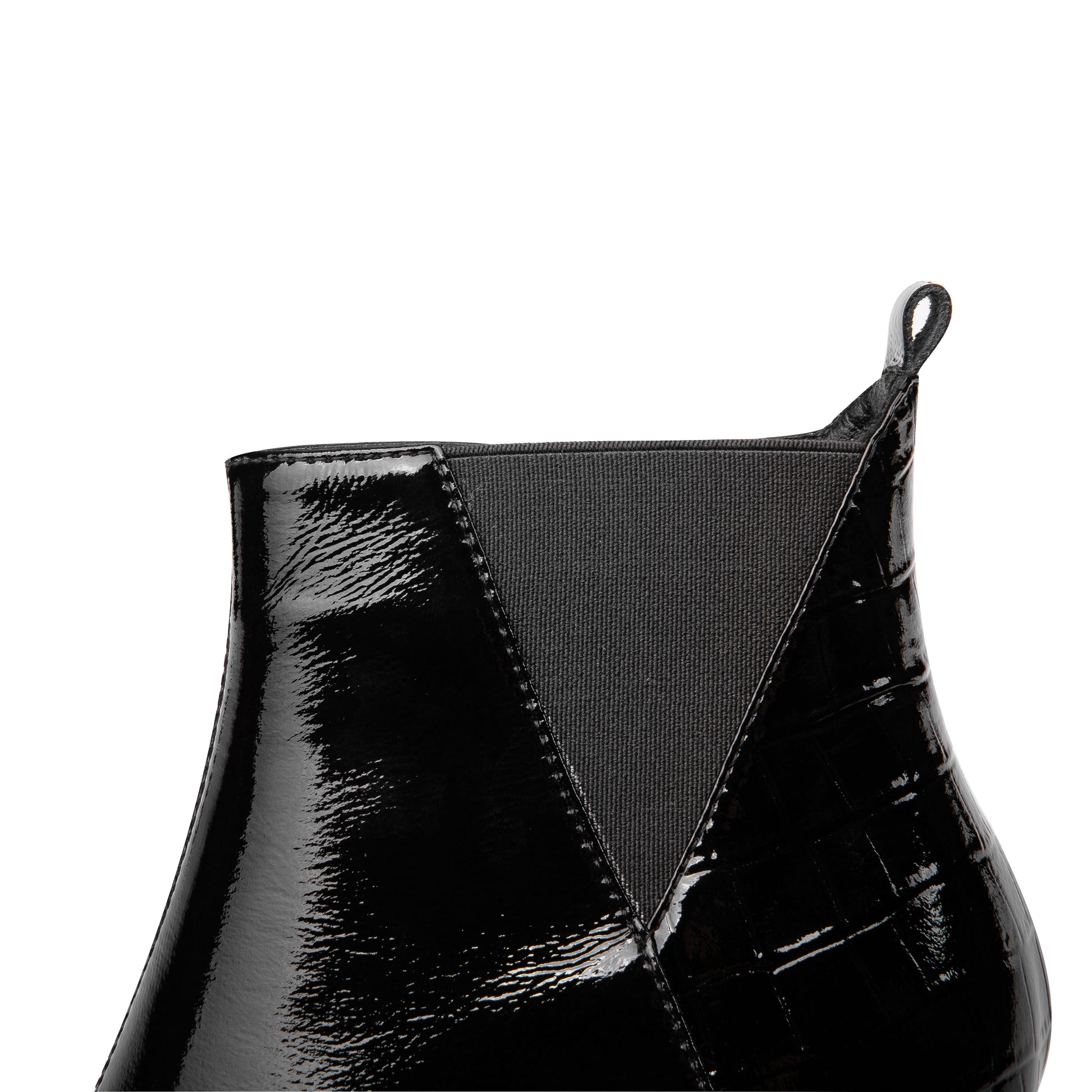 Graceful patent leather ankle booties are designed with pointed toe and comfortable mid chunky heel. It is suitable for party, club, wedding and many other occasions.