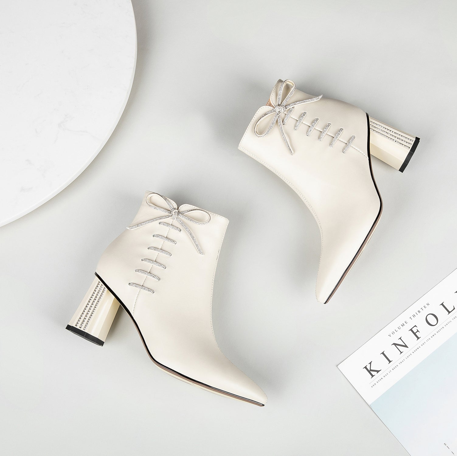 This ankle boots are designed with genuine leather, pointed toe and mid chunky heels.Slip-resistant sole could show your confidence in every step.