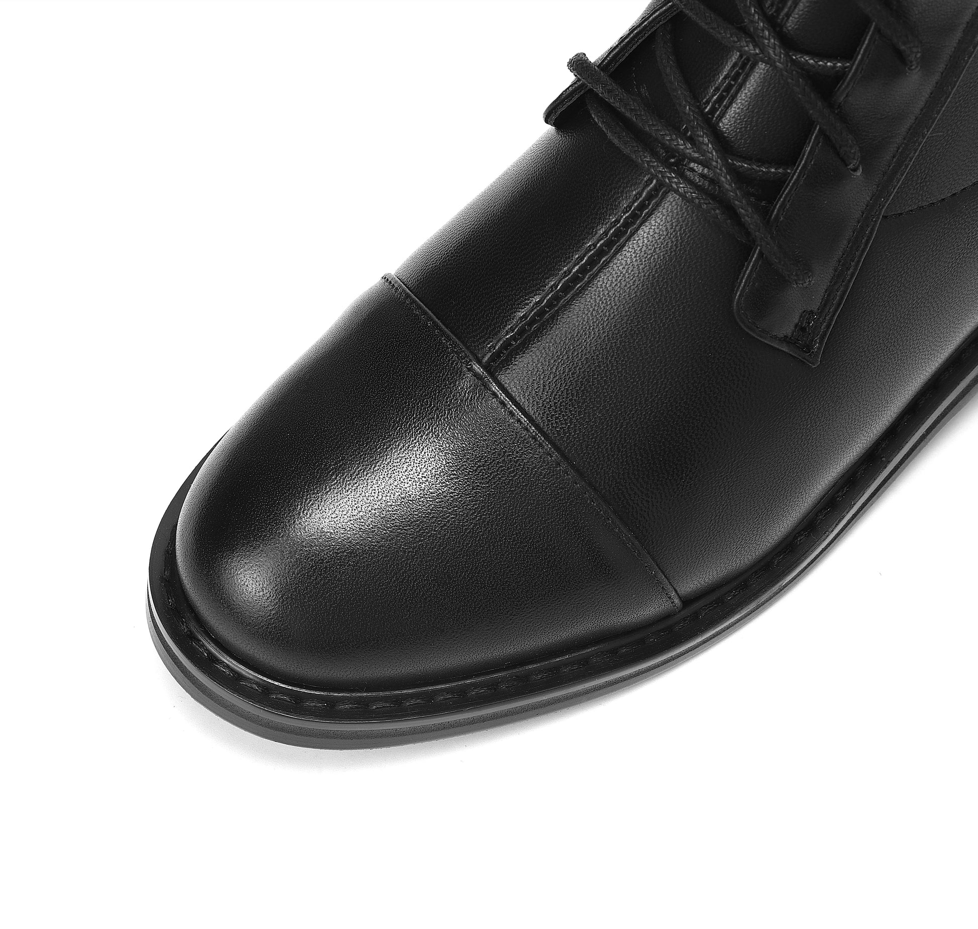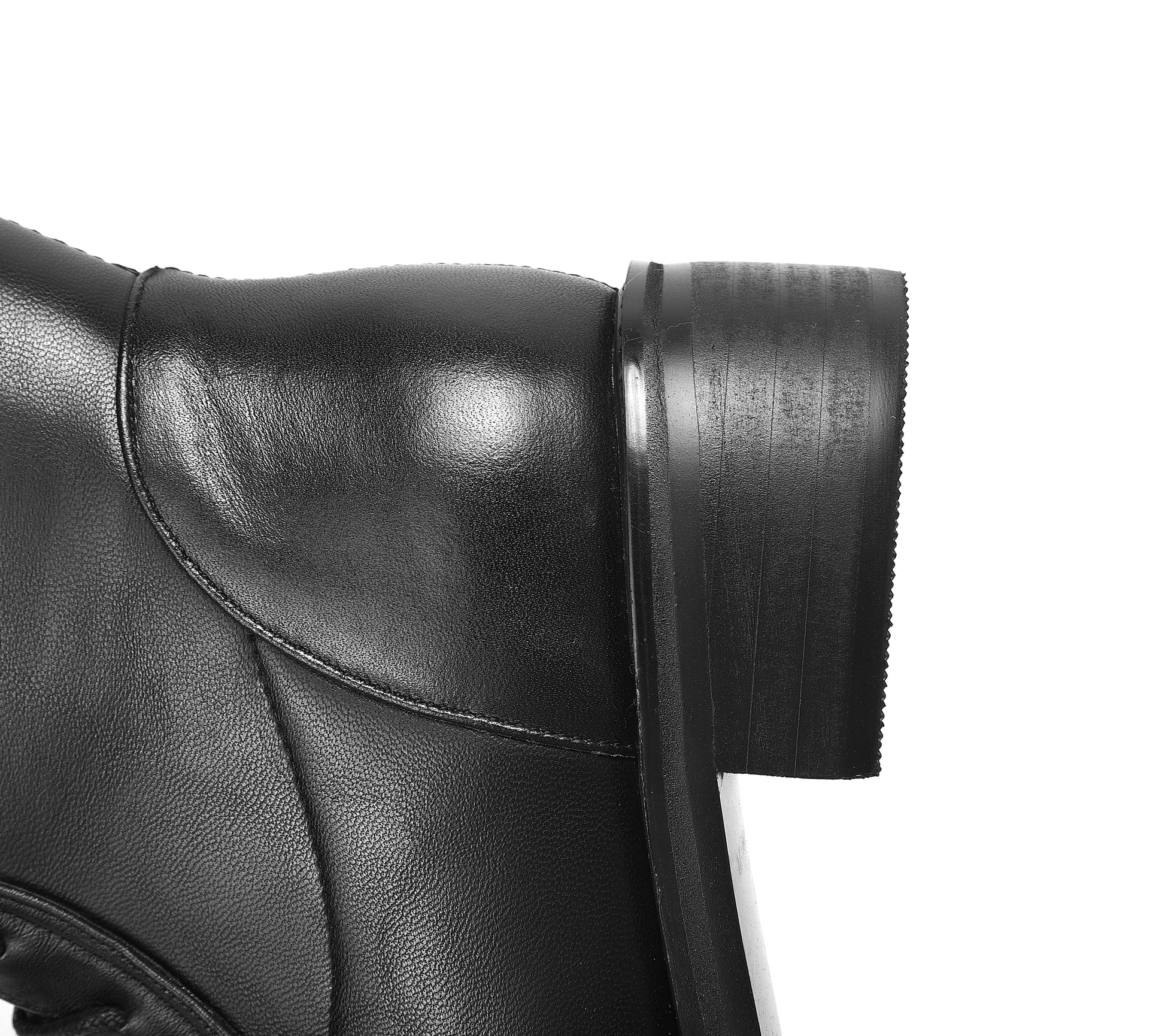 Cool black knee high boots featured with genuine leather, round toe, lace up and low chunky heel can make you feel comfortable with every steps.
