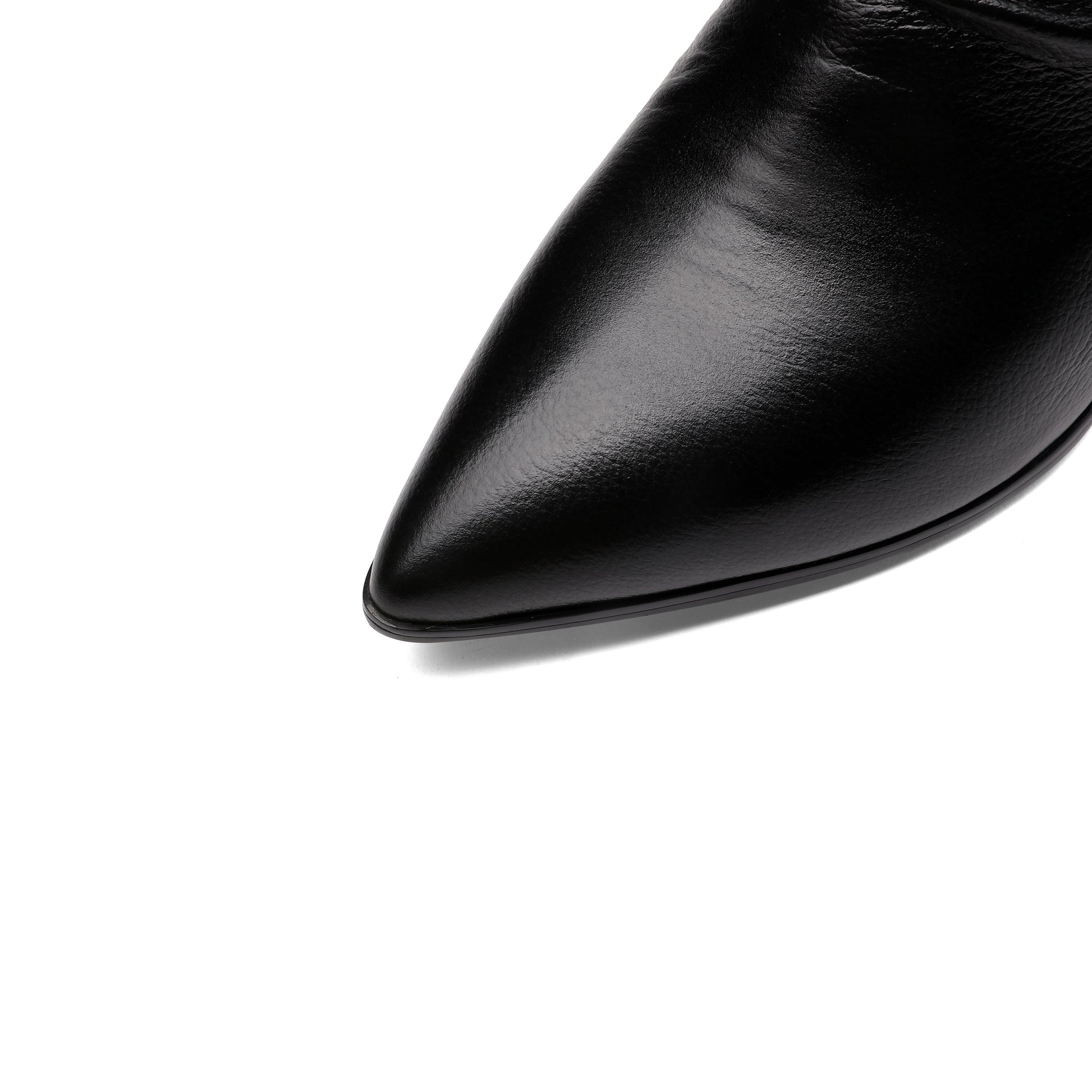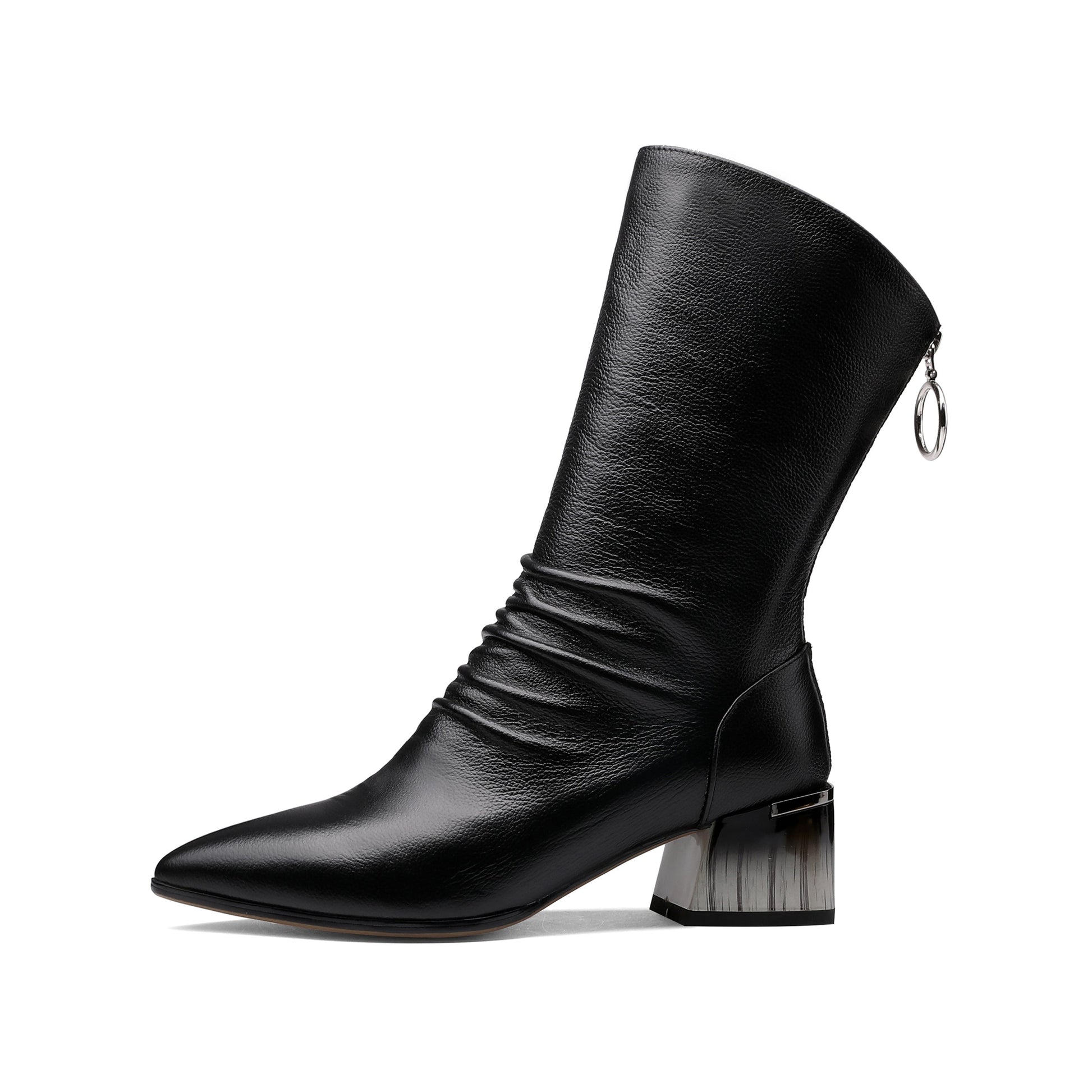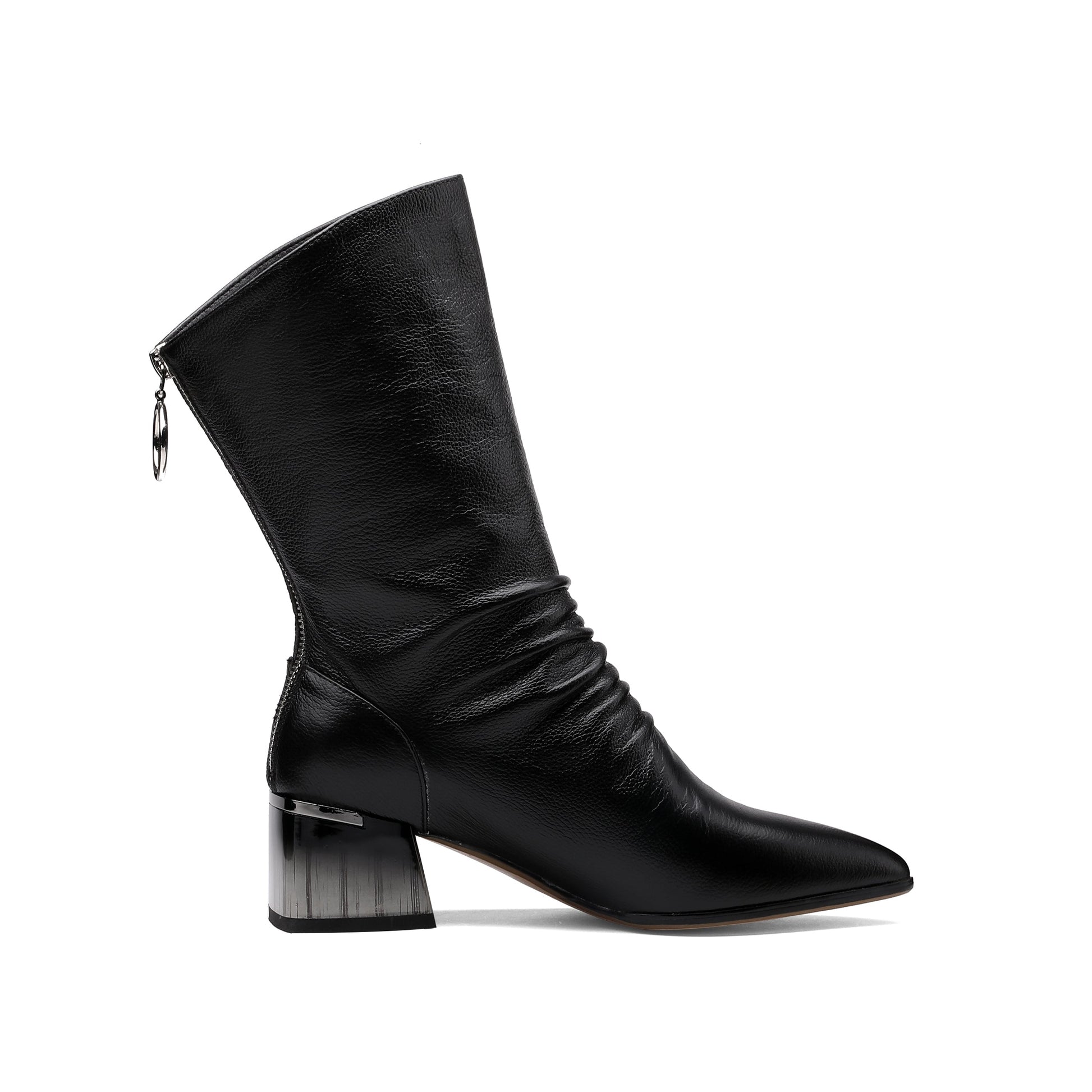 Comfortable mid-calf boots are designed with genuine leather, pointed toe, mid chunky heel, ruffle design to keep up with fashion trend and slip-resistant sole could show your confidence in every step.