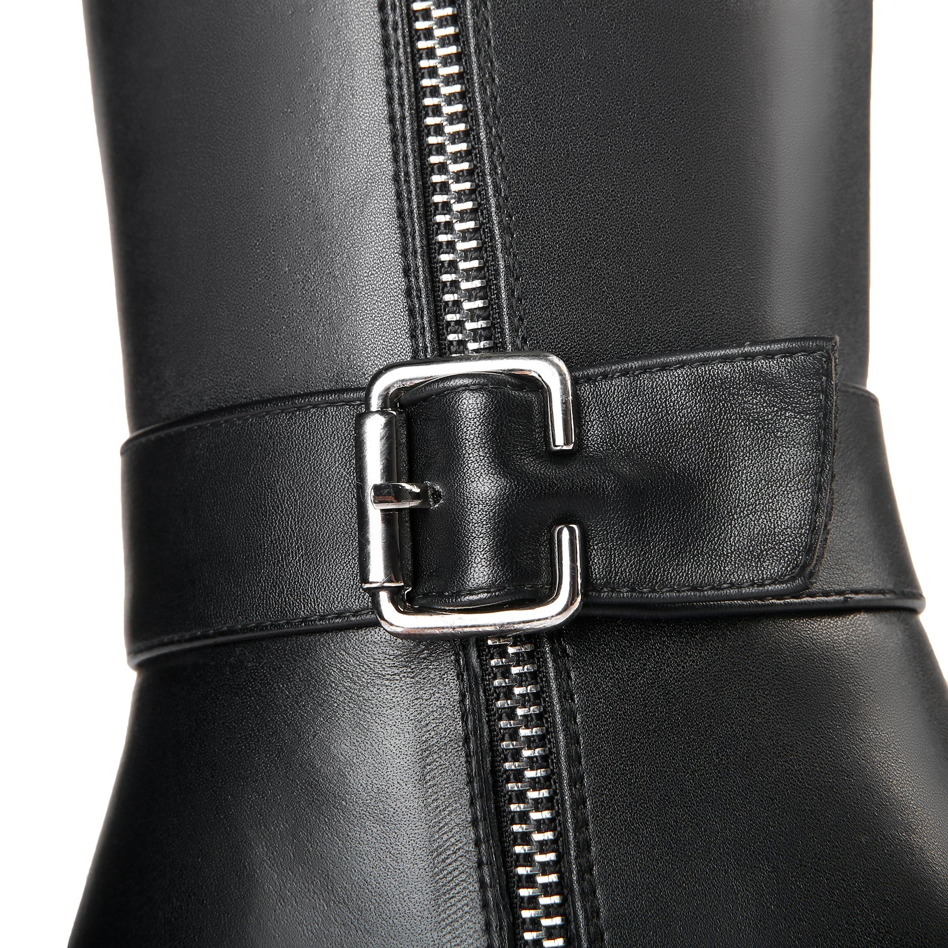Nine Seven Women's Genuine Leather Round Toe Handmade Buckled Dual Zippers High Chunky Heels Stylish Knee High Boots