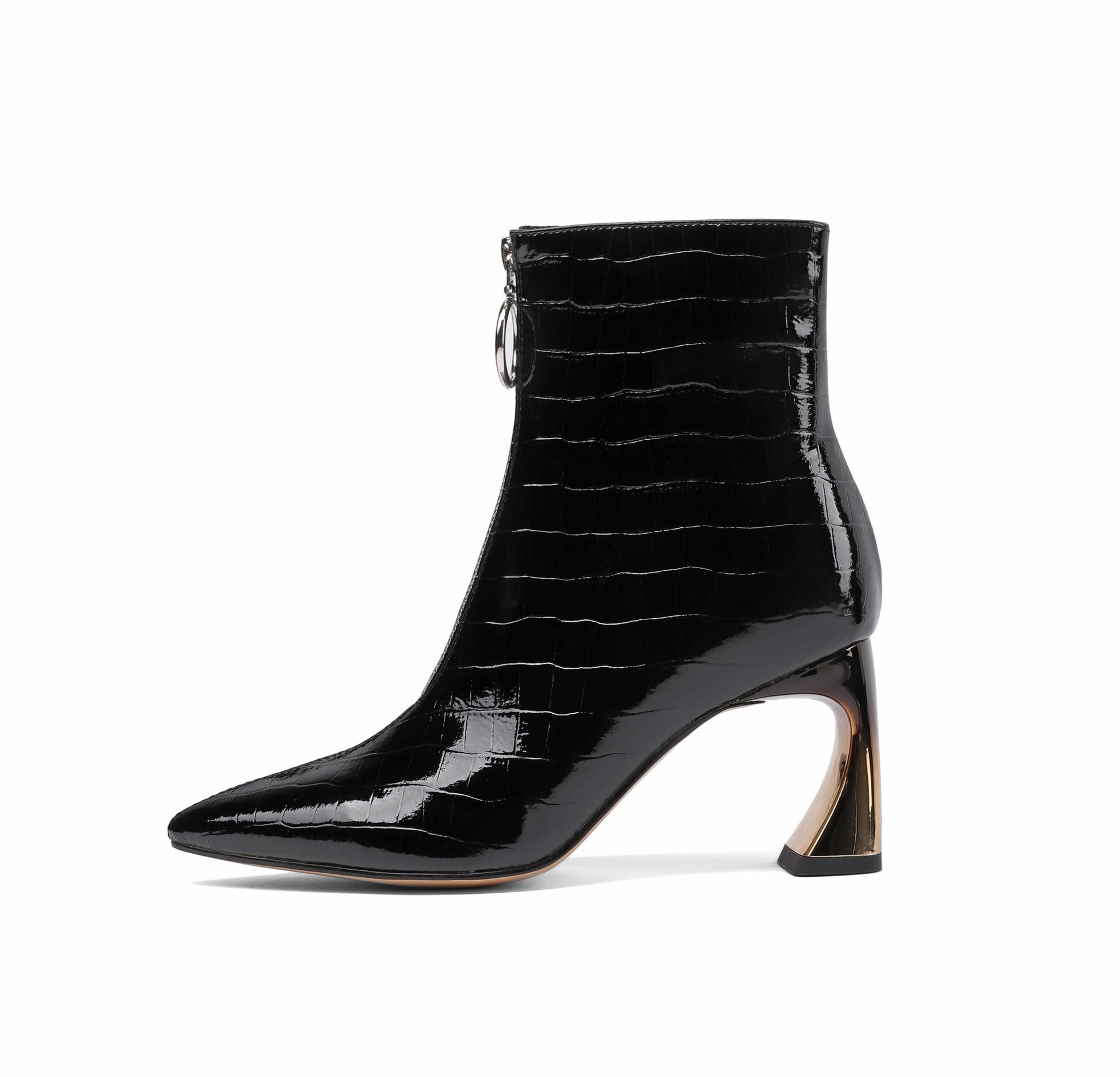 Nine Seven Women's Handmade Patent Leather Pointed Toe Stylish Front Zip Up High Spool Heel Ankle Boots