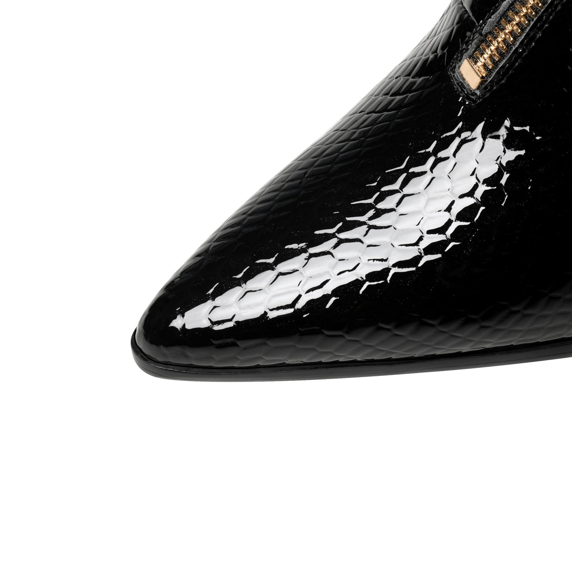 Classic ankle boots are designed with genuine leather, pointed toe, zipper and mid chunky heels.style are quite versatile.