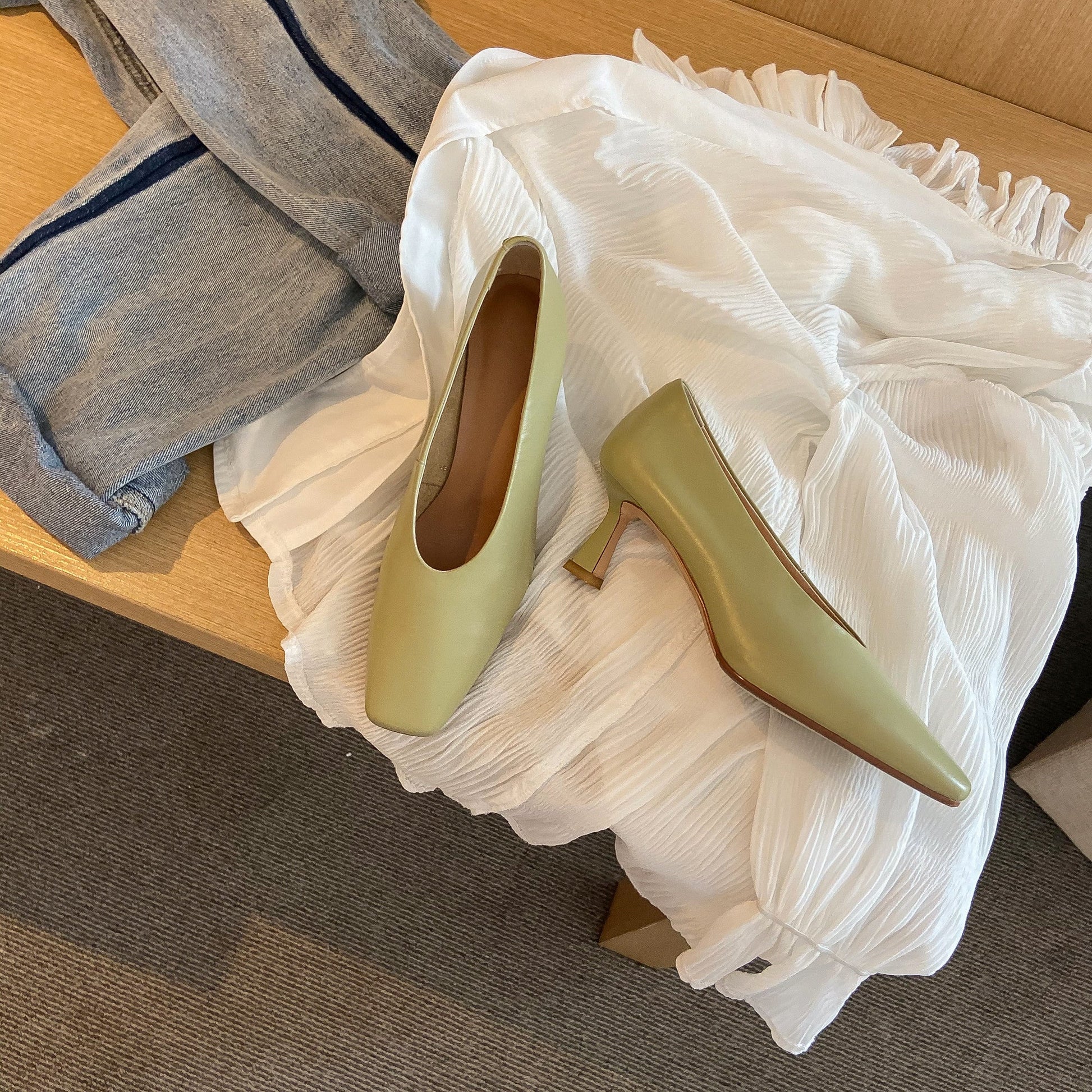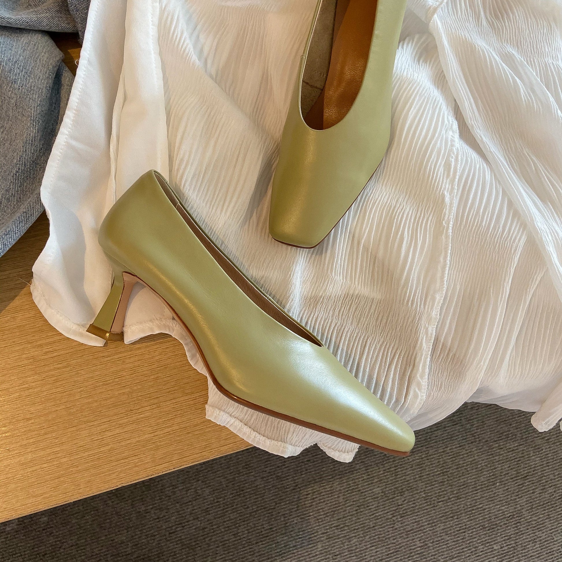 Stylish pumps shoes designed with genuine leather, square toe and stieltto heels can do with almost all your outfits.