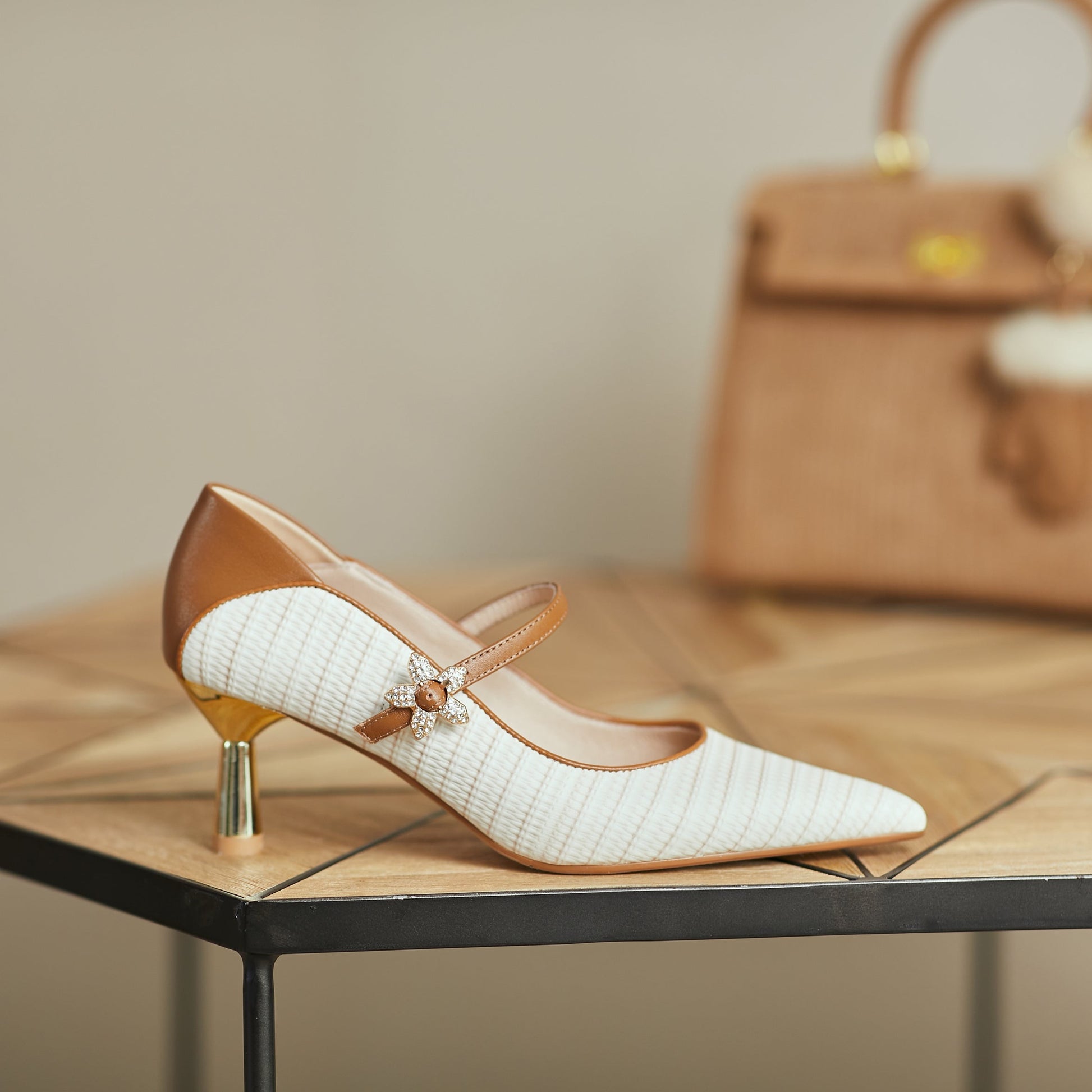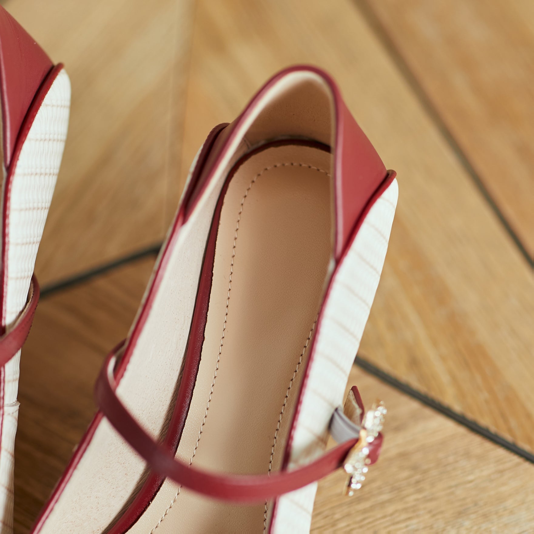 Stylish pumps shoes designed with genuine leather, pointed toe, buckle belt and mid heels can go with almost all your outfits.