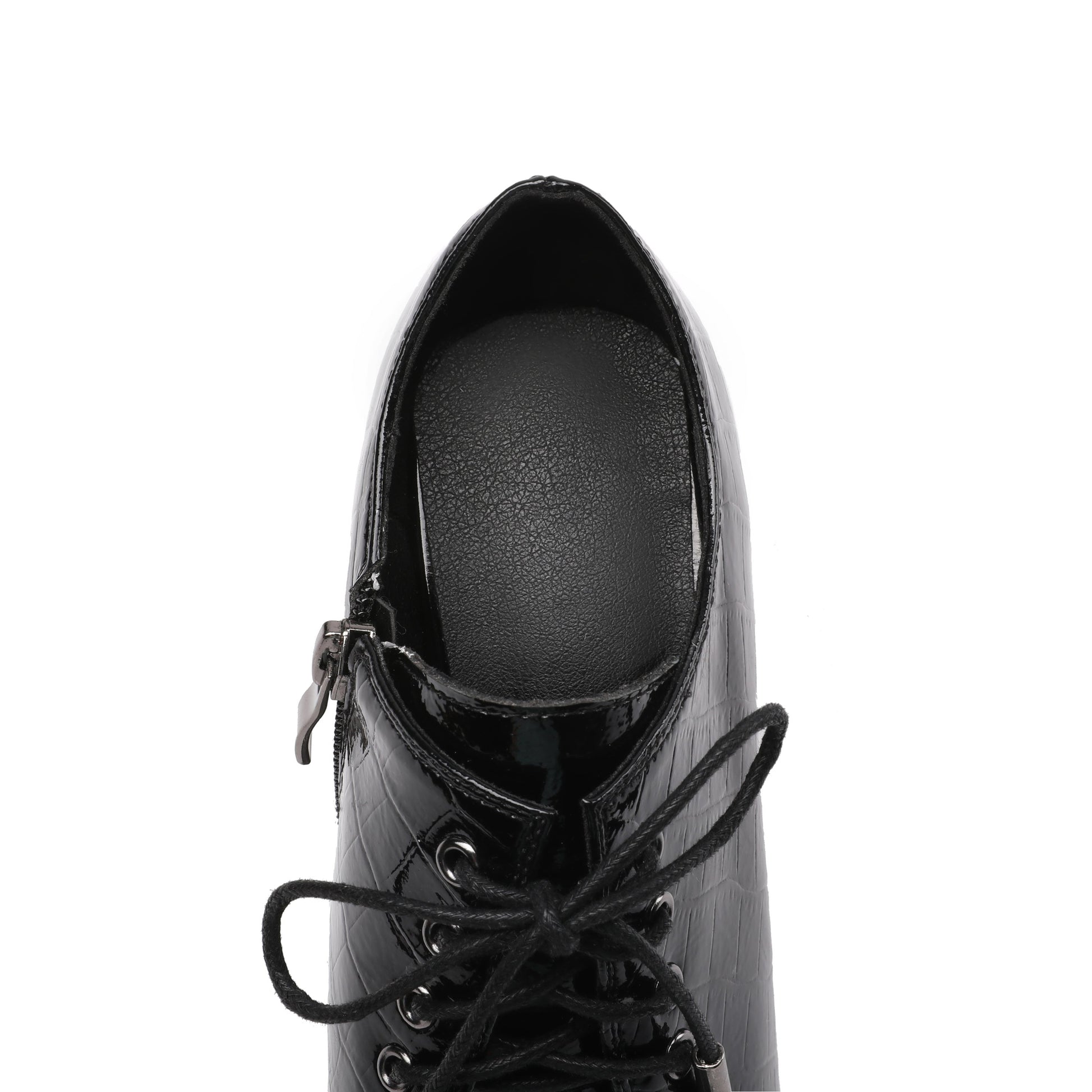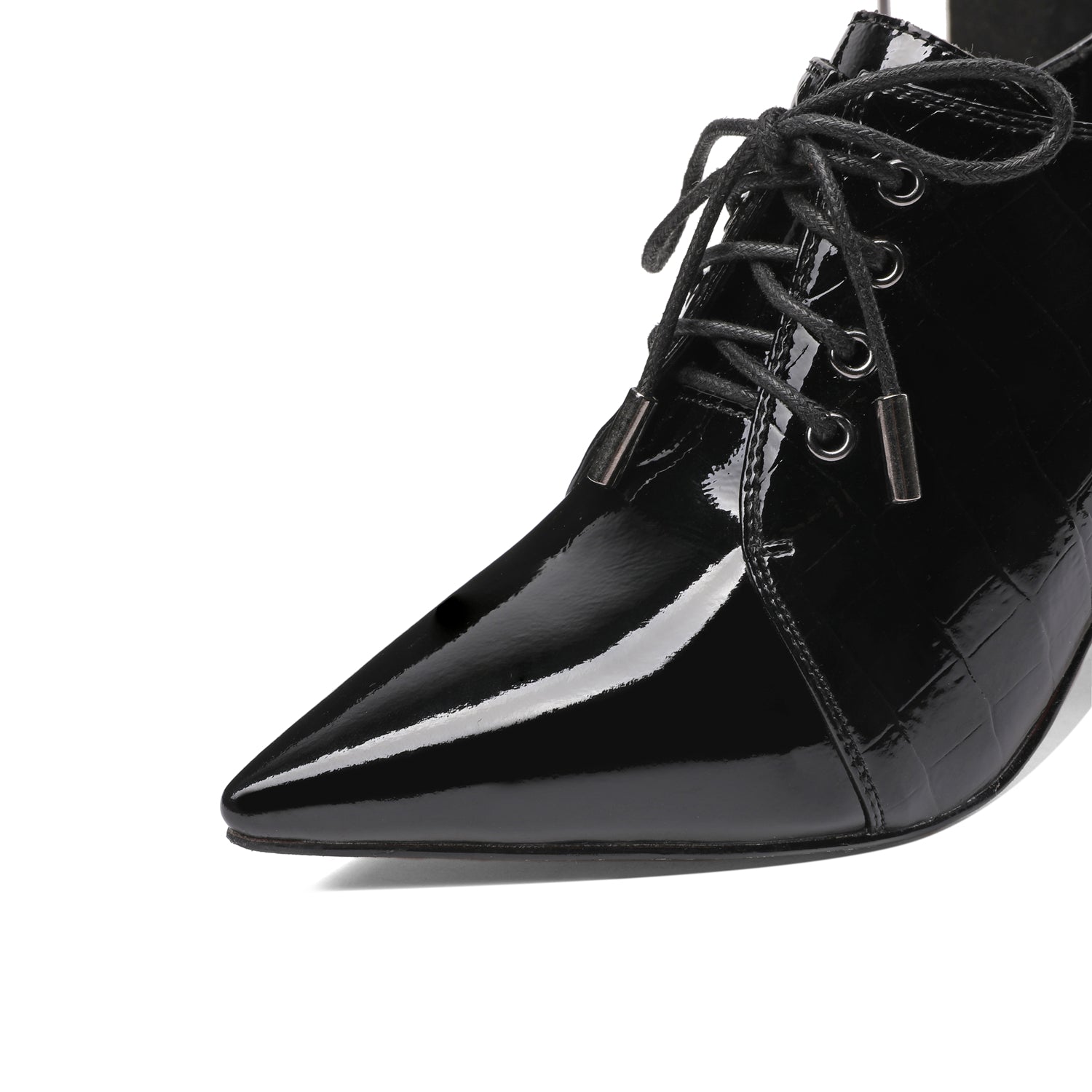 Nine Seven Patent Leather Women's Handmade Pointed Lace Up Toe High Spool Heel Side Zip Retro Pumps
