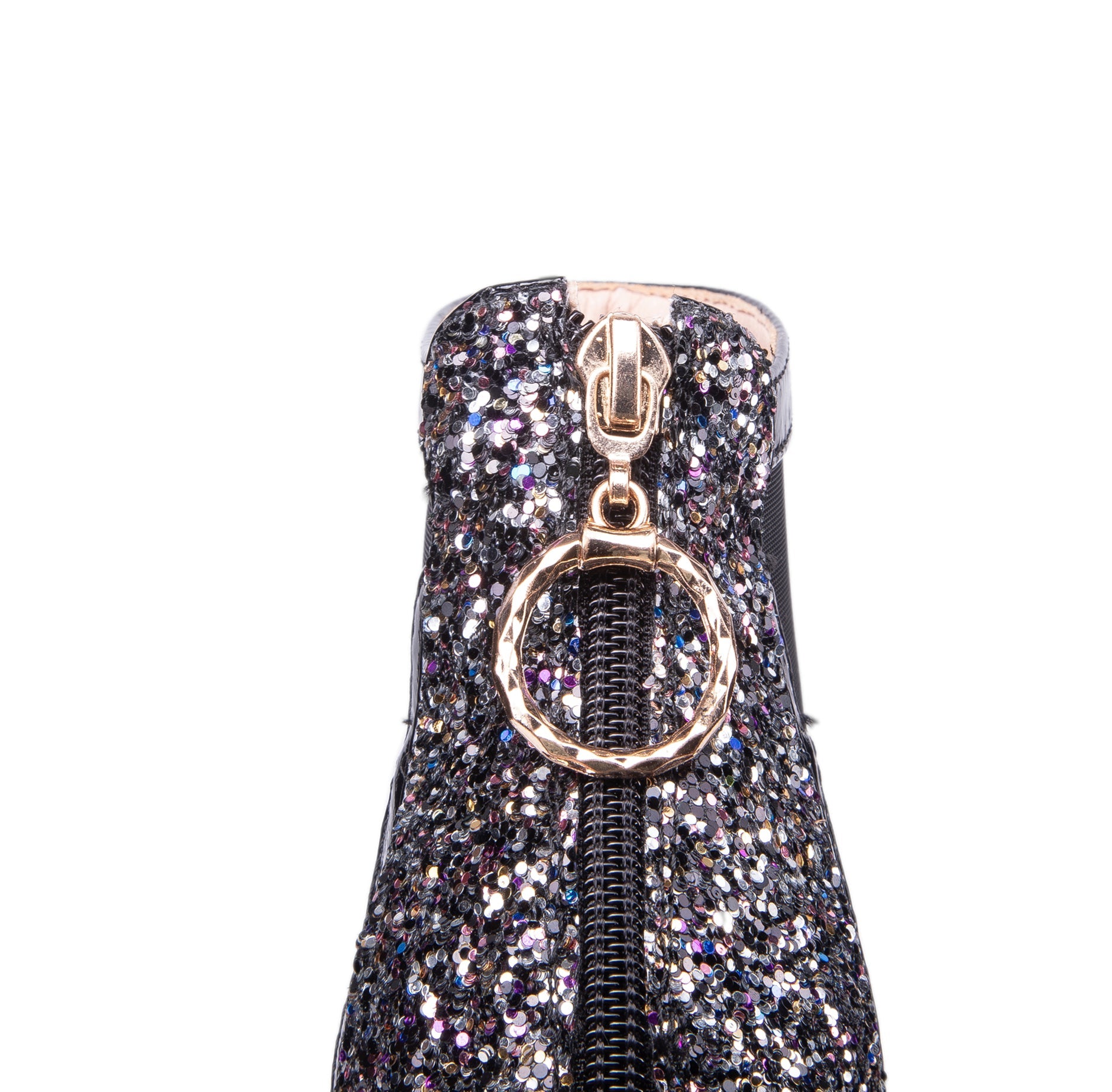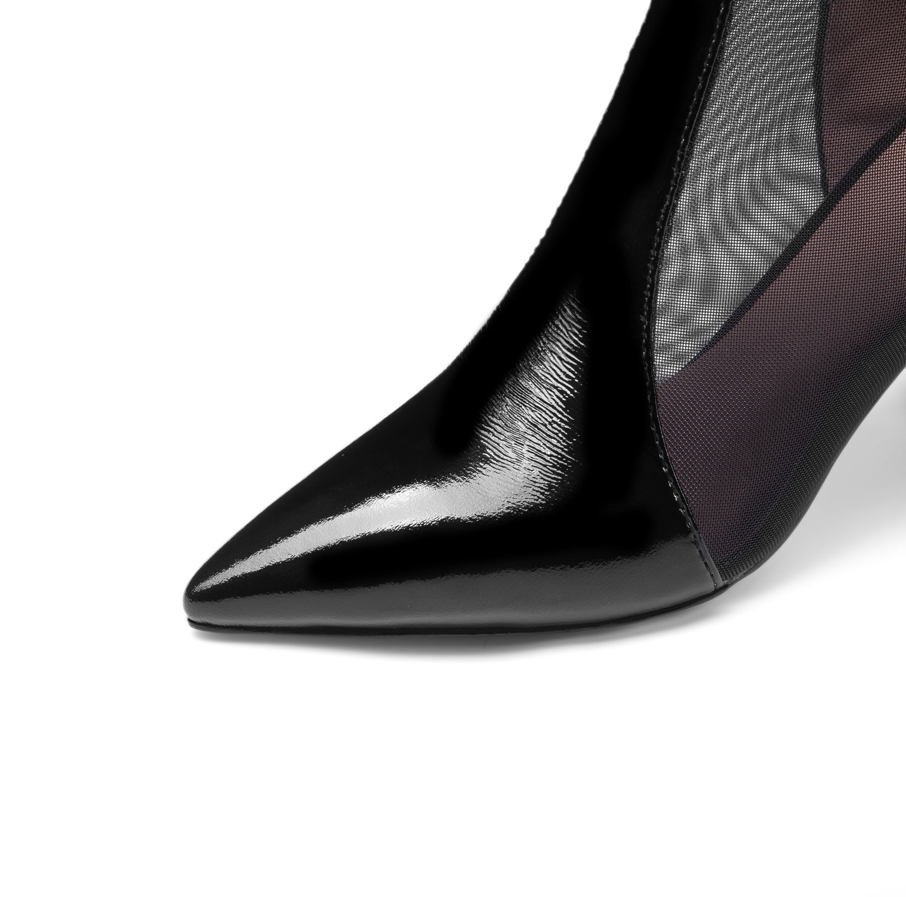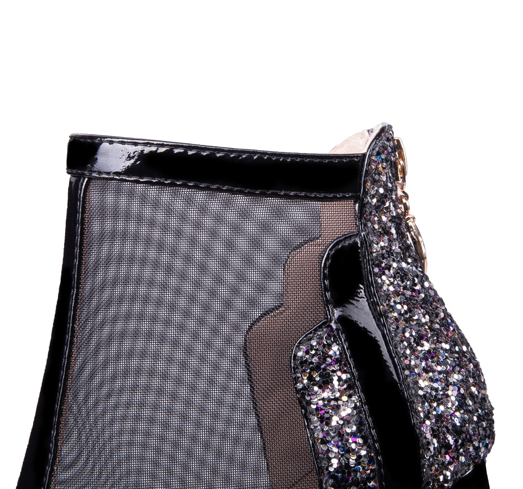 Nine Seven Women's Patent Leather Handmade Mesh Pointed Toe Back Zip Up High Spool Heel Elegant Glitter Summer Booties
