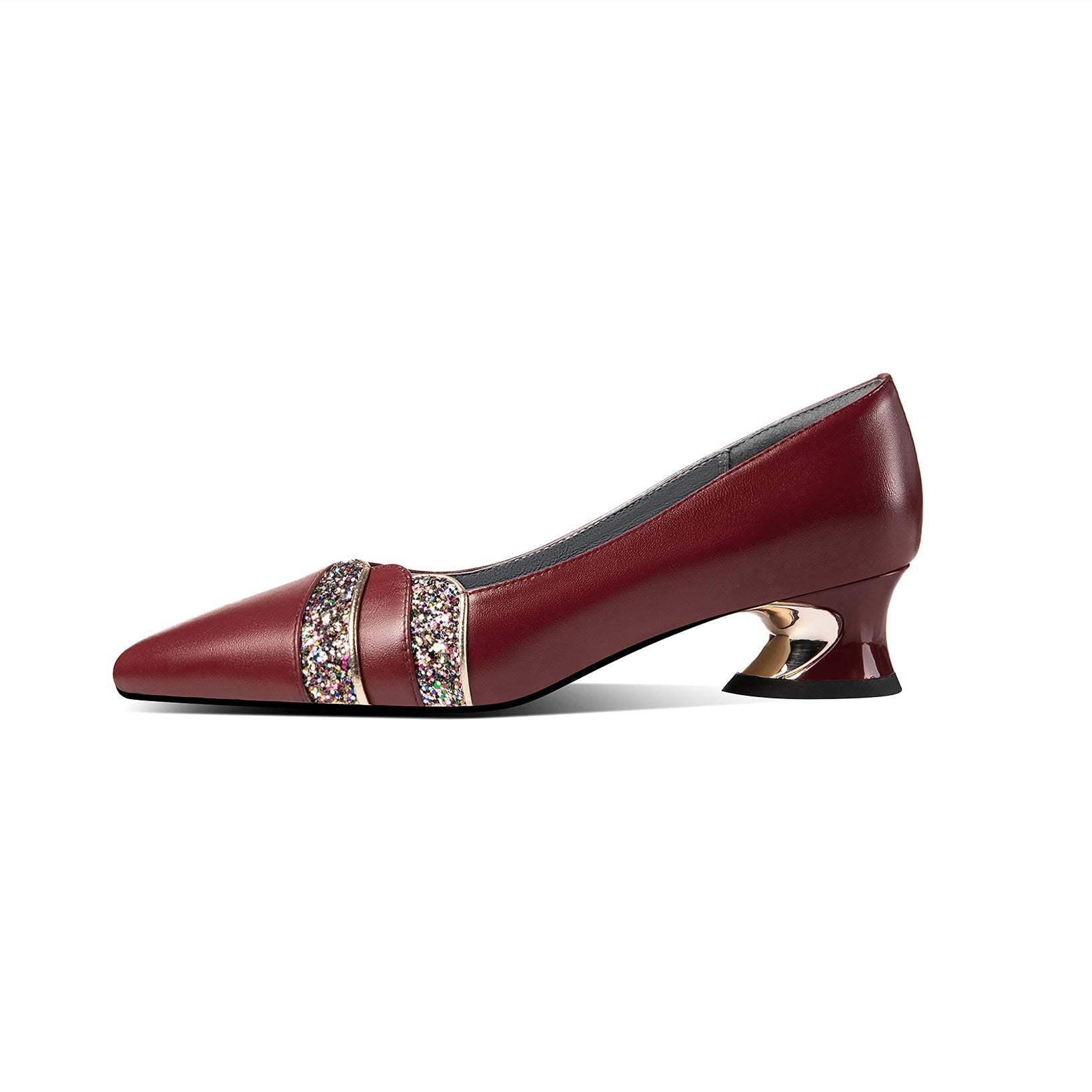 Graceful genuine leather pump shoes are designed with pointed toe and comfortable spool heel. Slip on closure makes this pumps effortless to take on and off. It is suitable for party, club, wedding and many other occasions.