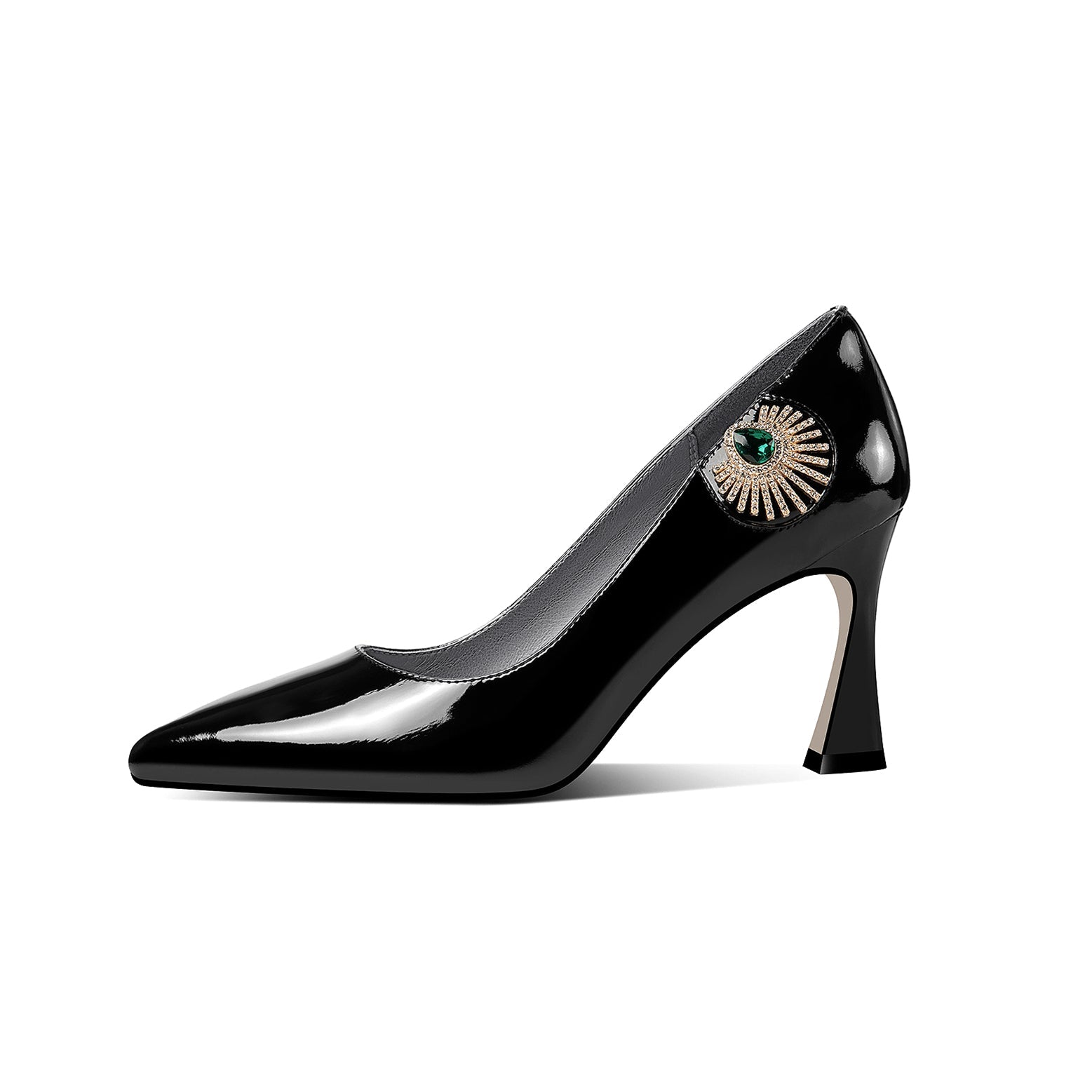 Nine Seven Patent Leather Women's Handmade Pointed Toe Unique Glitter Rhinestone Emerald Crystal Design High Heel Slip On Pumps