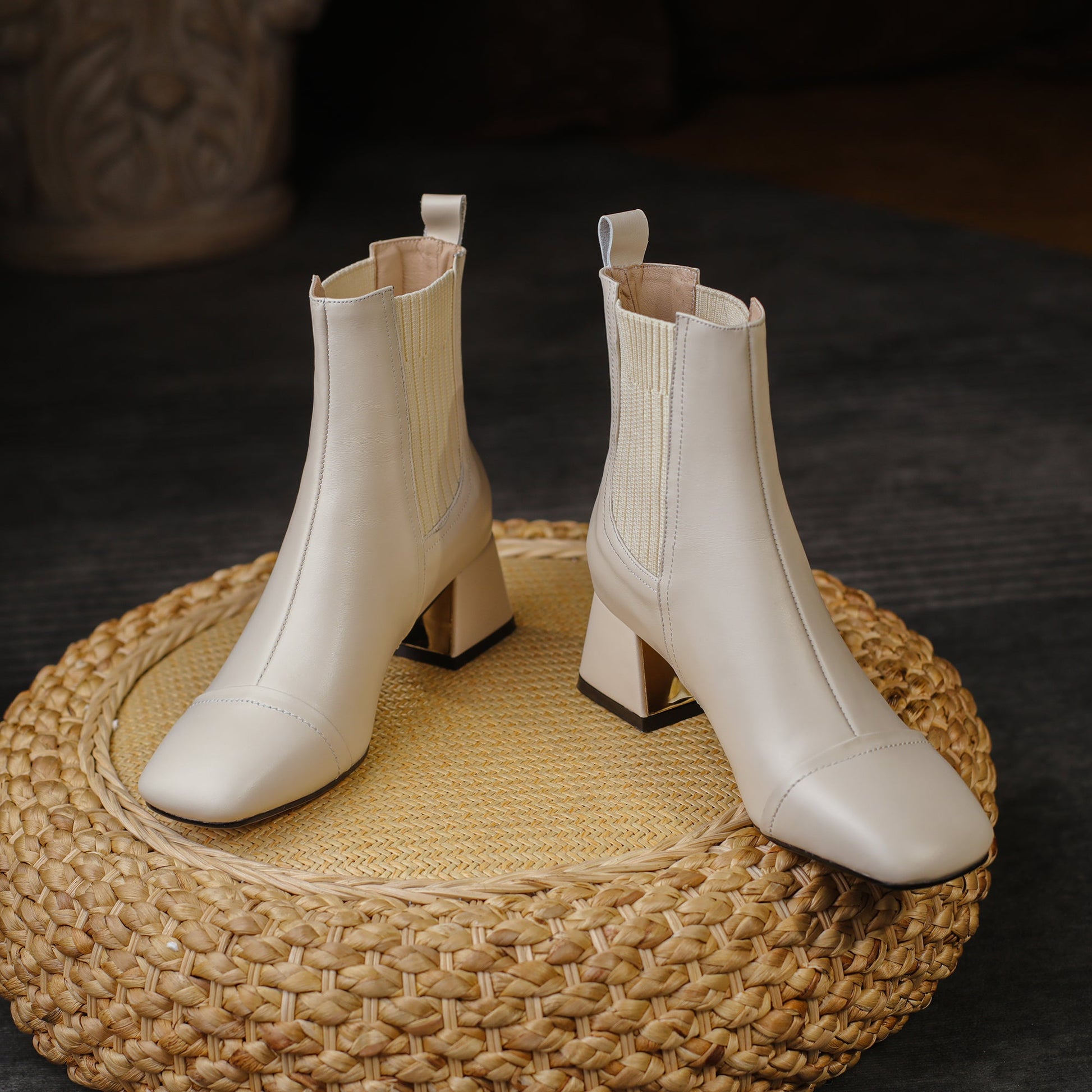 Stylish ankle booties are designed with genuine leather, square toe,block heel, stretch pull on to keep up with fashion trend.