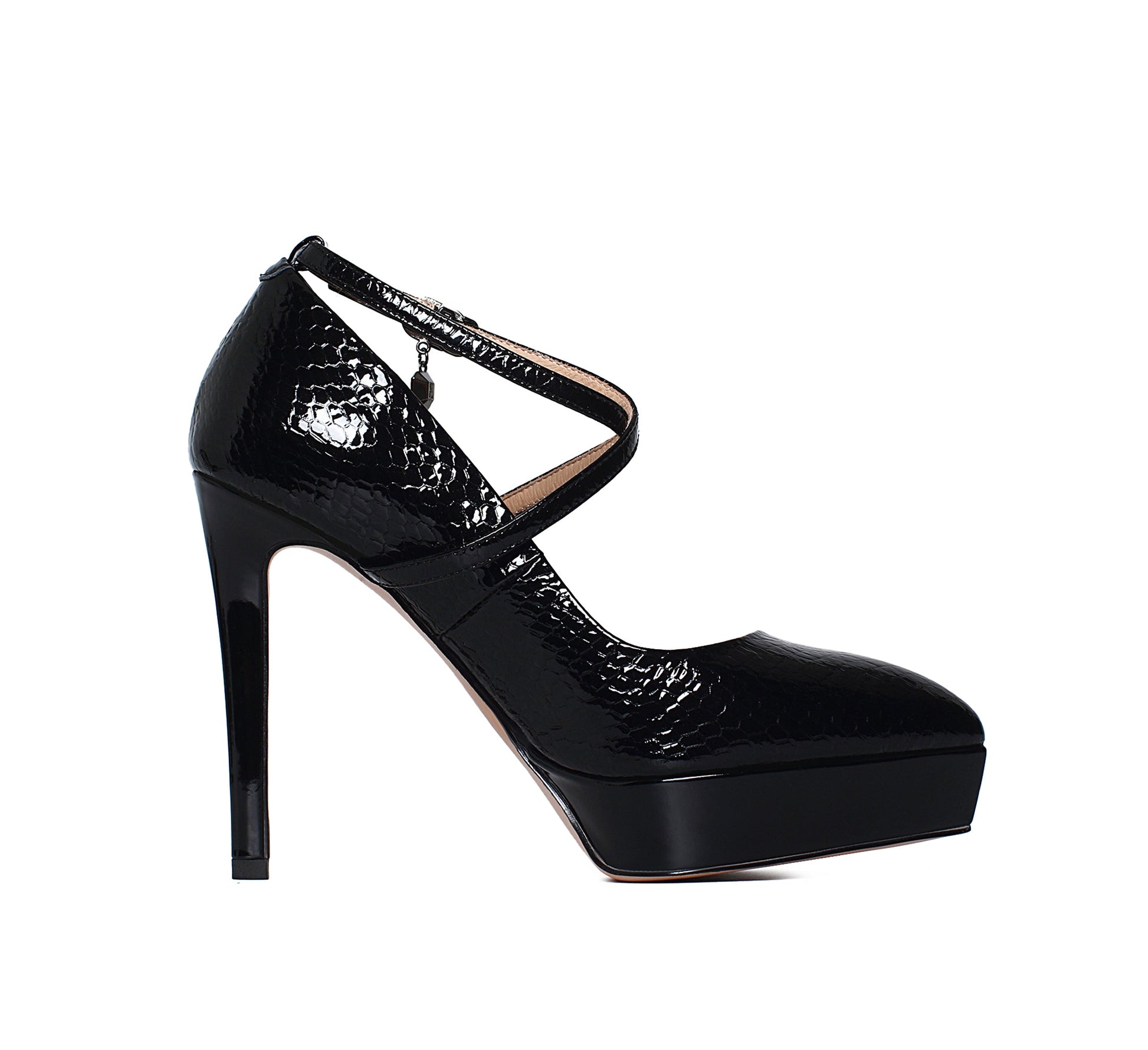 Nine Seven Women's Handmade Genuine Leather High Stiletto Heel Platform Clear Pointed Toe Strap Buckle Pumps with Pendant
