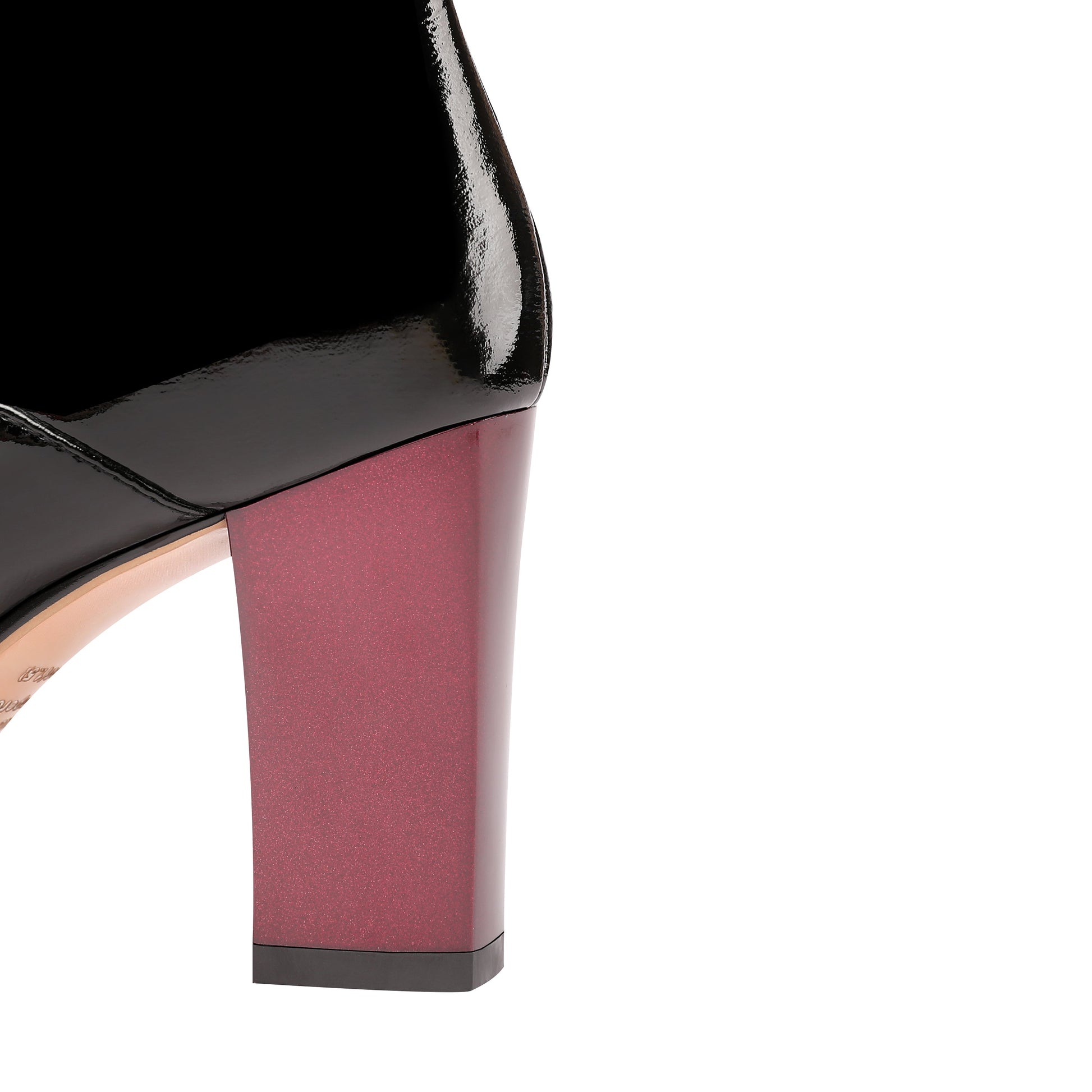 Nine Seven Women's Handmade Genuine Leather Clear Pointed Toe Chunky Heel Stylish Front Zip Ankle Booties