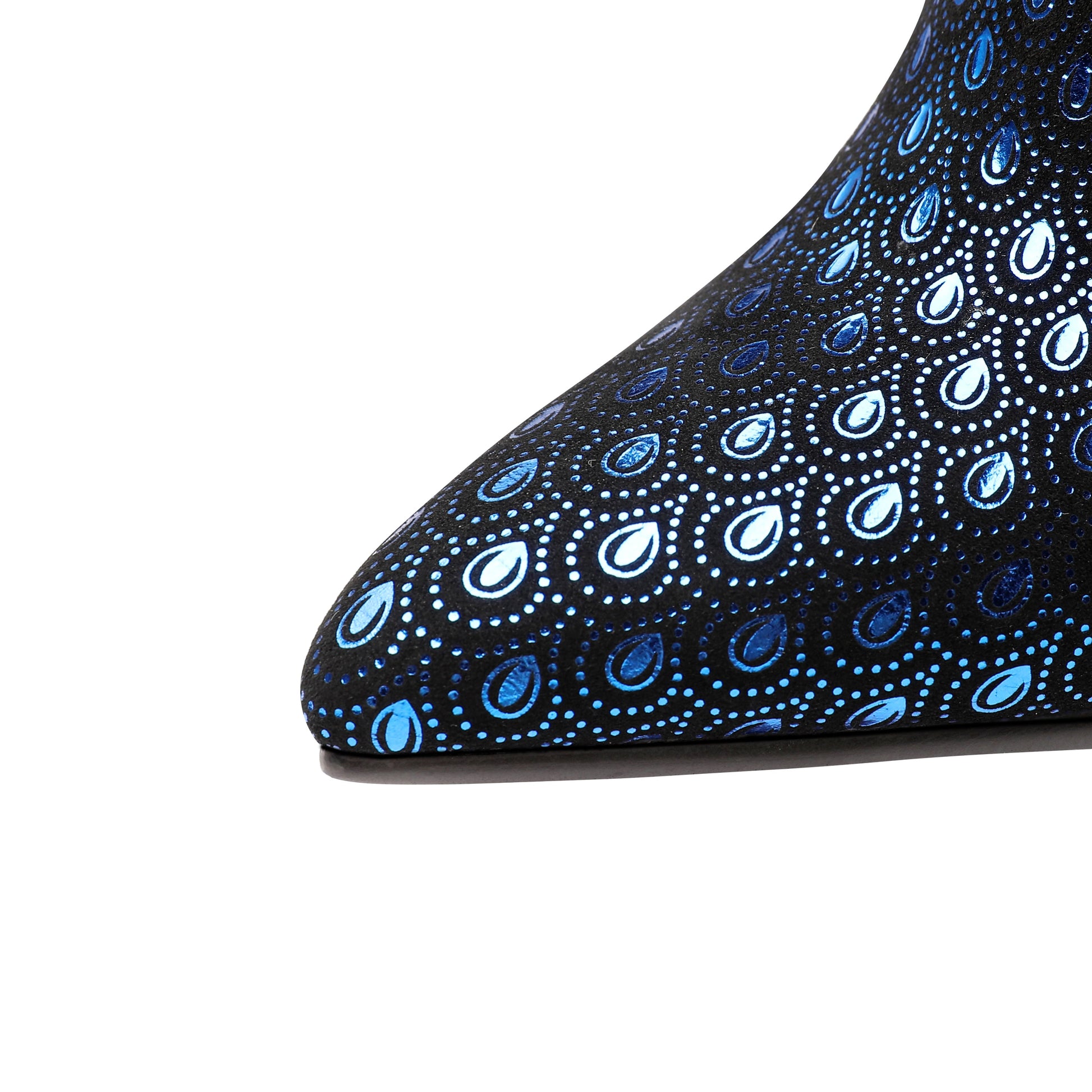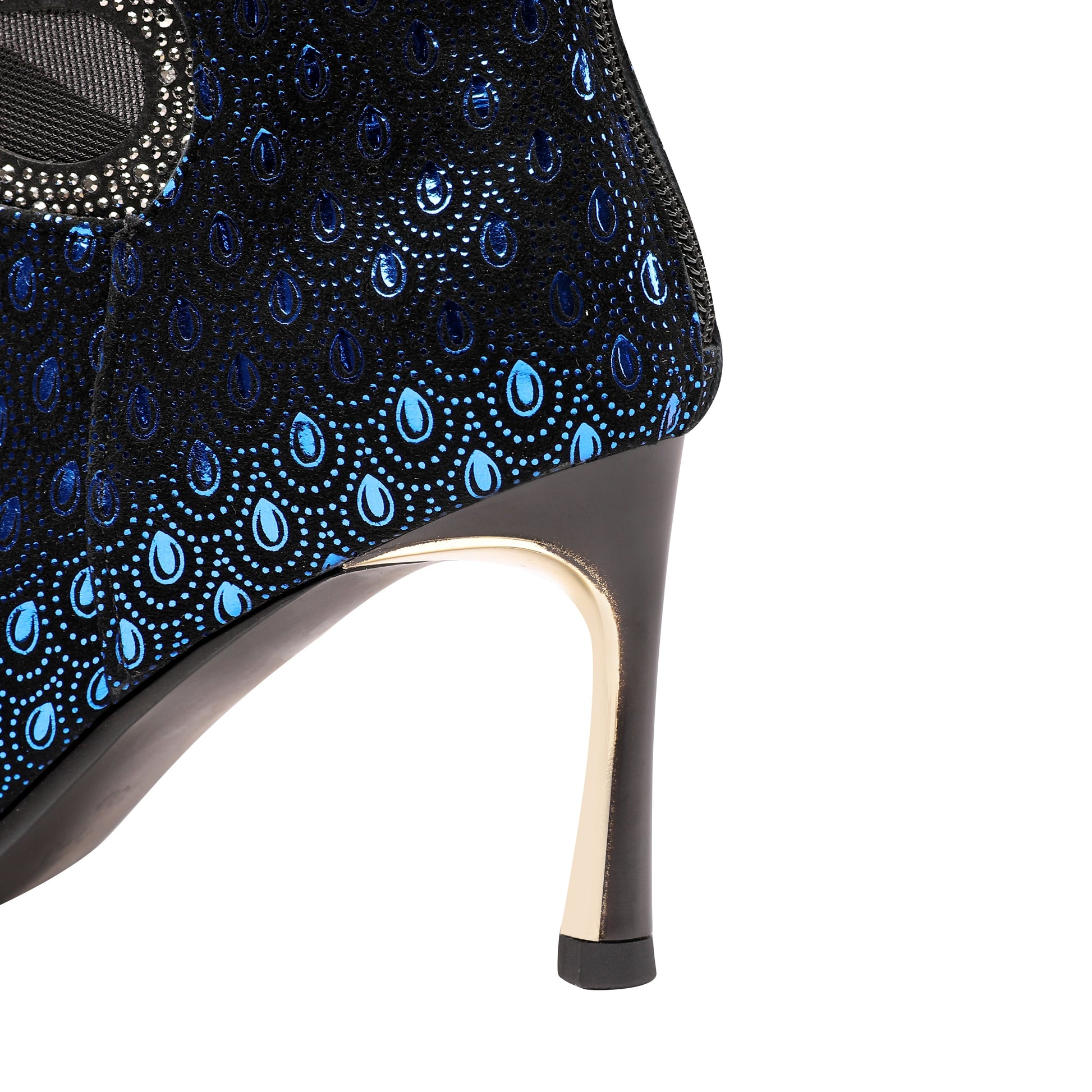 Nine Seven Women's Handmade Leather Metal Stiletto Heel Back Zip Up Pointed Toe Ankle Boots with Glitter Rhinestone