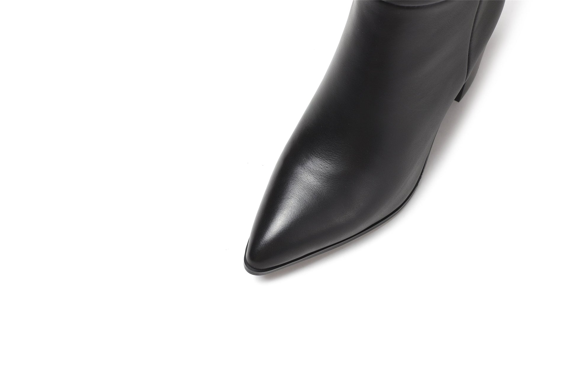 Nine Seven Pointed Toe Genuine Leather Handmade Chunky Heels Slip On Women's Classic Knee High Boots