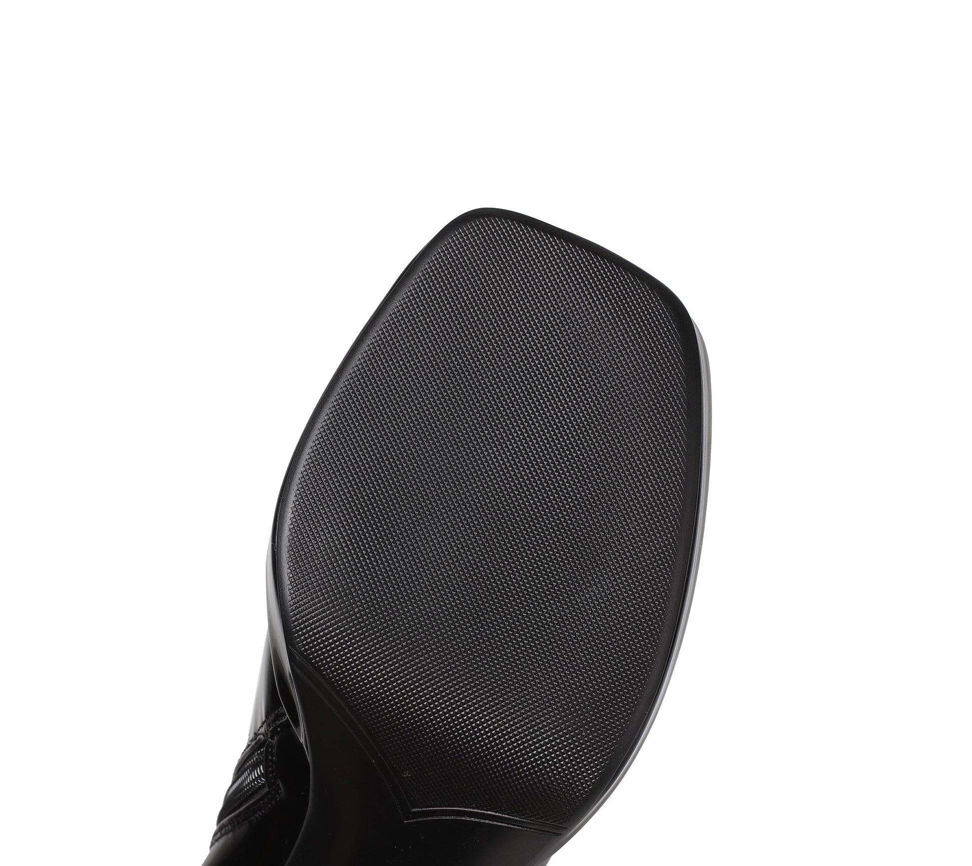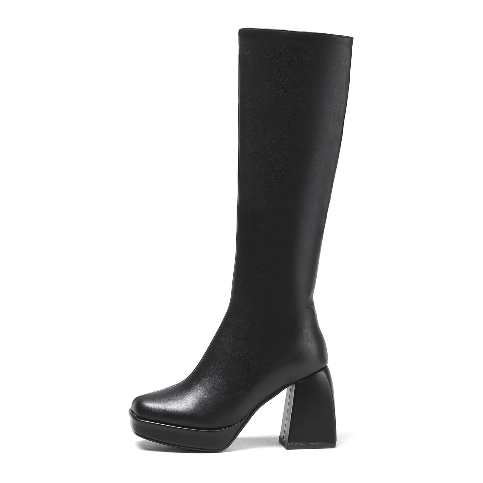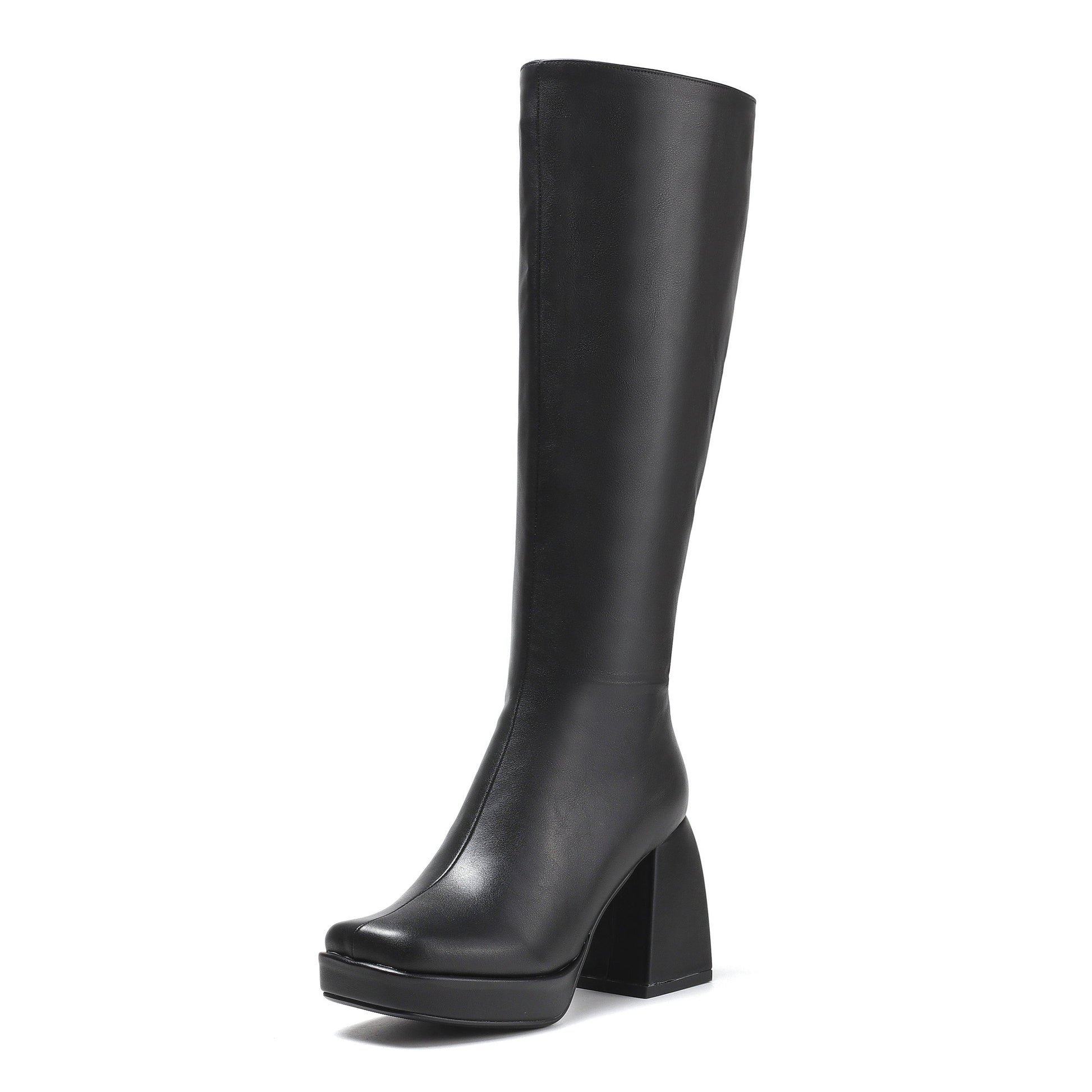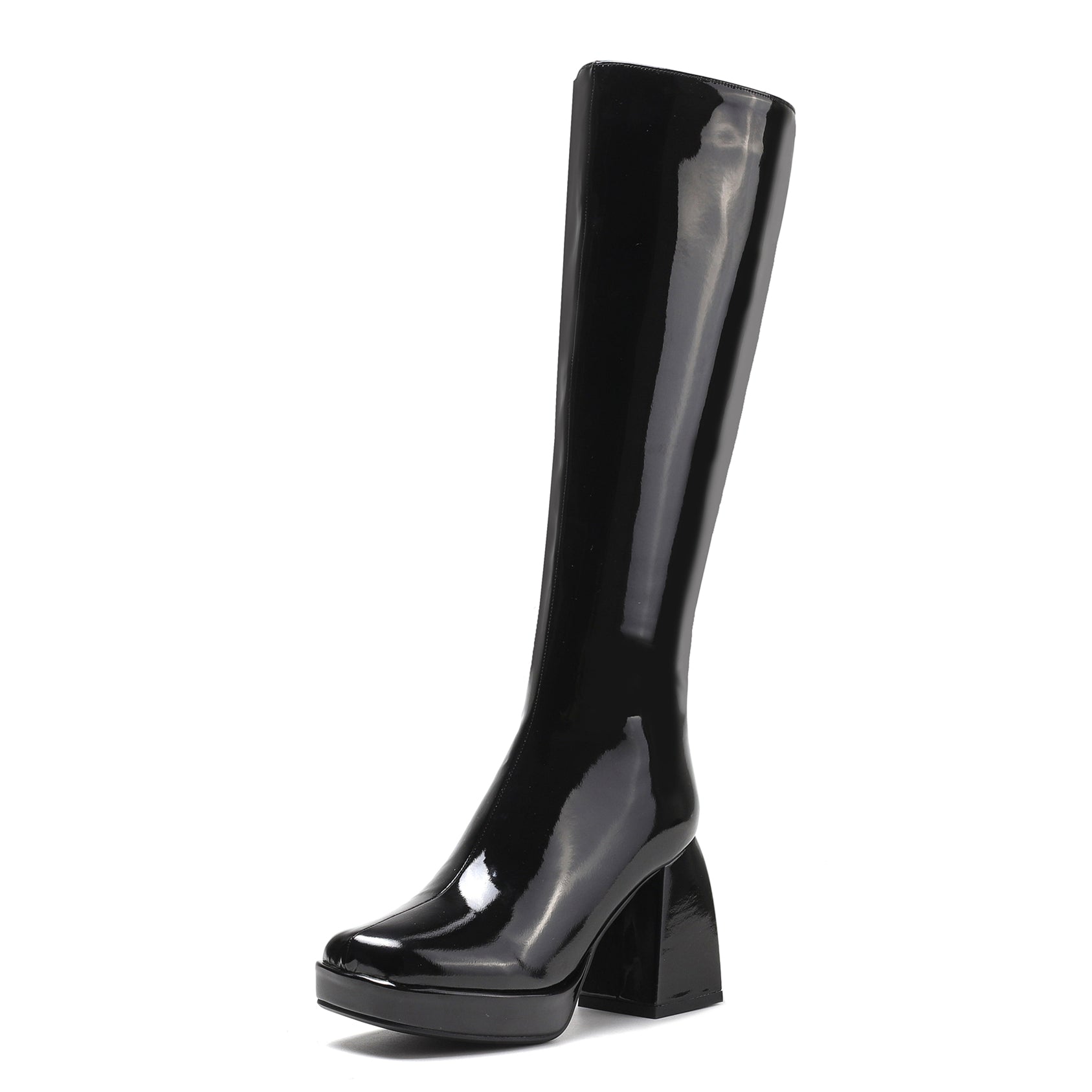 Nine Seven Women's Genuine/Patent Leather Square Toe Handmade Zipper Chunky Heels Chic Knee High Boots with Platform