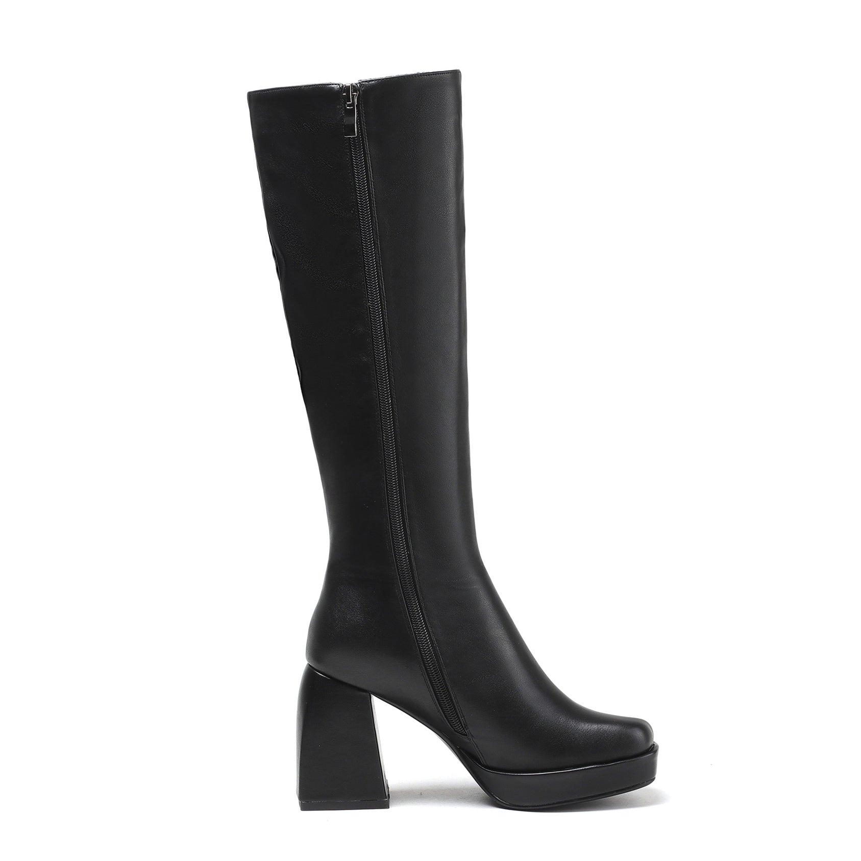 Stylish knee high boots designed with platporm and high chunky heels to keep up with fashion trend.