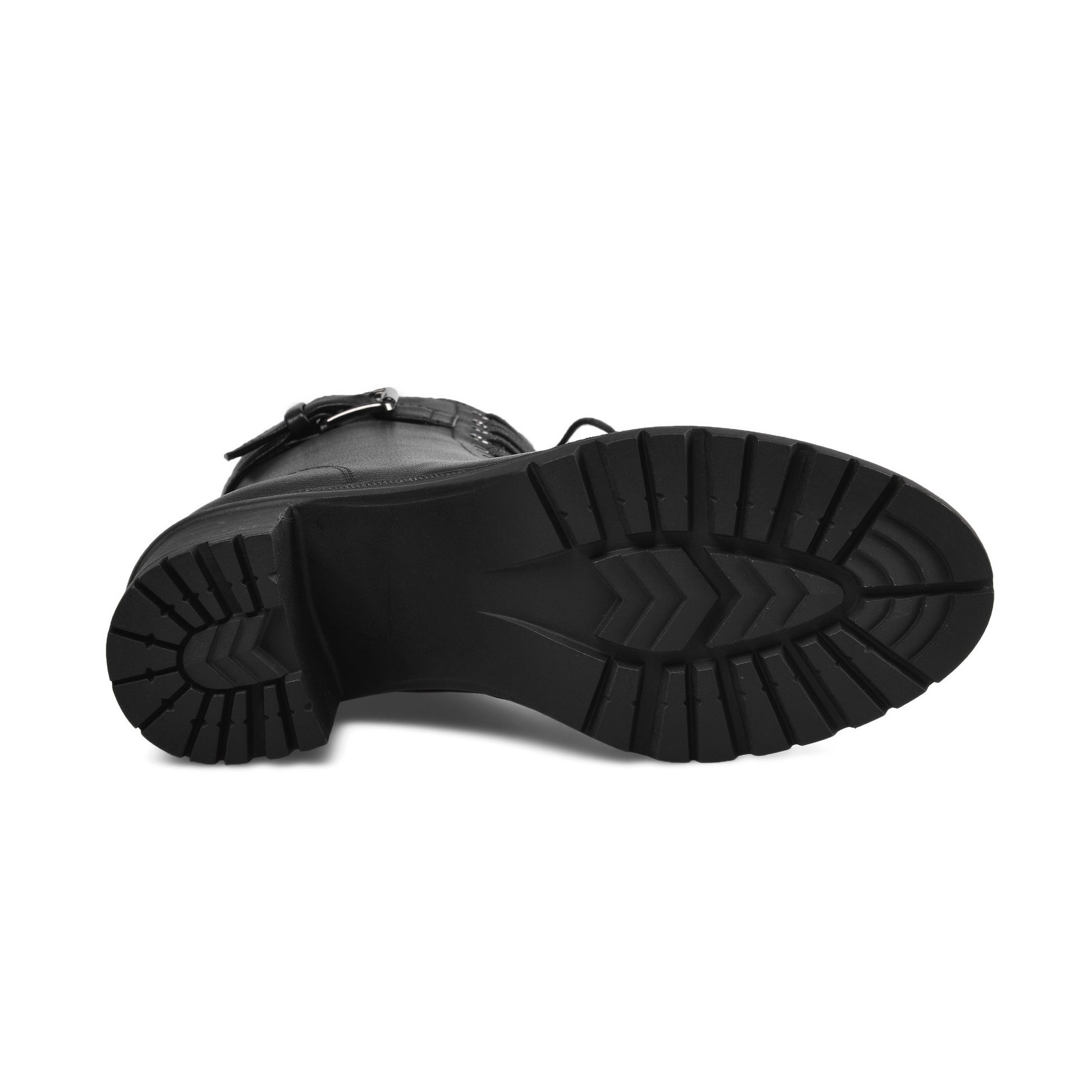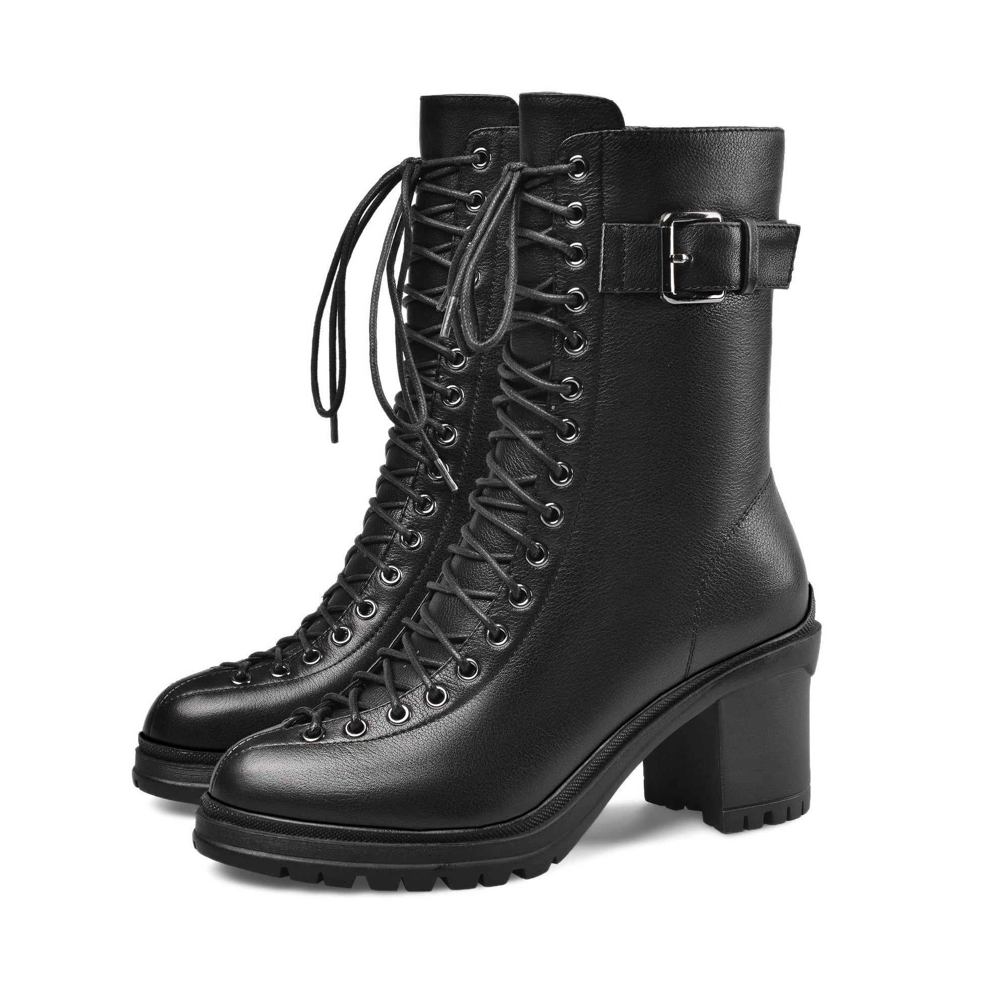 Cool mid calf boots designed with lace up and buckle to keep up with fashion trend.