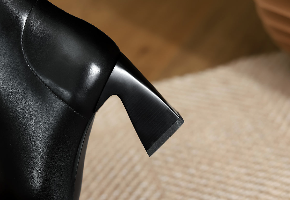 Elegant dress boots are designed with genuine leather, square toe, mid chunky heel, zip closure to keep up with fashion trend. These fashion booties can go with many different styles of outfits.