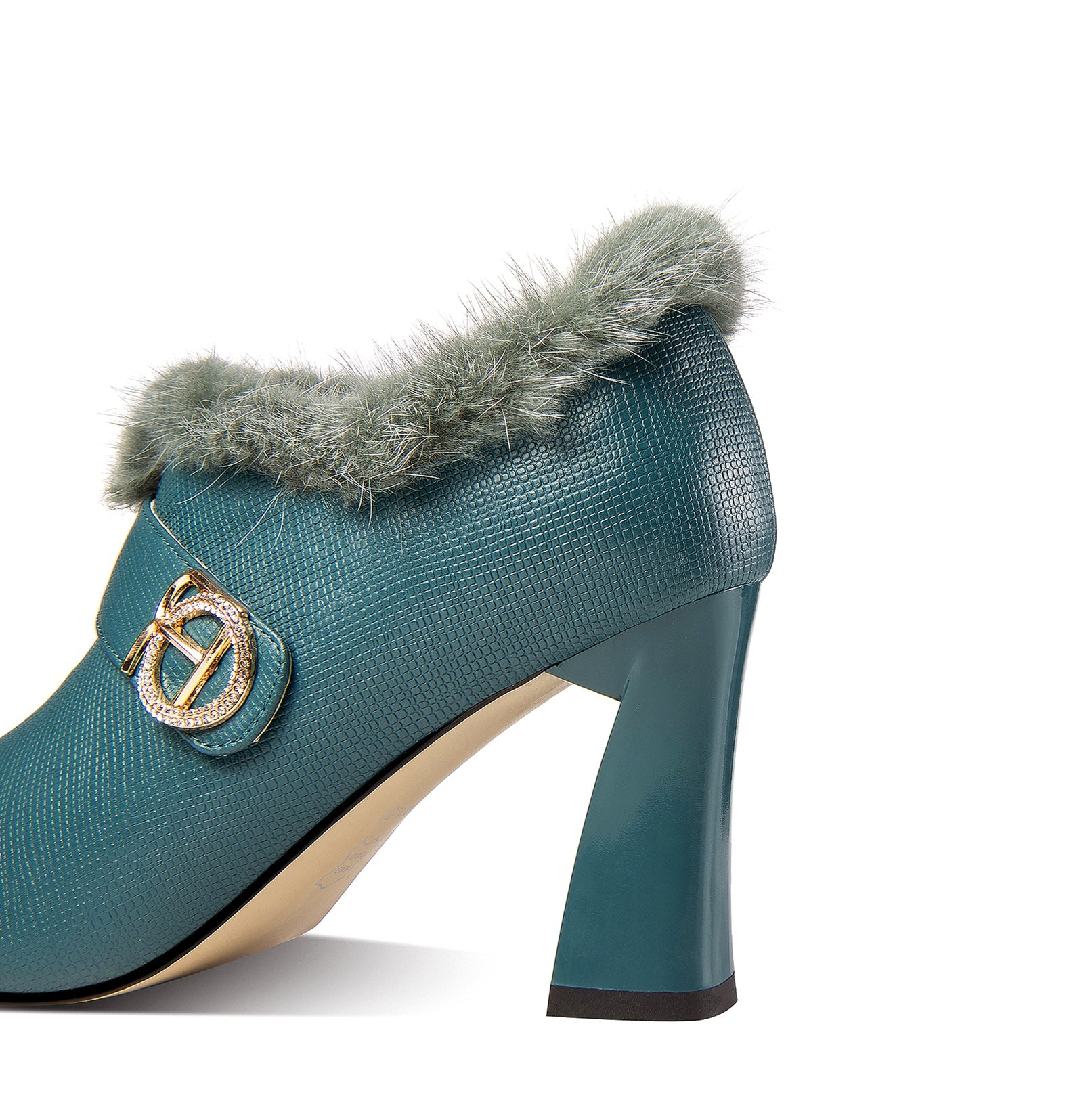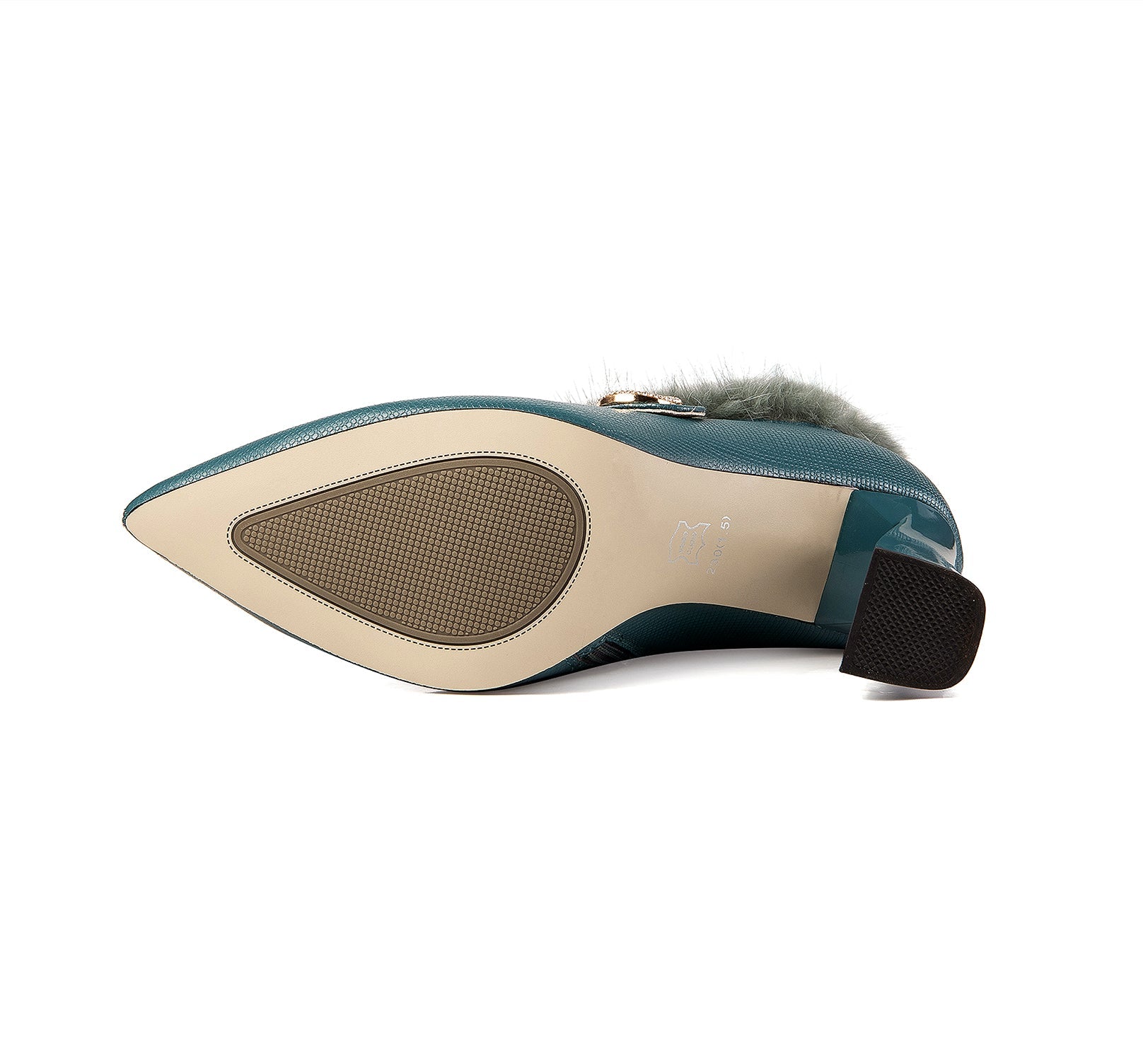 Stylish pump shoes are designed with genuine leather, pointed toe, high spool heel, zip and fur to keep up with fashion trend and give you visual enjoyment.
