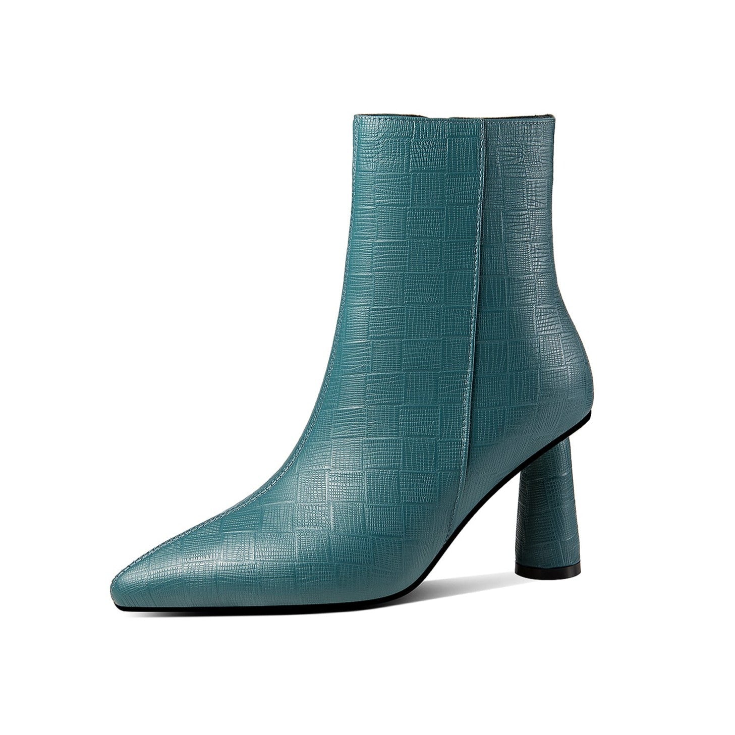 Nine Seven Genuine Leather Women's Handmade Cone Heel Side zip Up Pointed Toe Elegant Ankle Booties