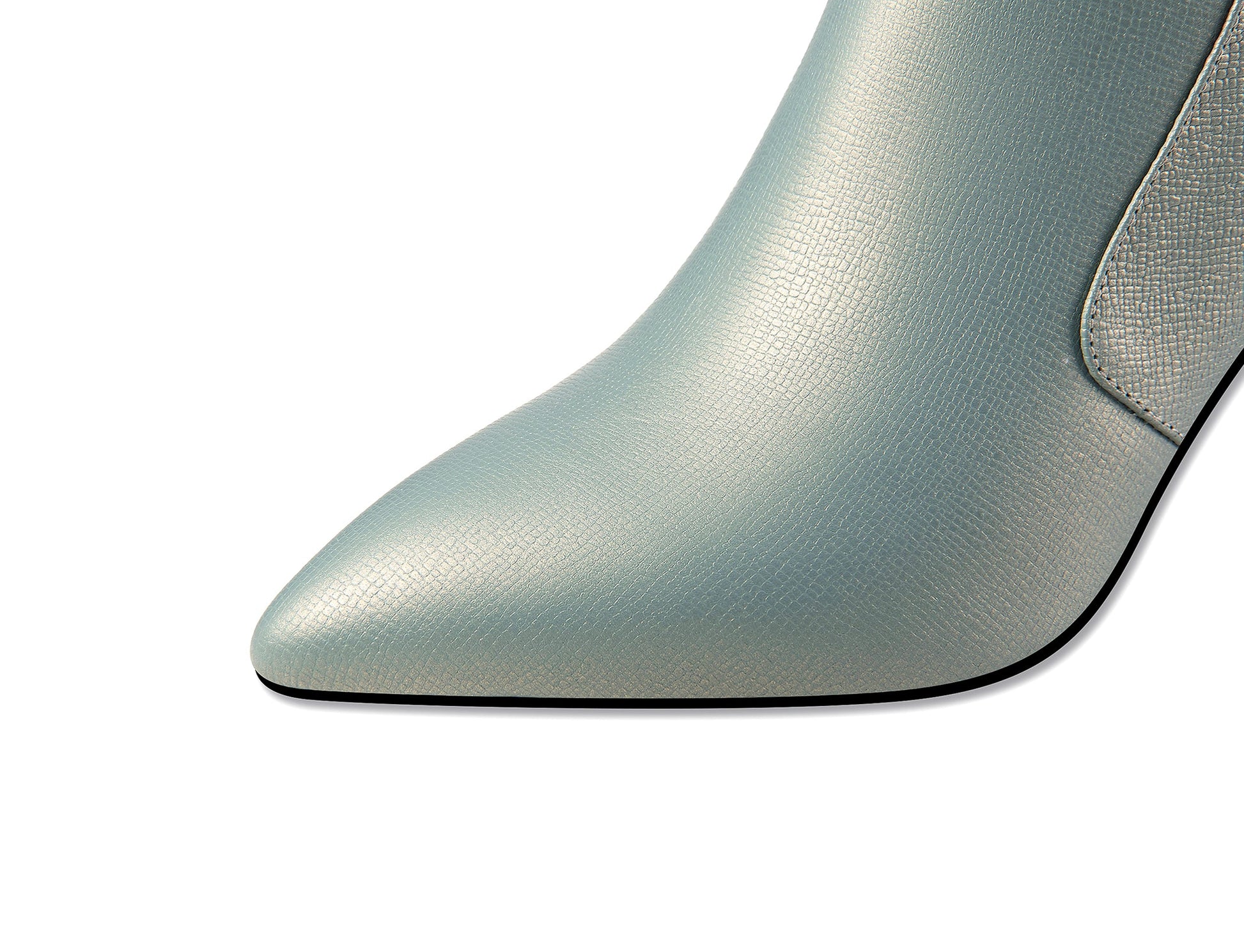 Stylish ankle boots are designed with genuine leather, pointed toe, high spool heel, side zip and modern belt to keep up with fashion trend and give you visual enjoyment.