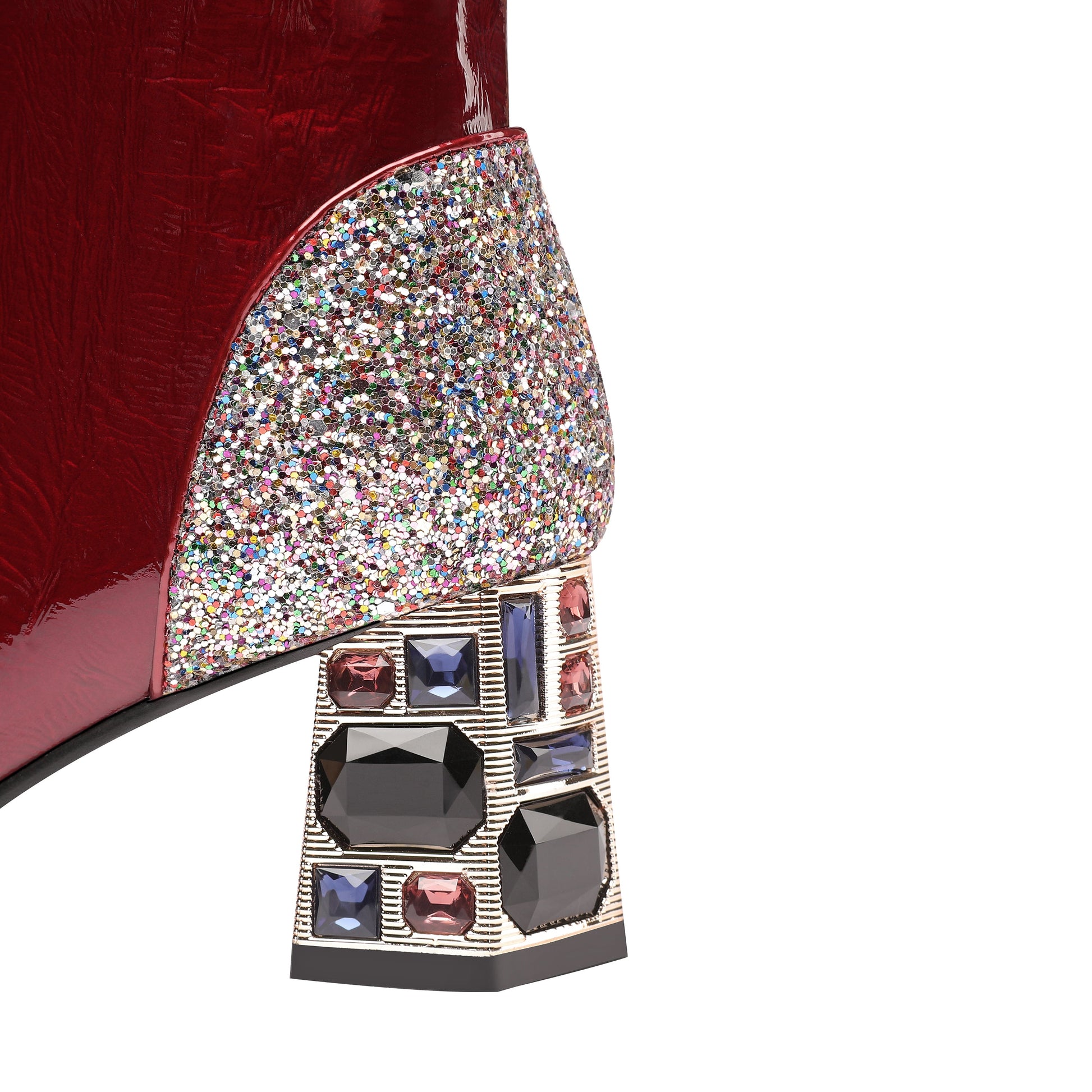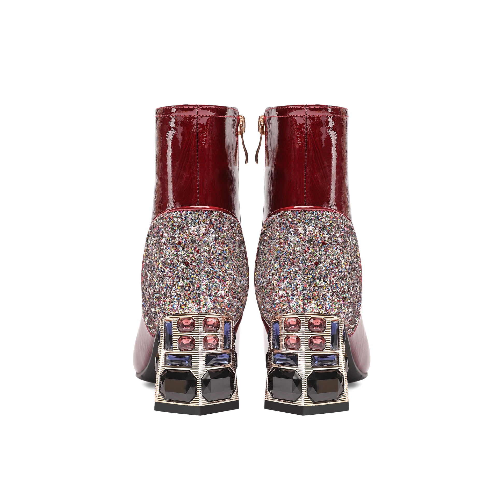Nine Seven Women's Handmade Patent Leather Clear Pointed Toe Crystal Decor Chunky Heel Side Zip Sparkling Glitter Ankle Boots