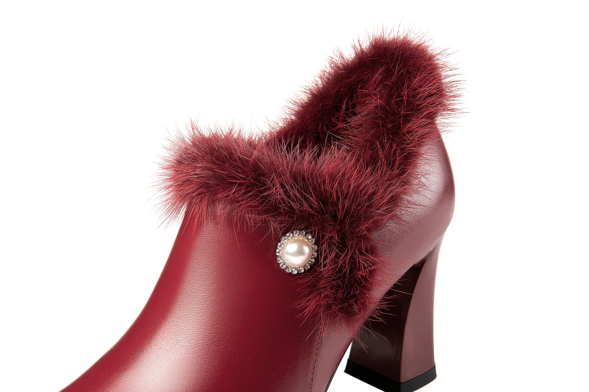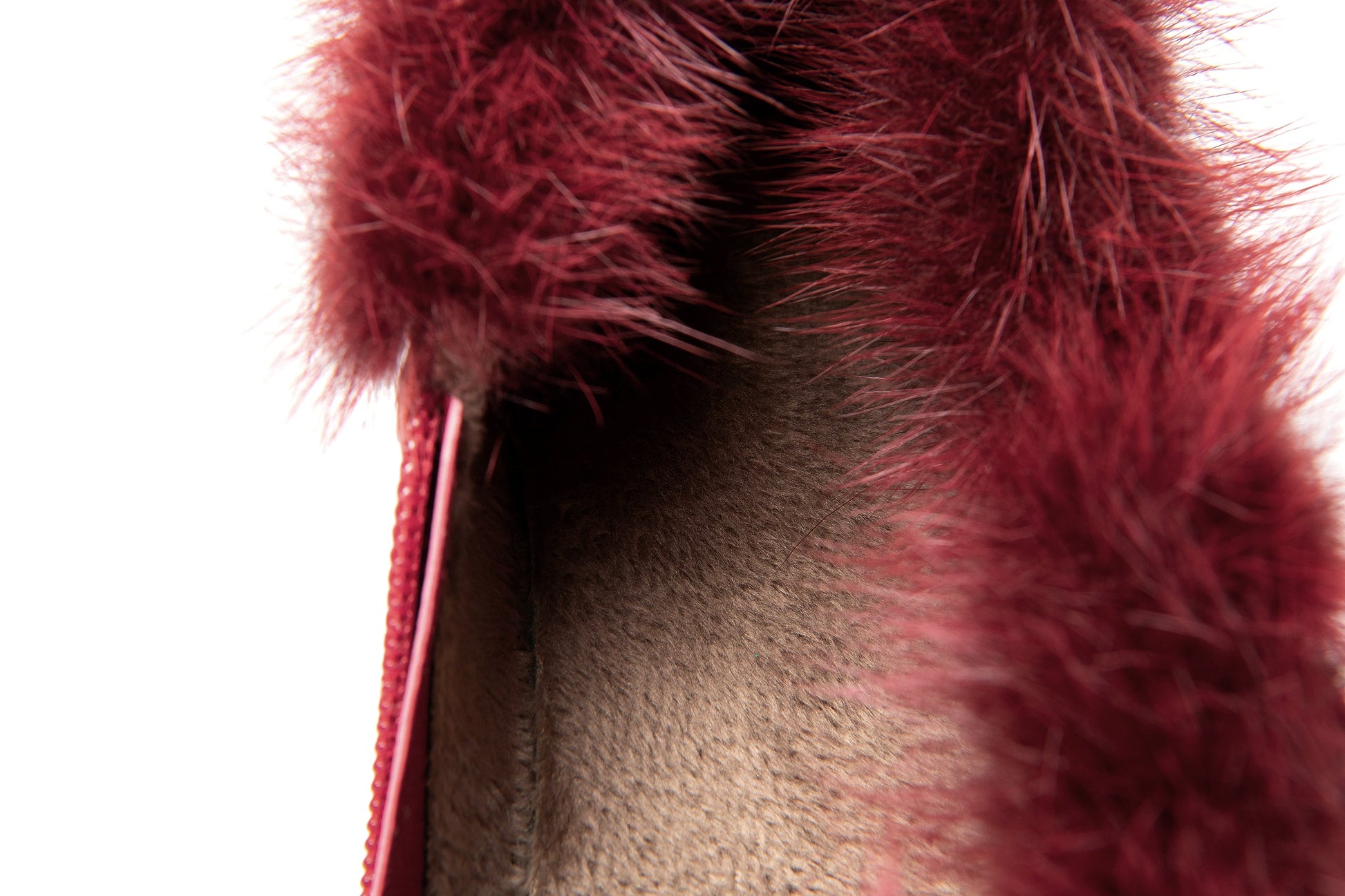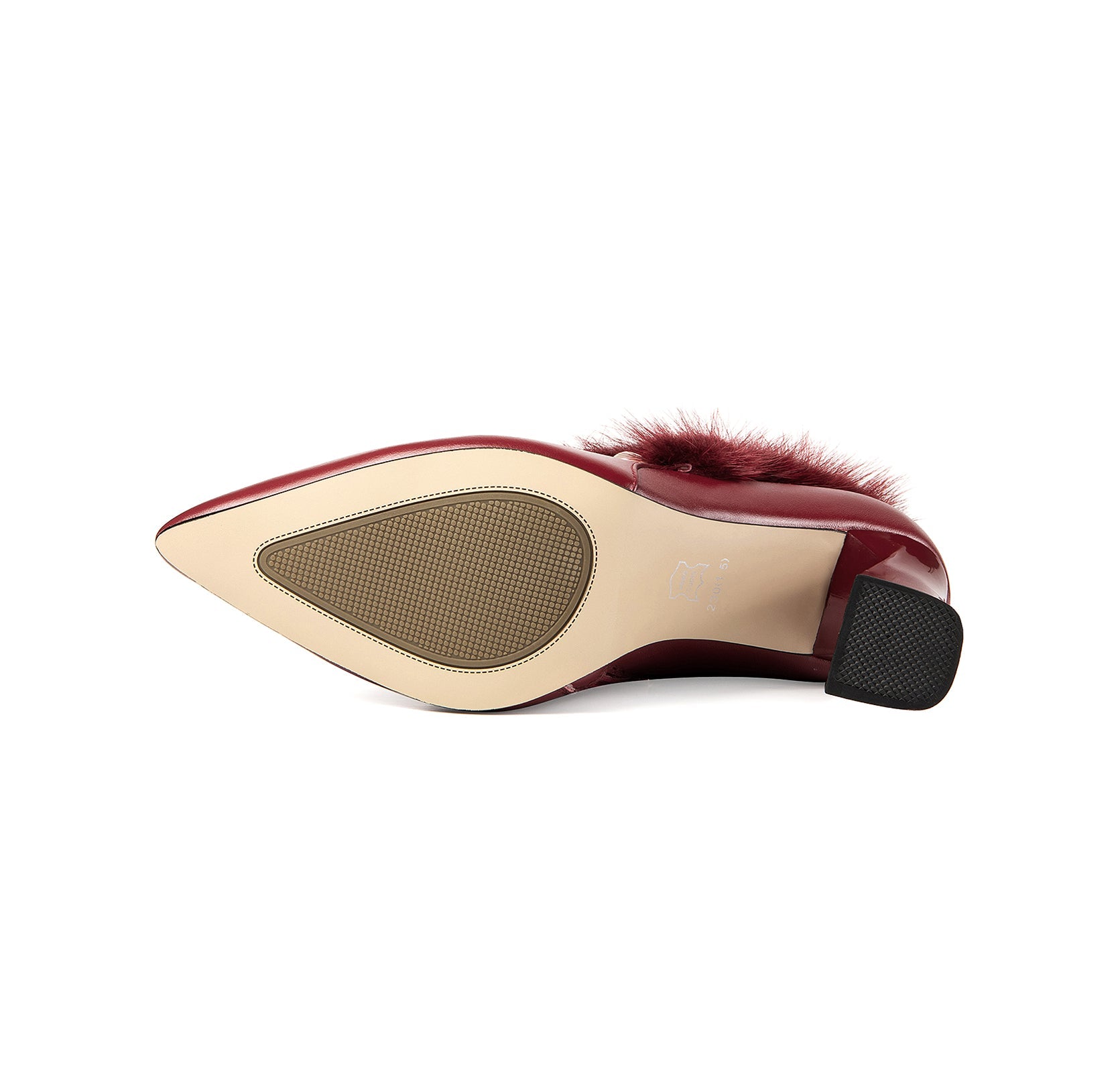 Graceful pumps are designed with clear pointed toe and high chunky heel. Side zipper with fur decor is trendy and convenient.It is suitable for party, club and many other occasions.