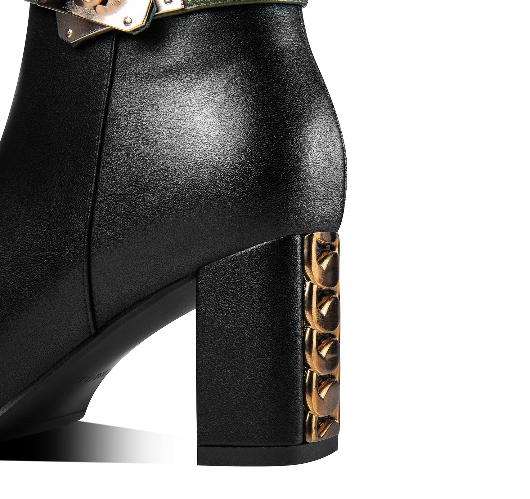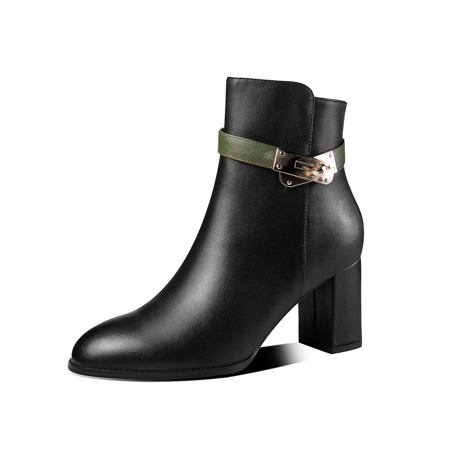 Modern boots are designed with genuine leather, block heel, belt and side zip to keep up with fashion trend. These fashion boots can go with different outfits.