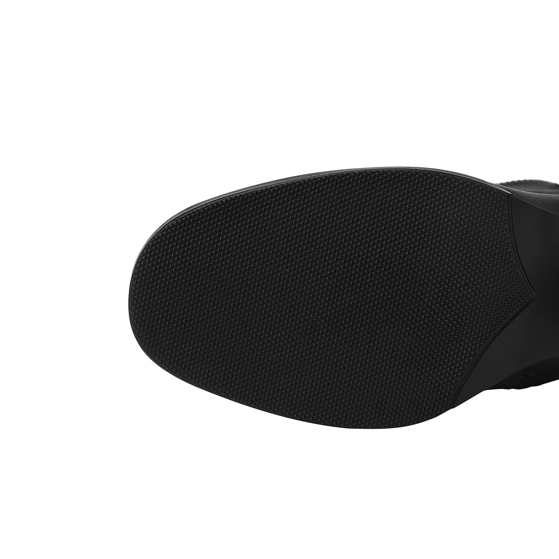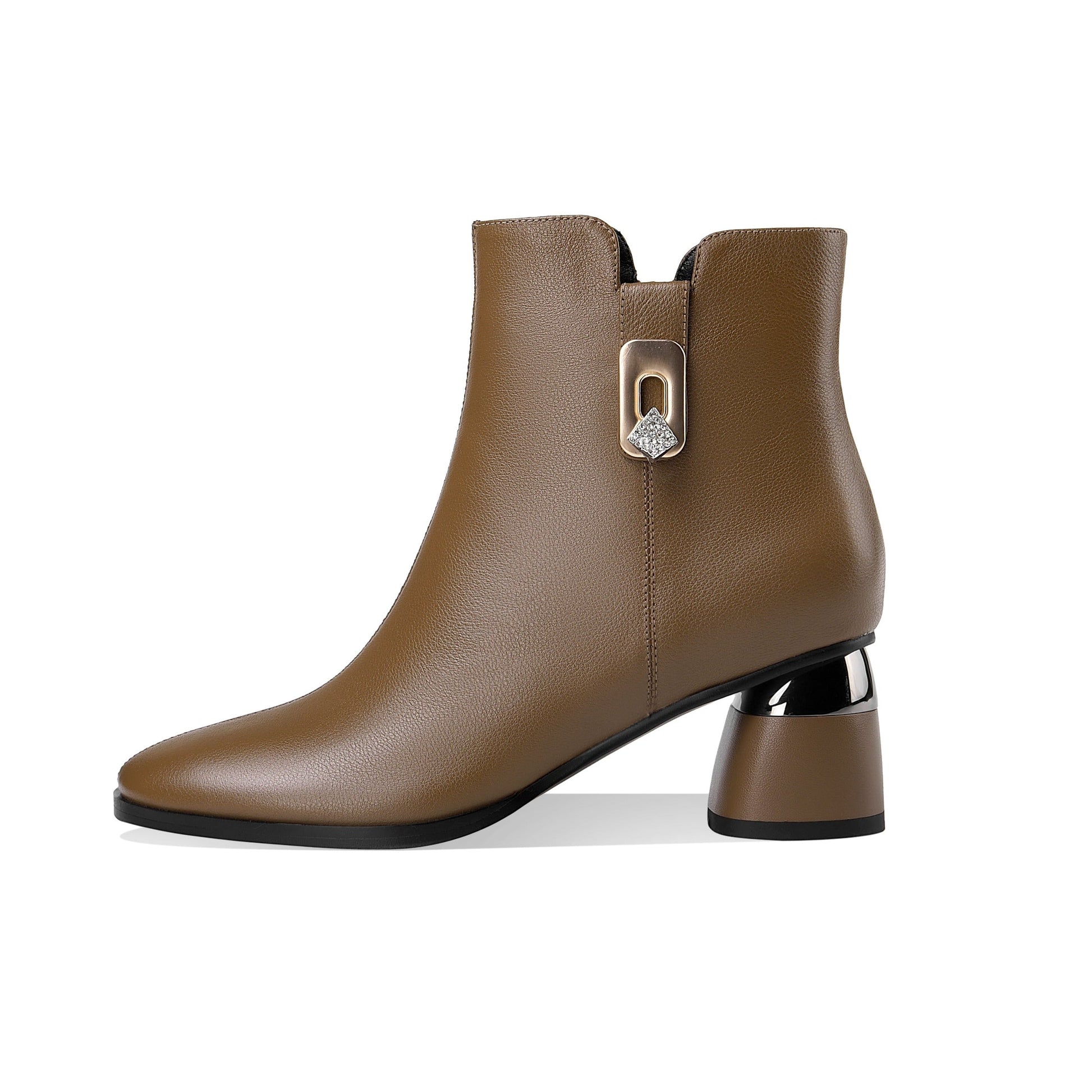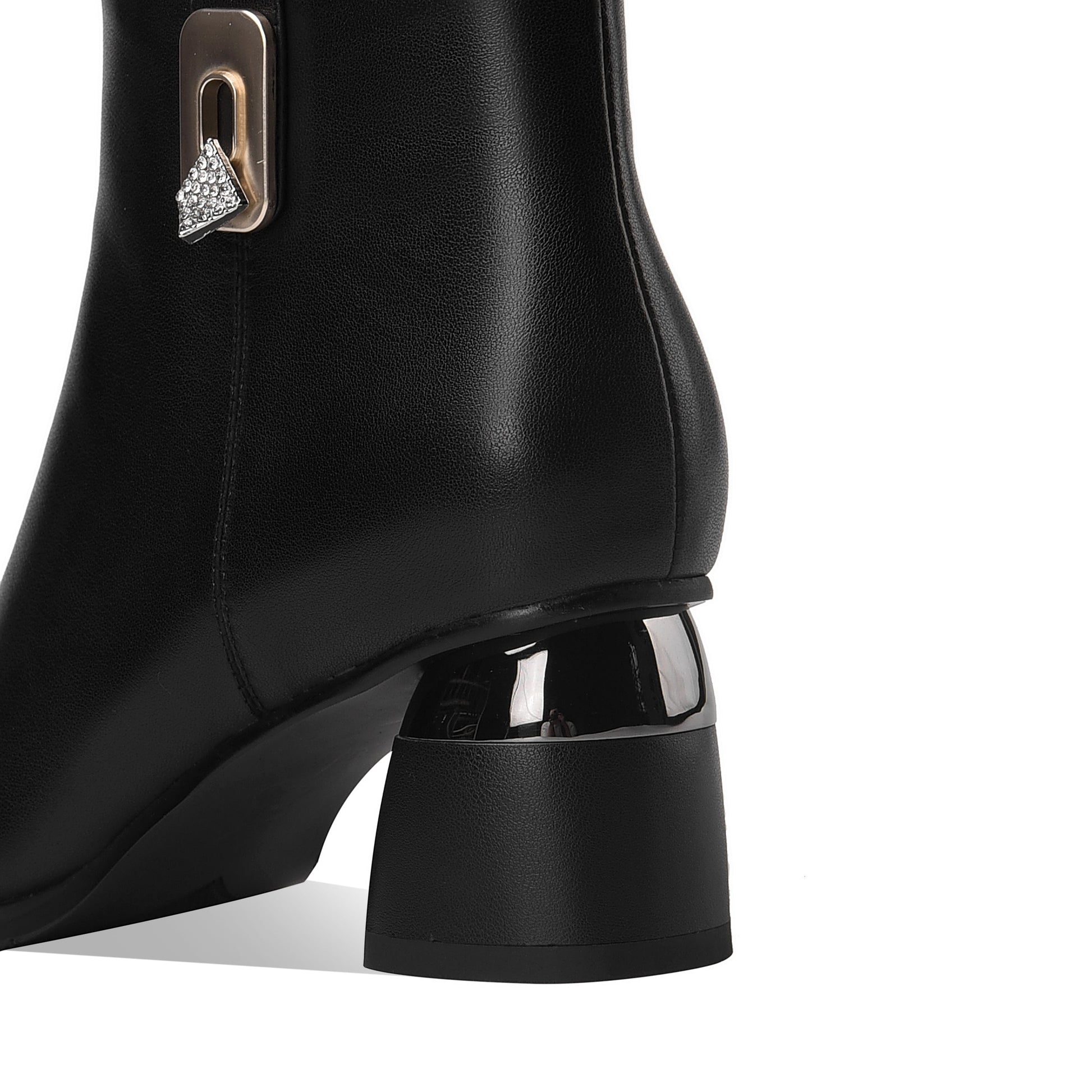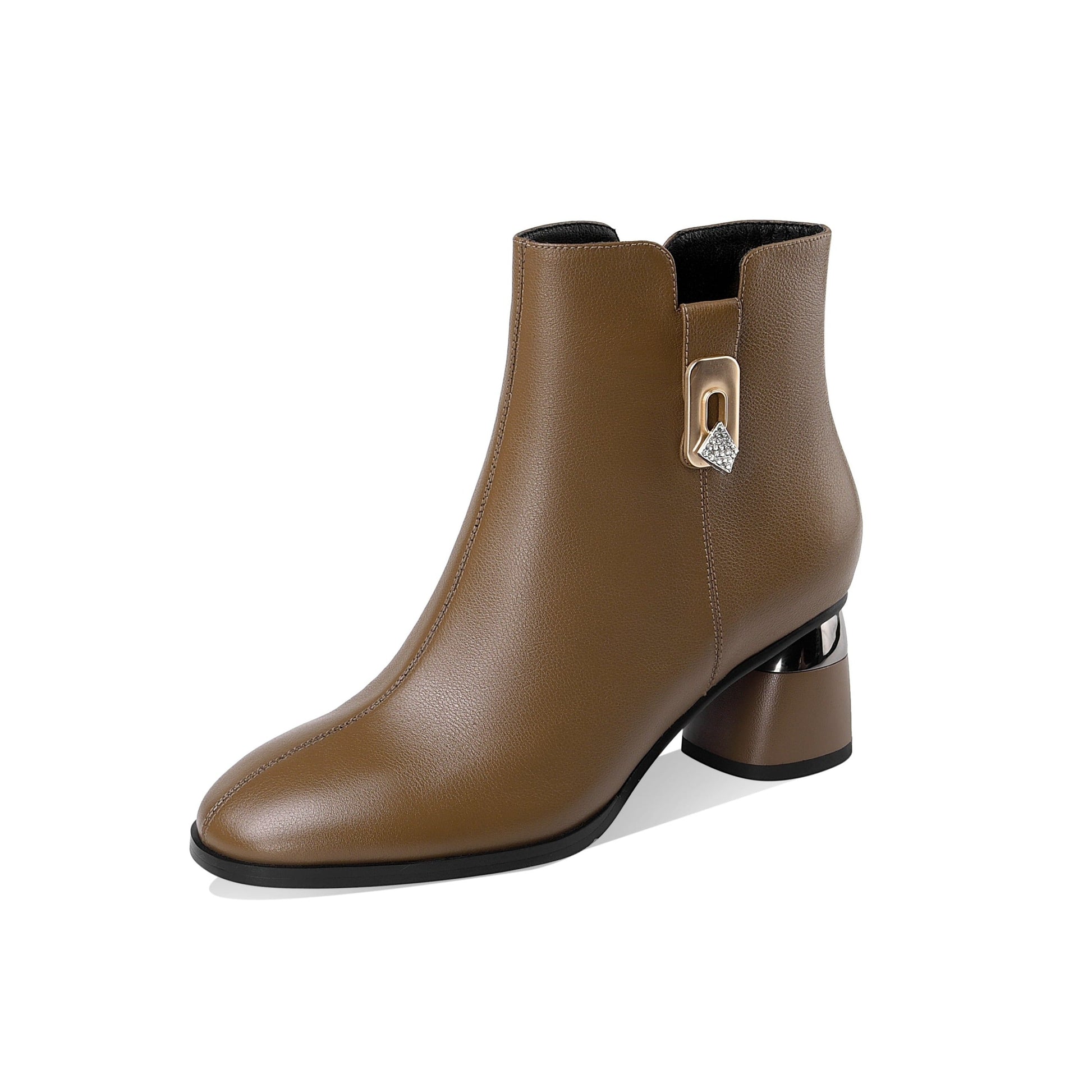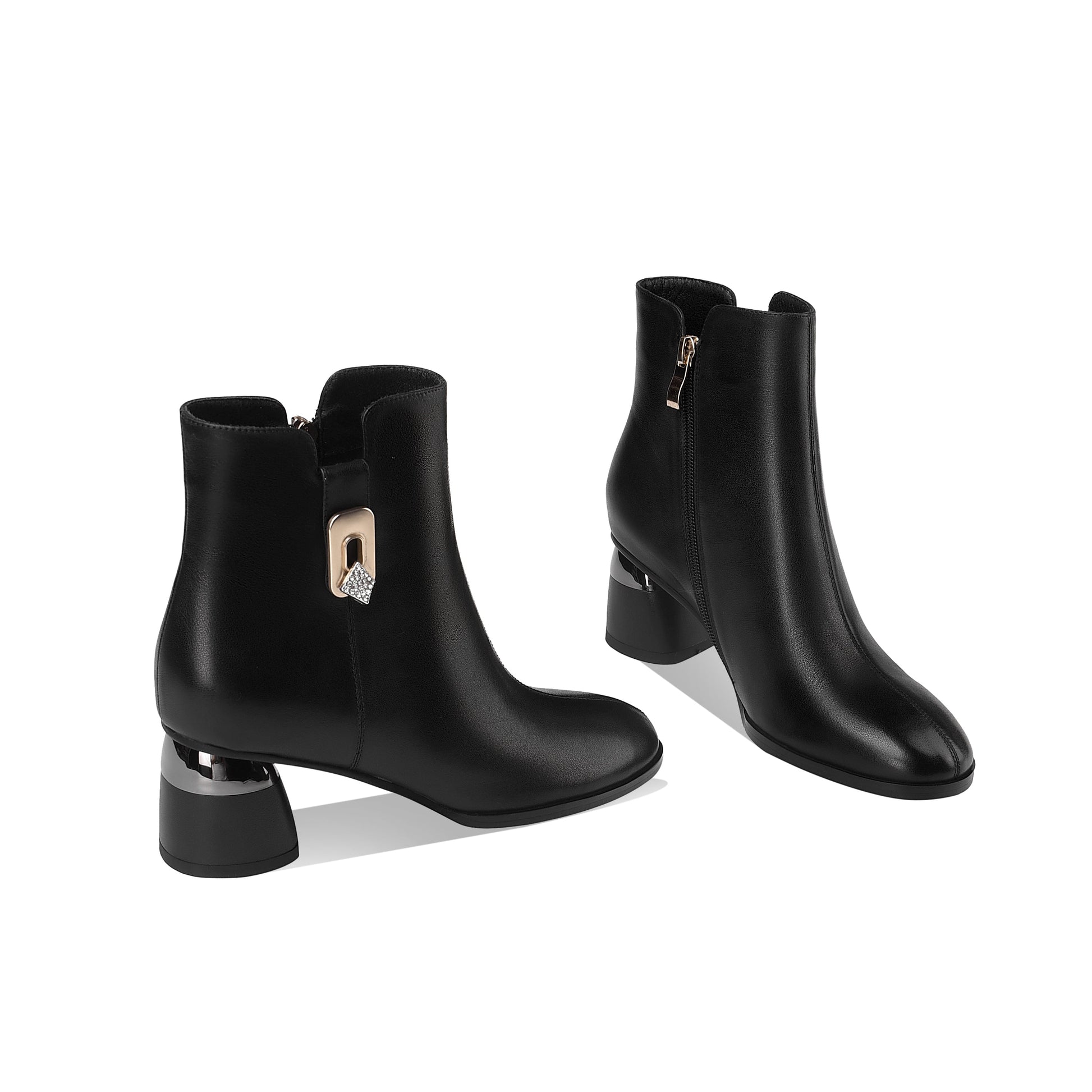 Modern boots are designed with genuine leather, block heel, gold pattern and side zip to keep up with fashion trend. These fashion boots can go with different outfits.