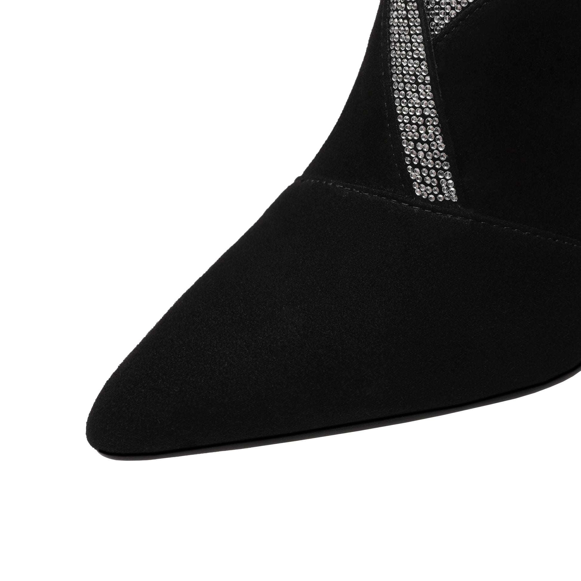 Sexy black pumps shoes designed with suede leather, pointed toe and stiletto heels can go with almost all your outfits.