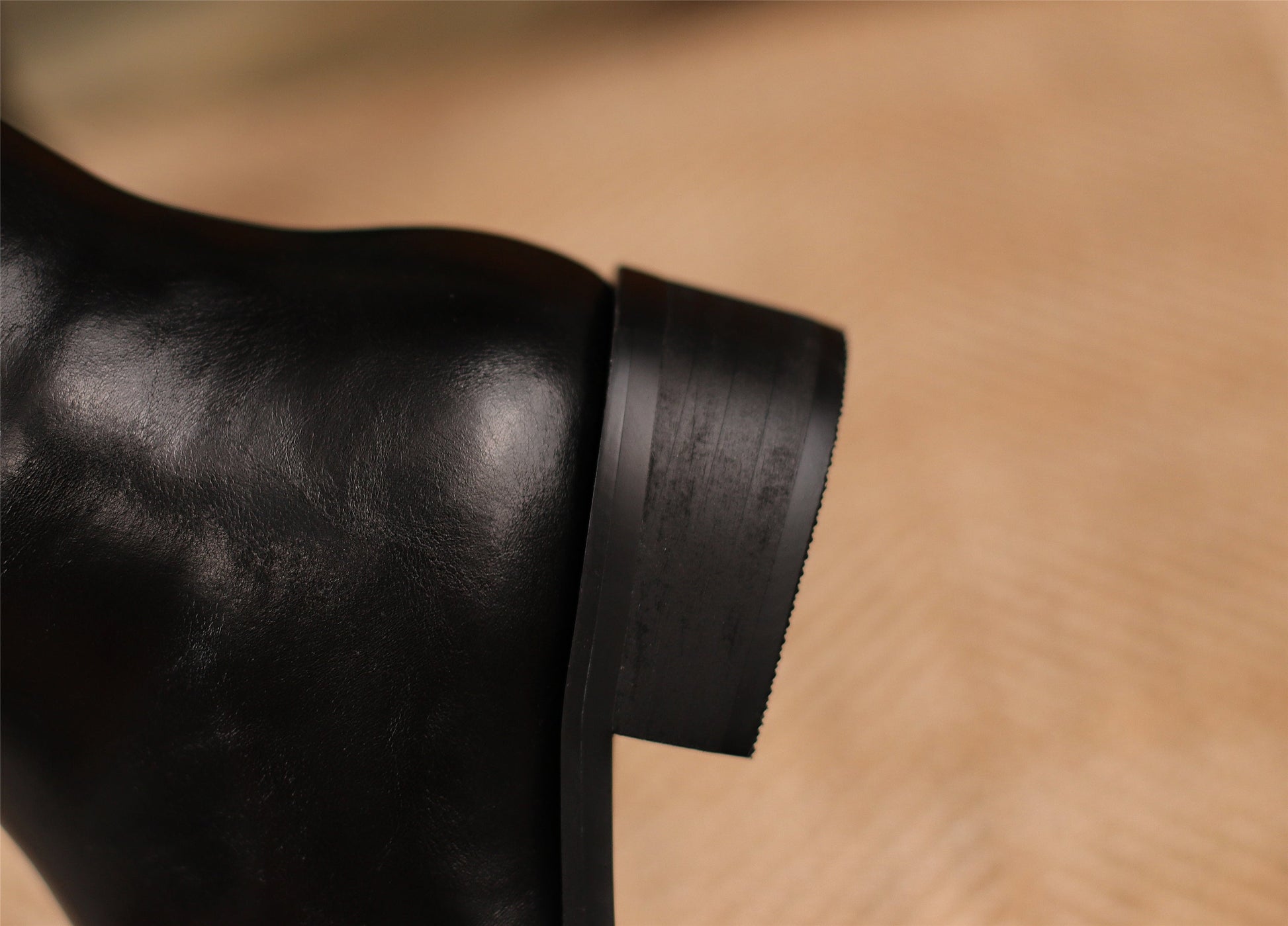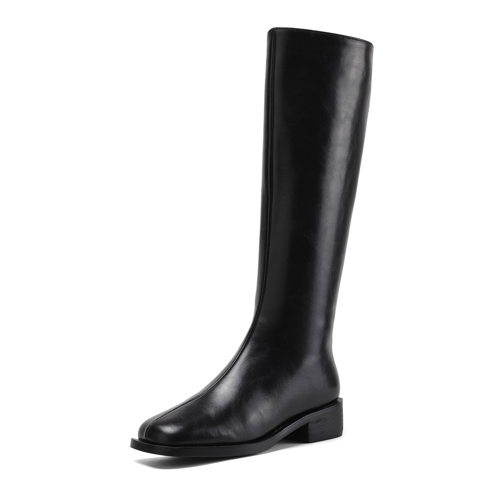 These knee boots are designed with genuine leather, square toe, low heel, side zip to keep up with fashion trend.