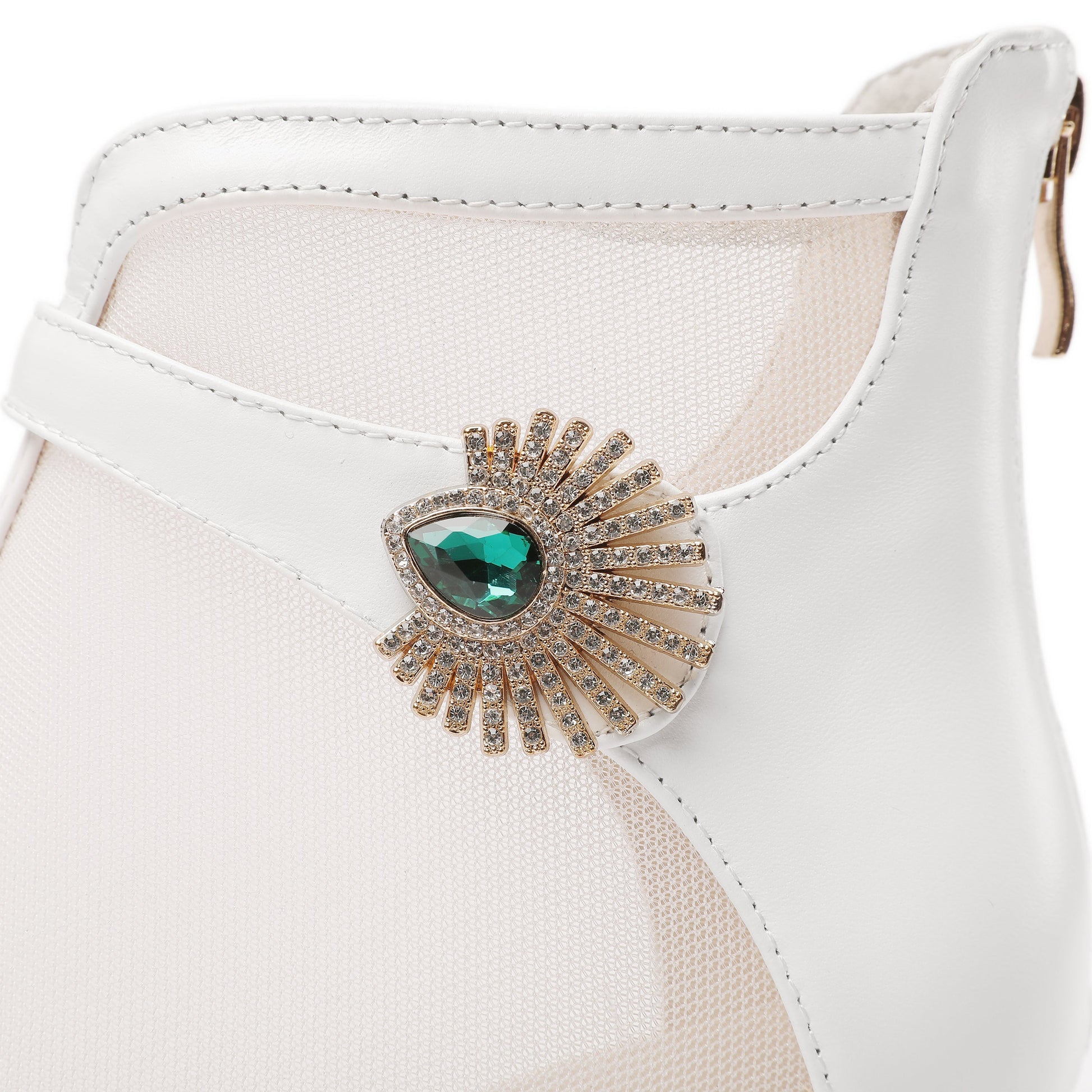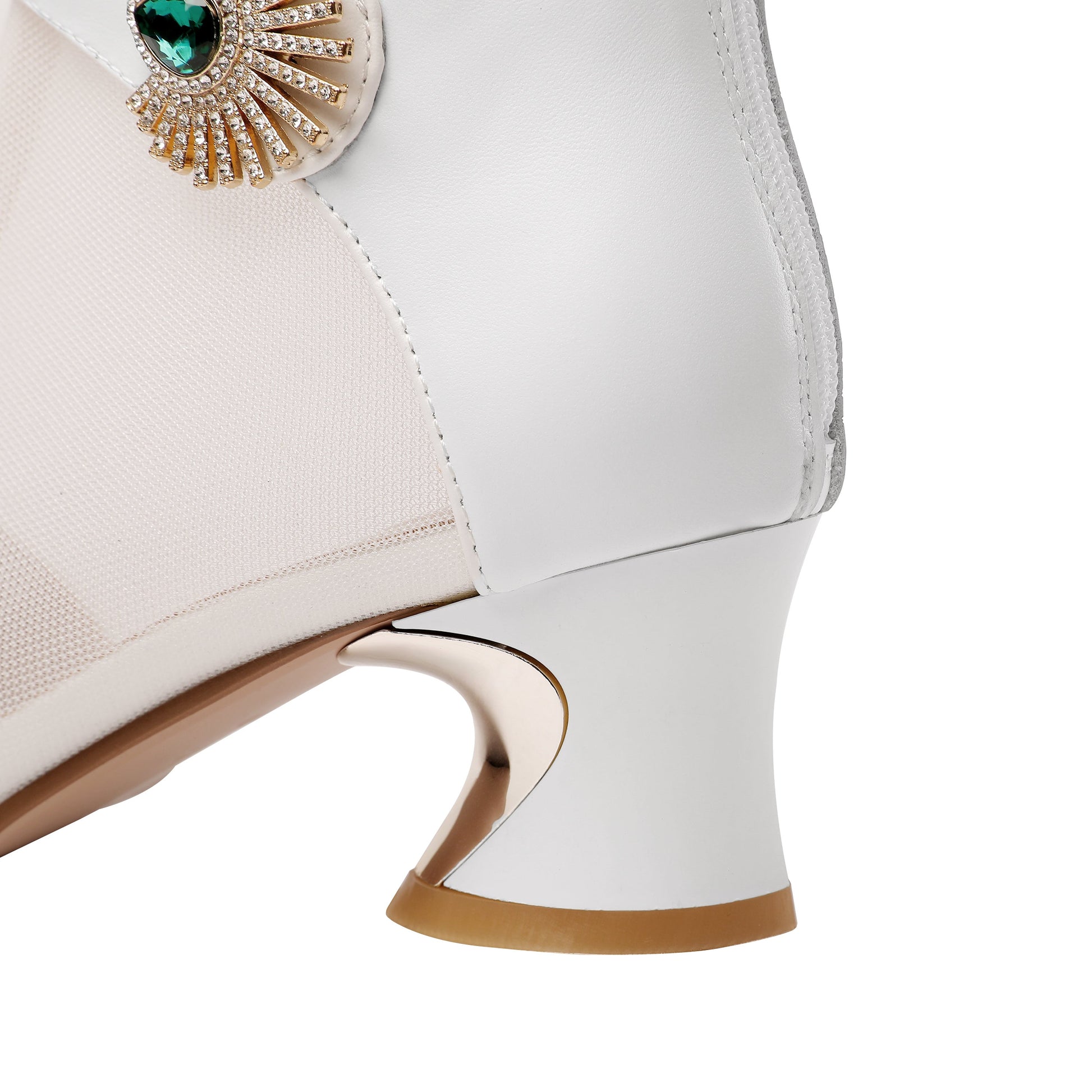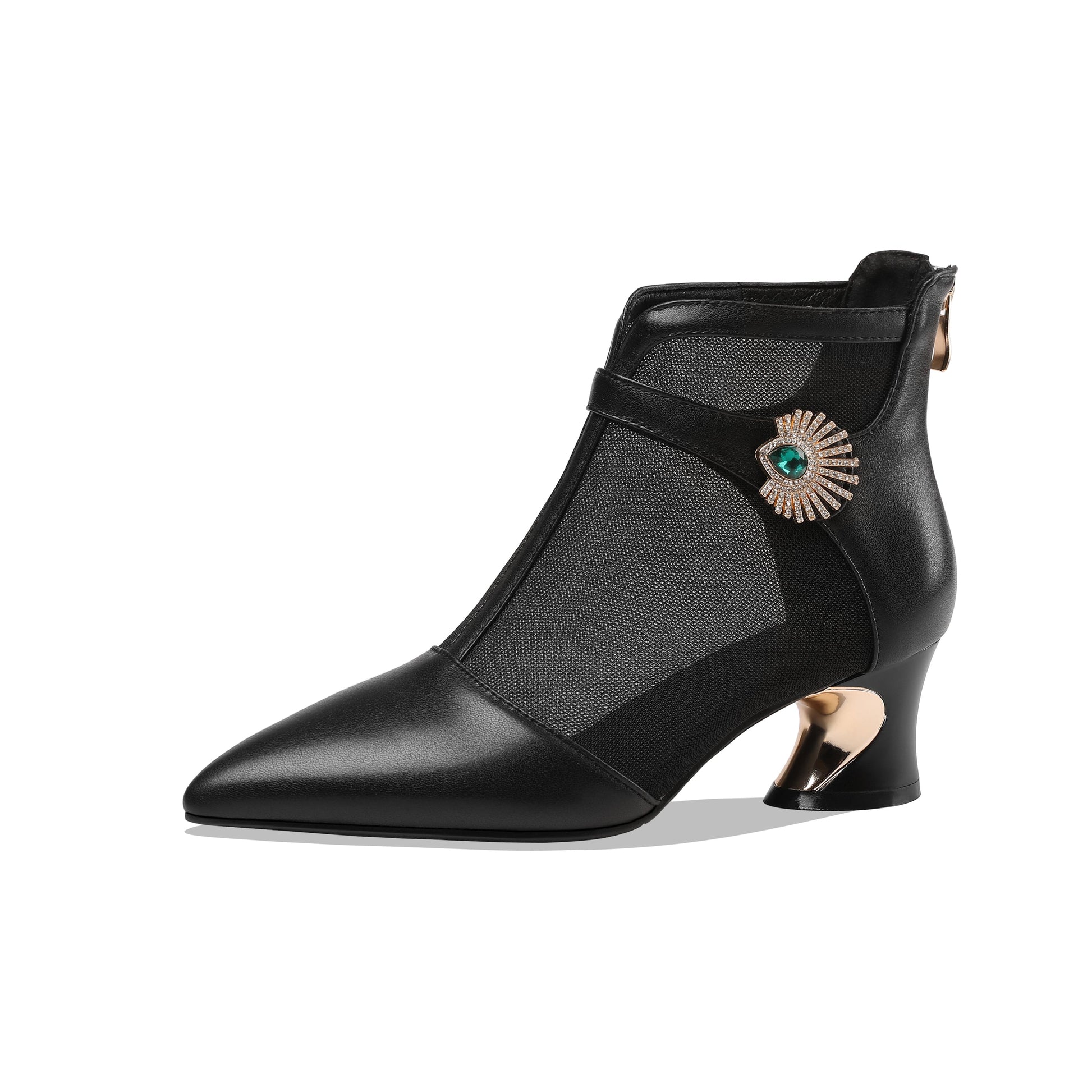 Nine Seven Women's Genuine Leather and Mesh Handmade Spool Heel Zip Up Crystal Decor Stylish Ankle Boots