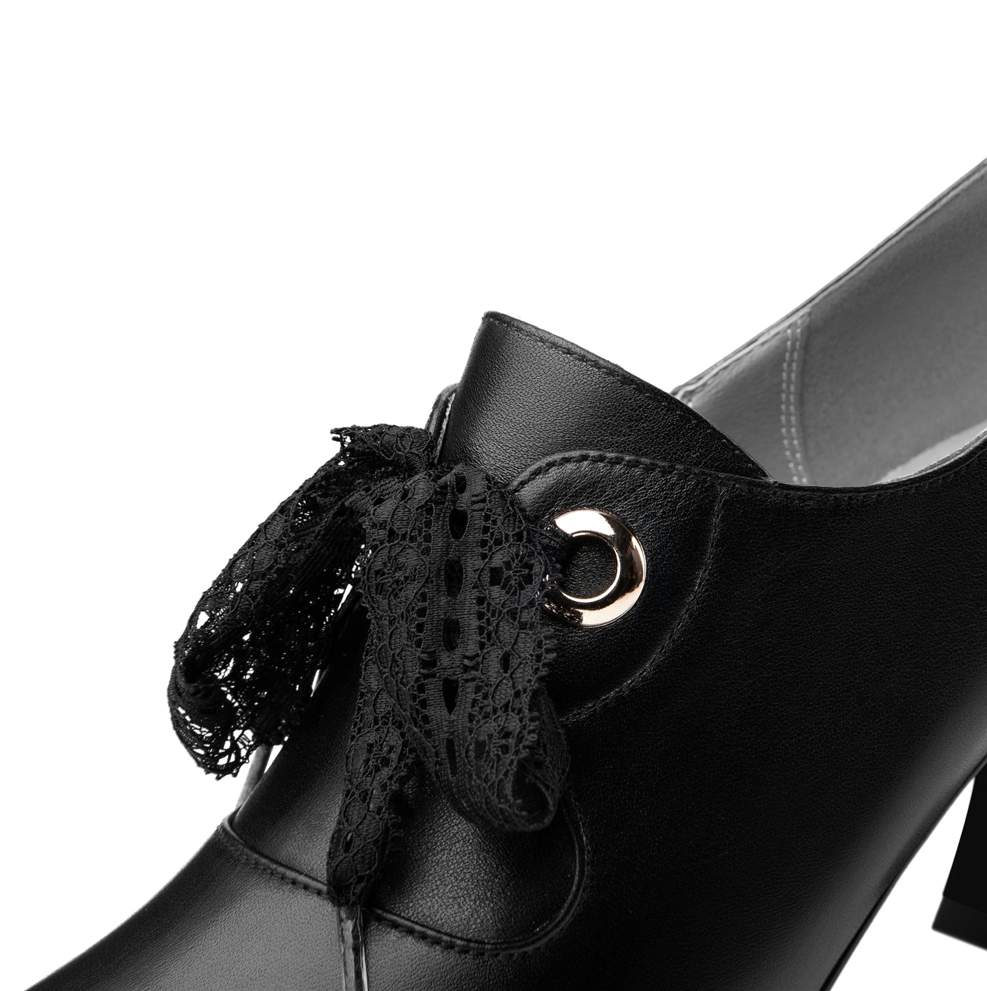 Nine Seven Genuine Leather Women's Handmade Pointed Toe Elegant Bowtie Spool Heel Pumps with Side Zipper