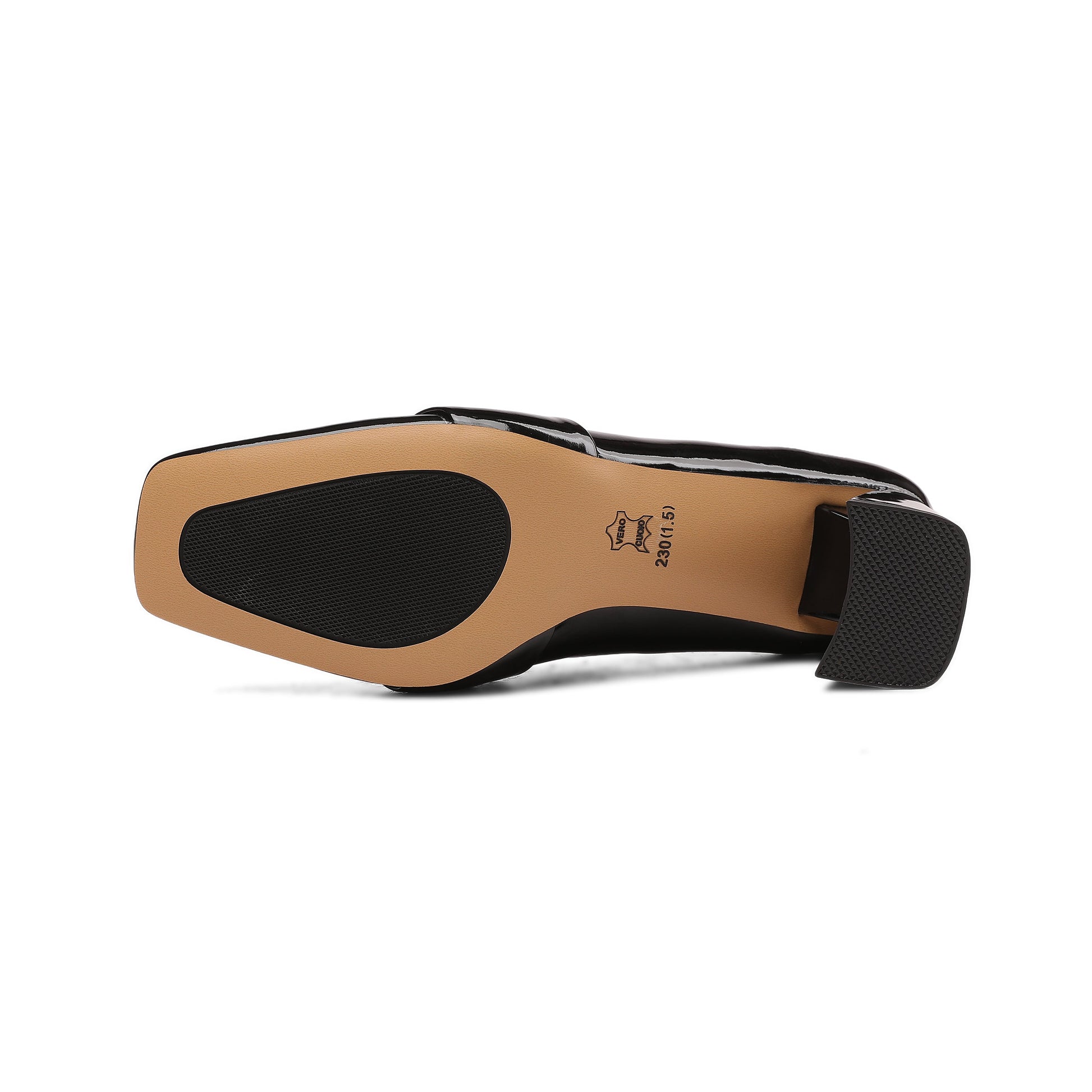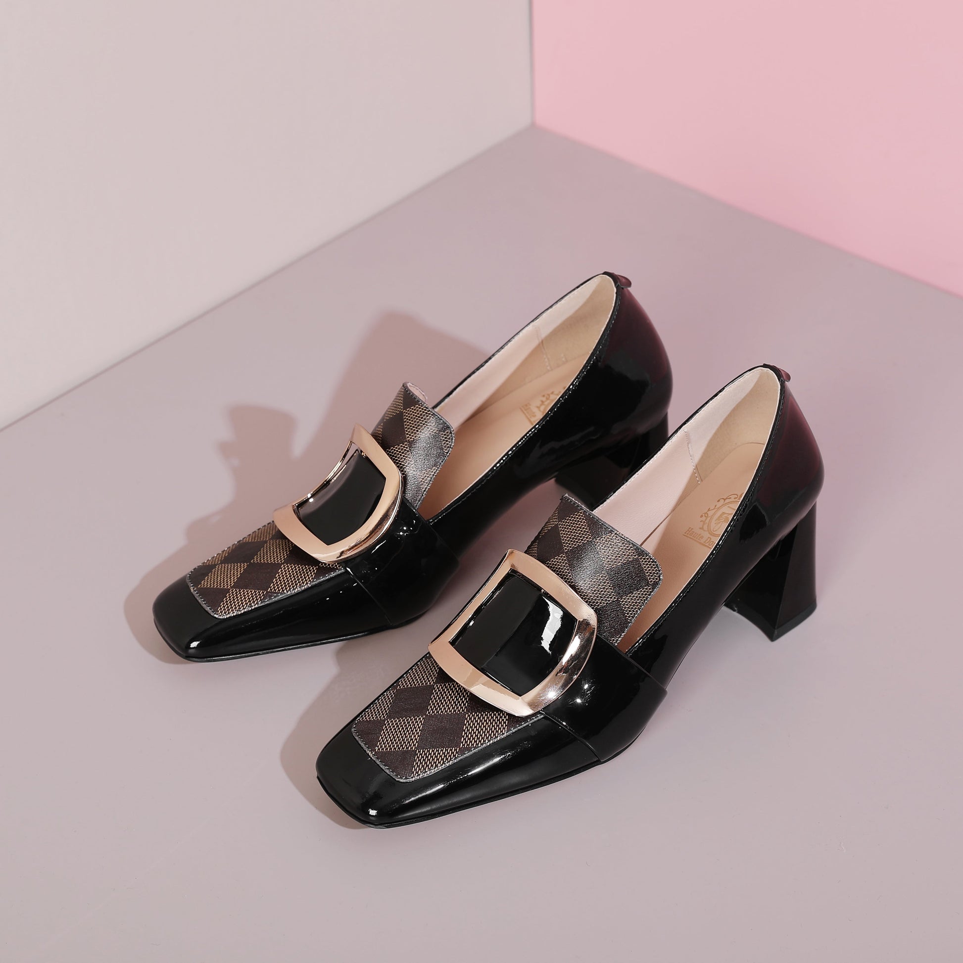 Nine Seven Patent Leather Women's Handmade Metal Square Pattern Design Classic Chunky Heel Loafer Pumps