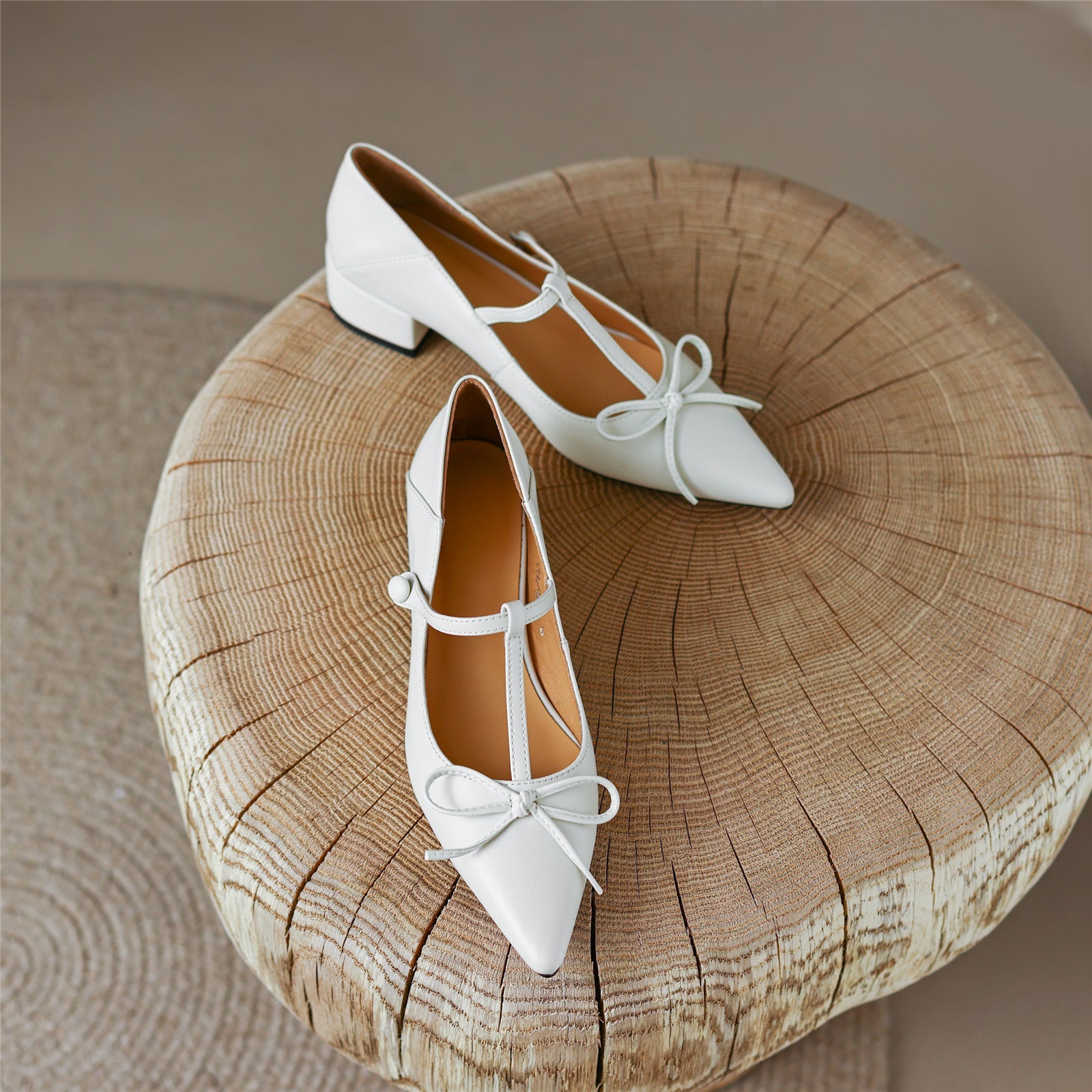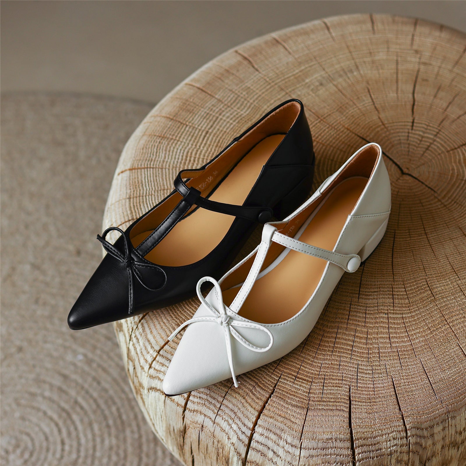 Nine Seven Women's Genuine Leather Pointed Toe Handmade Bowtie Cute Mary Jane Shoes with Low Chunky Heels
