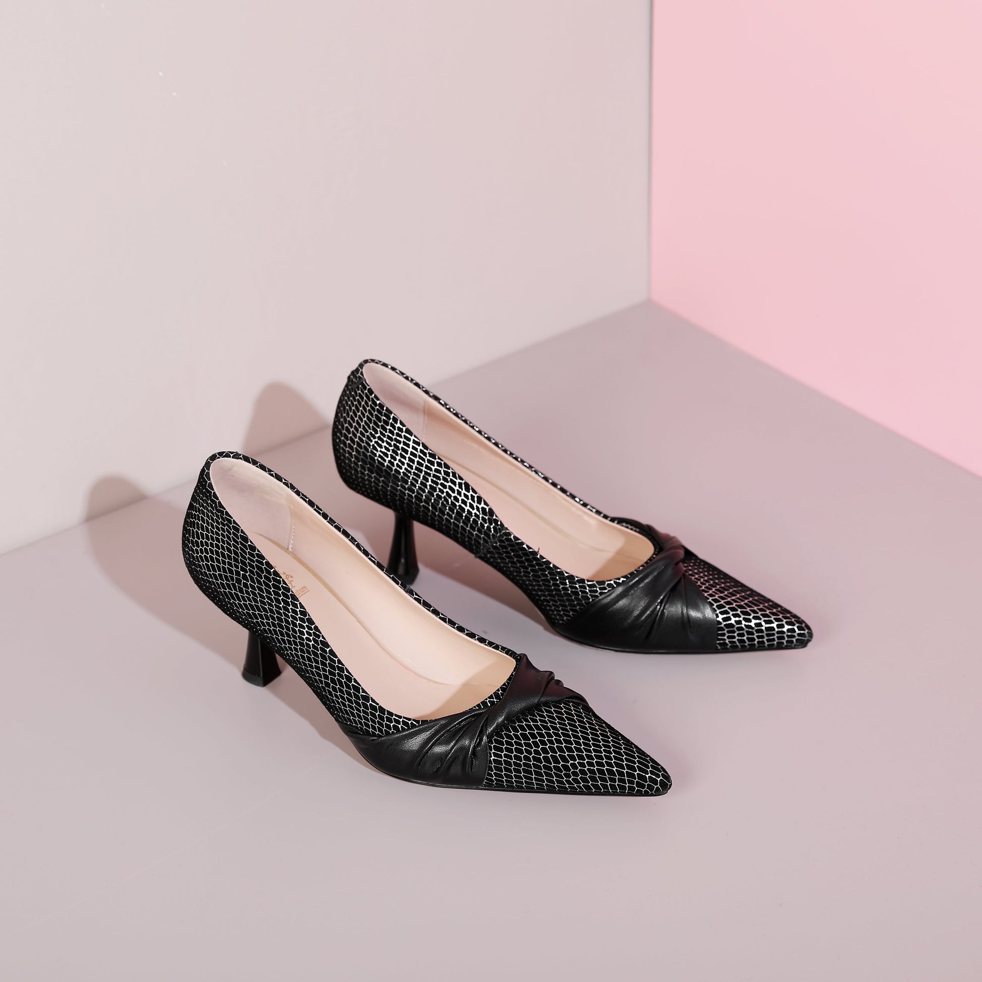 The loafer pumps are designed with leather, pointed toe and mid heels.Slip-resistant sole could make you feel confident.