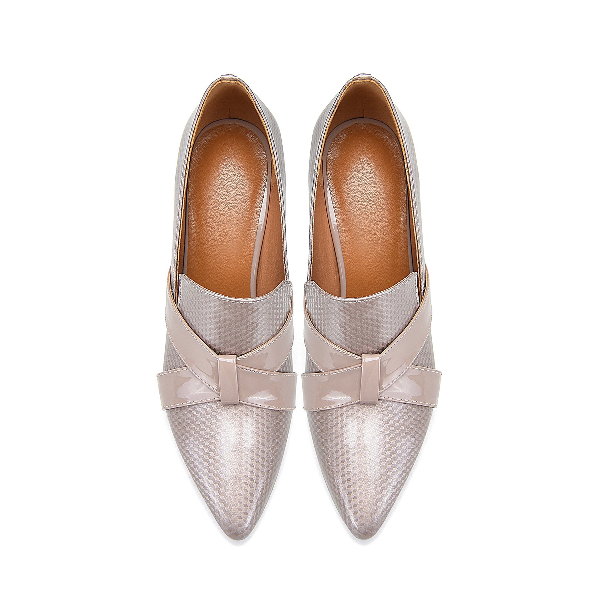 Graceful pumps shoes deisgned with patent leather and chunky heels can go with almost all your outfits.