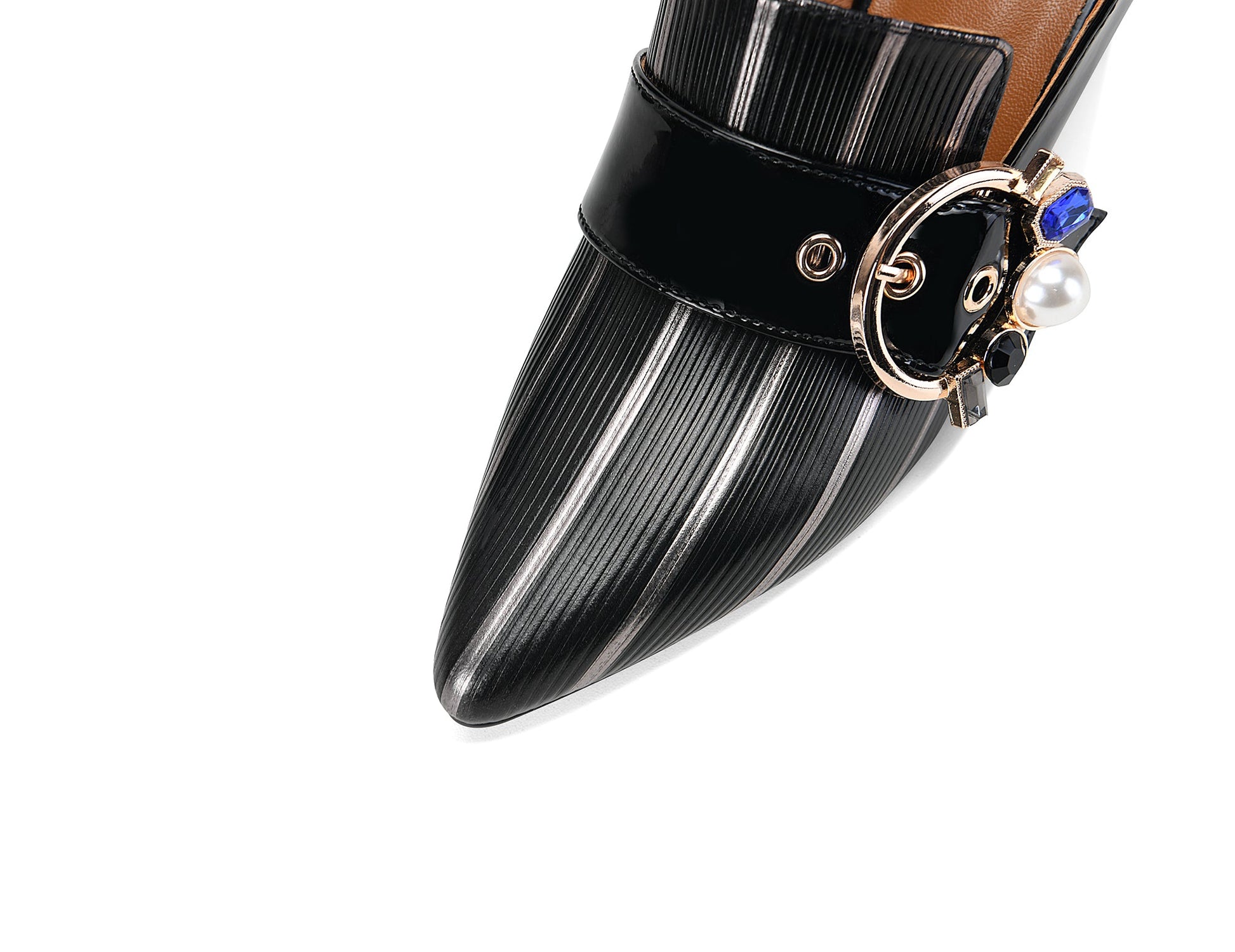 Nine Seven Women's Pointed Toe Glossy Genuine/Patent Leather Handmade Buckle Stylish Pumps Shoes with Mid Heels