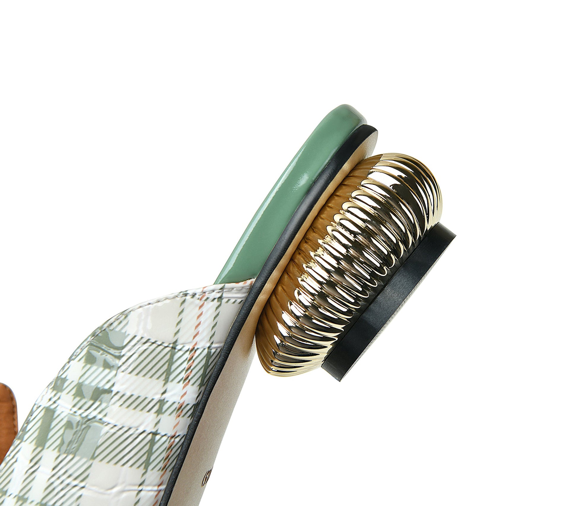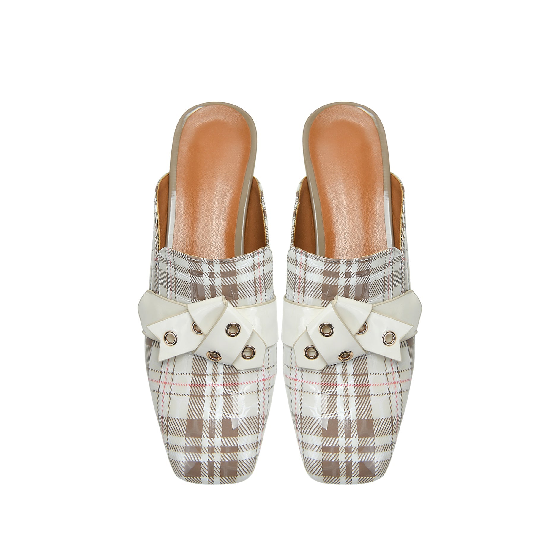 Stylish sandal slippers designed with plaid genuine leather, square toe and low heel can make you feel comfortable with every steps.