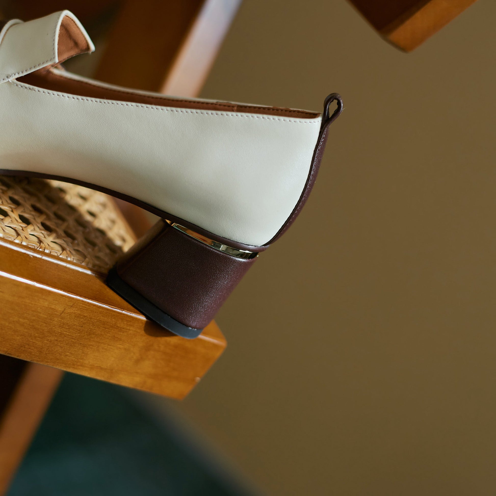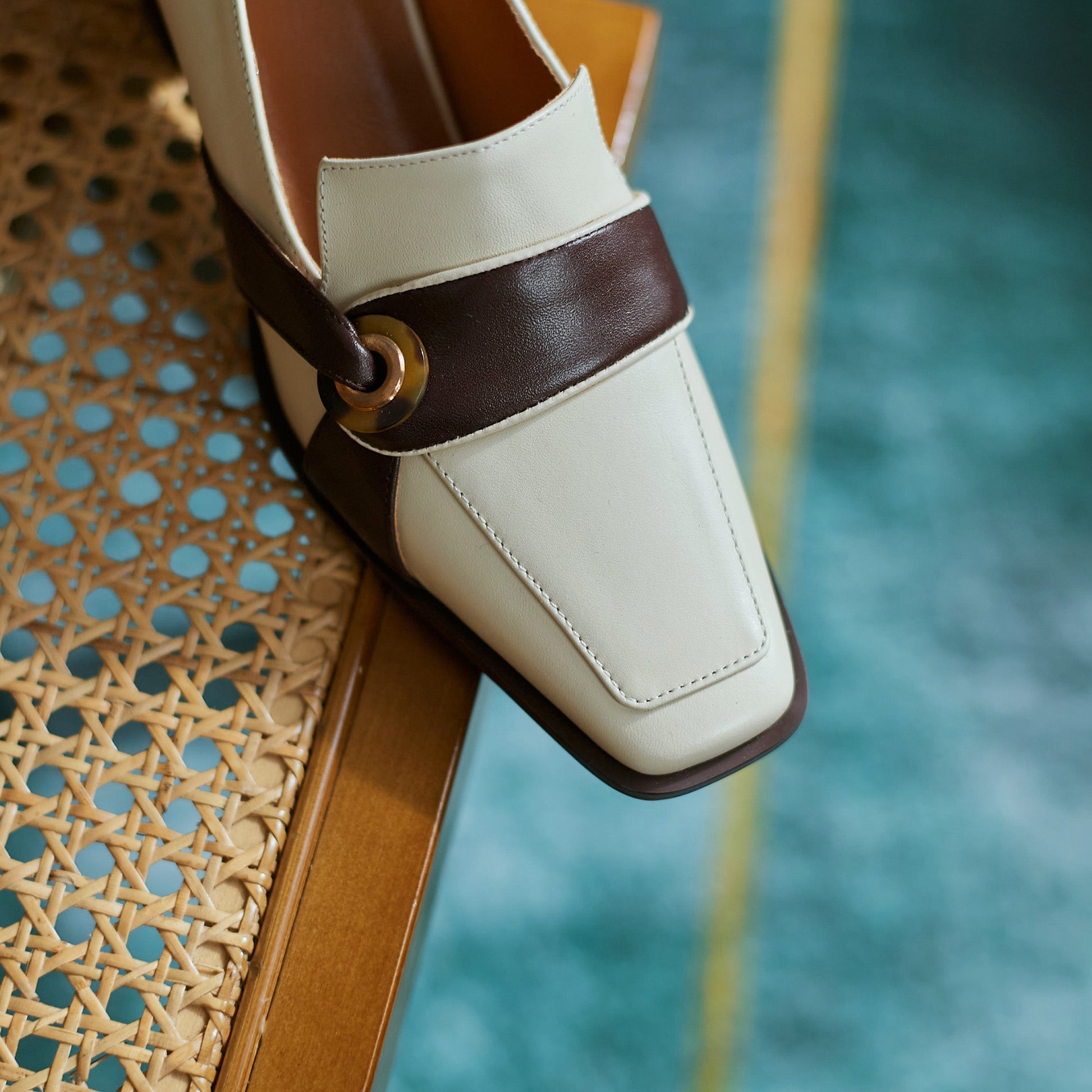 Nine Seven Women's Square Toe Genuine Leather Handmade Chunky Heel Stylish Loafers Shoes